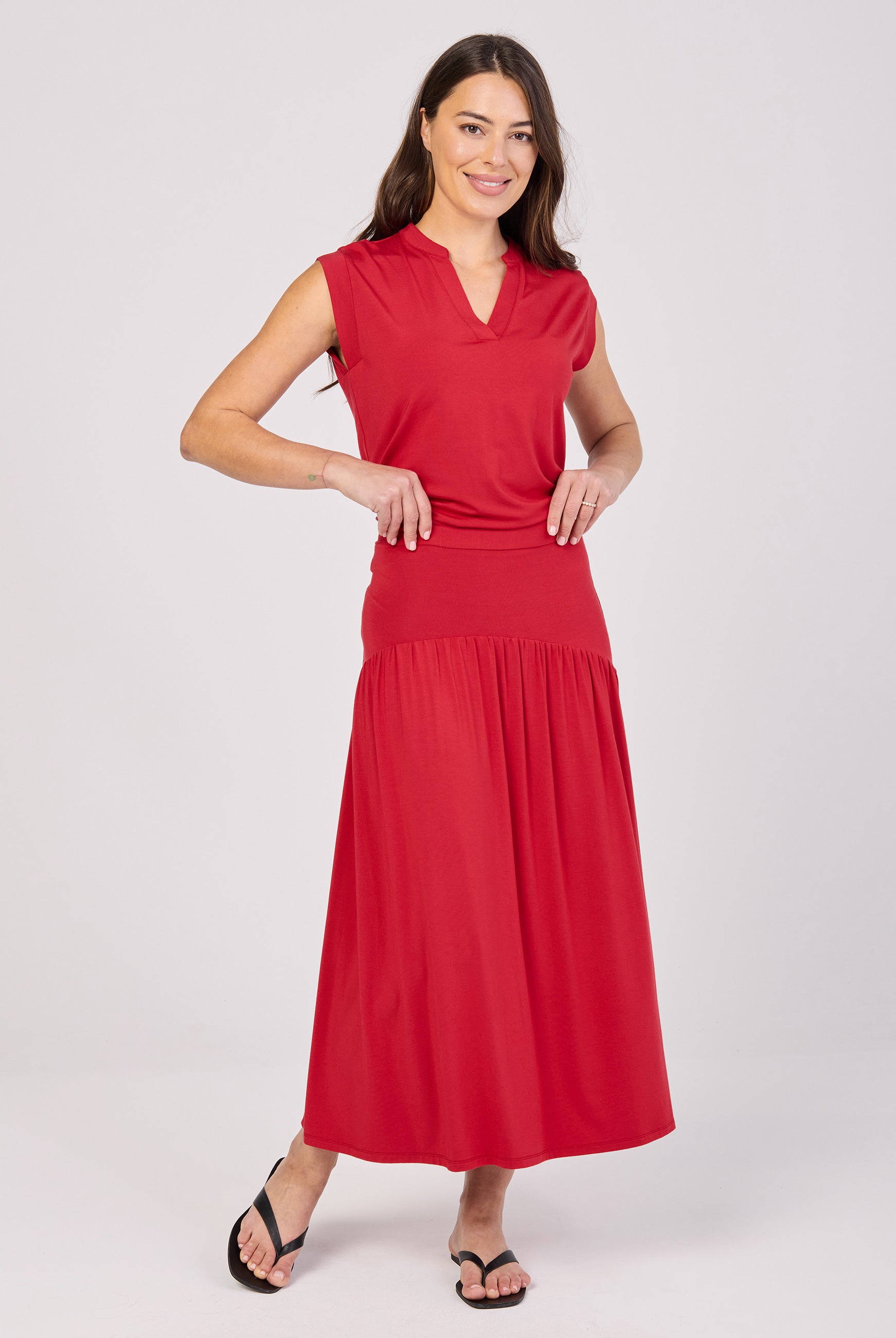 "Essential dress in Cherry - comfortable, dress up or down..perfect for travel."