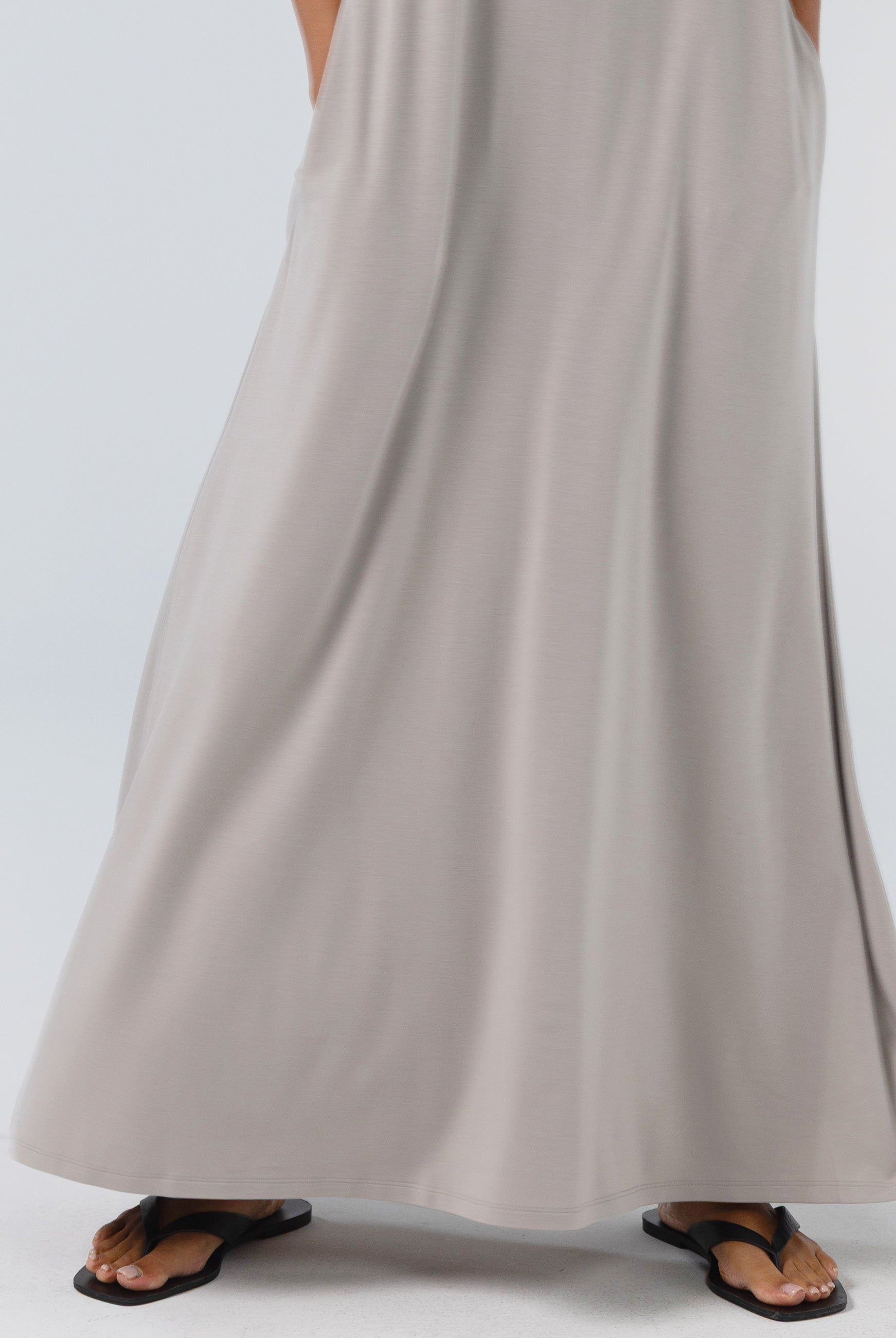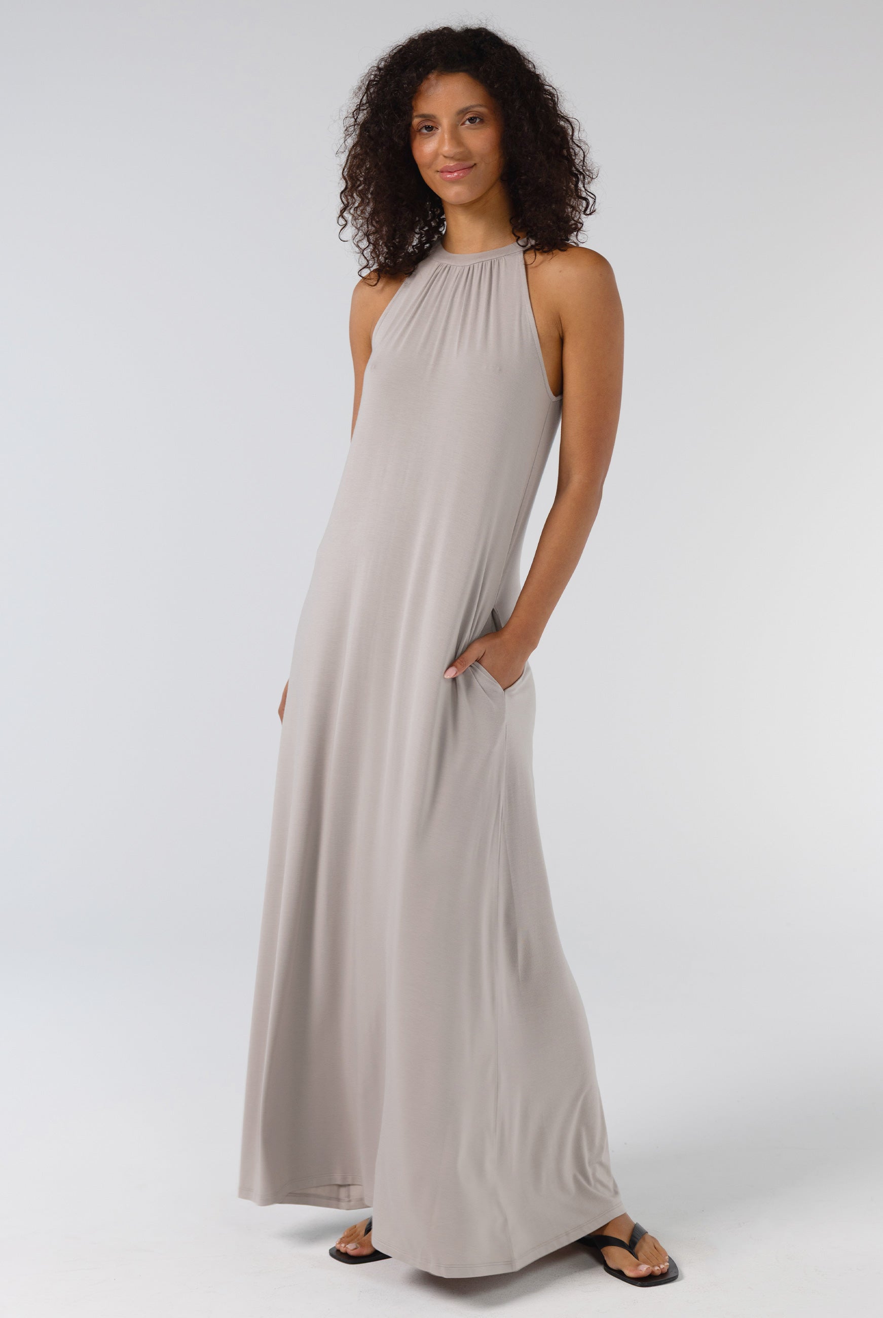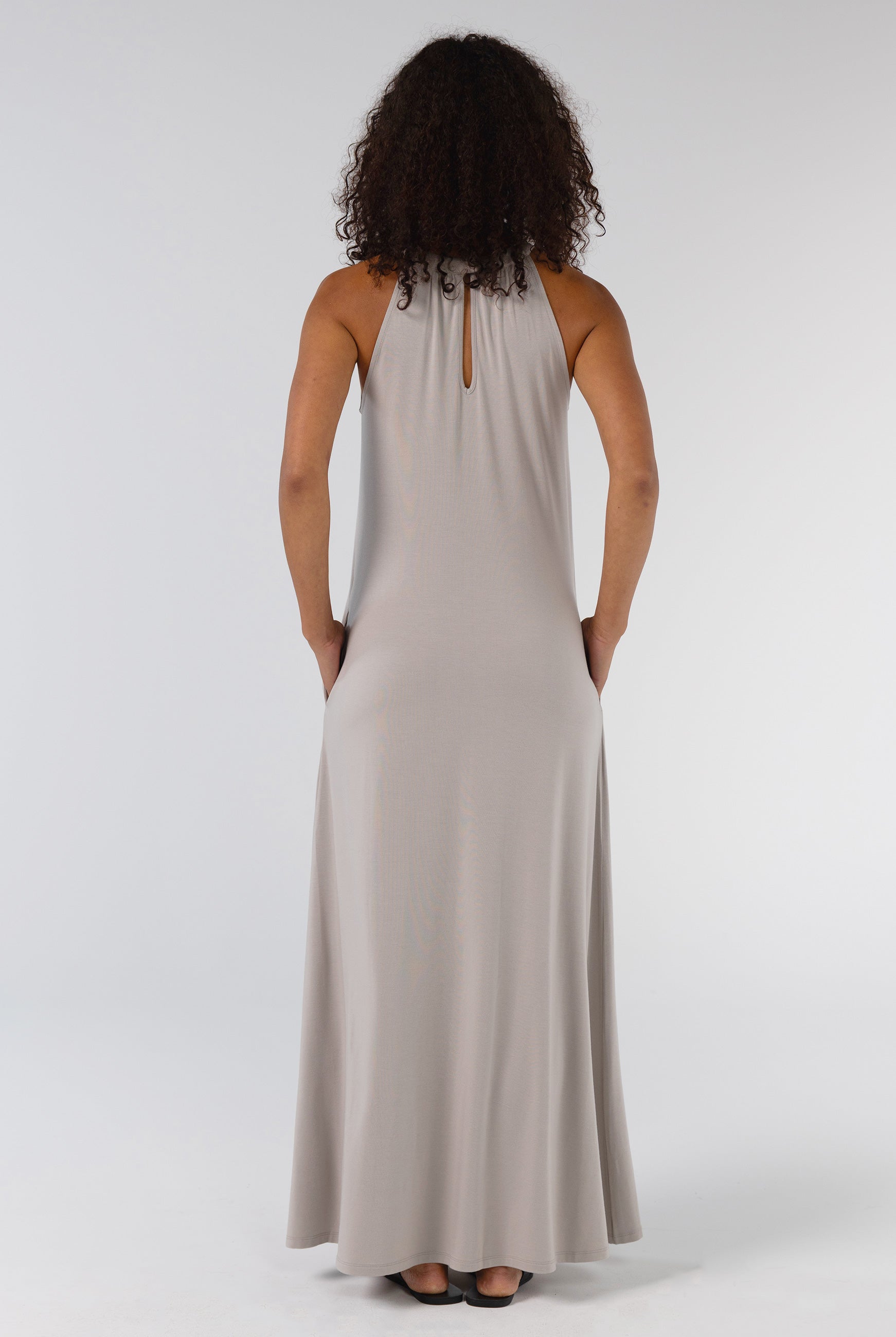 The Isabelle Midi Dress combines timeless design with sustainable craftsmanship. Made from luxuriously soft and eco-friendly Lenzing Modal®, this sleeveless dress feels lightweight and soft on the skin, offering all-day comfort. A high neckline, accented with a refined mother-of-pearl button, brings understated sophistication, while the relaxed A-line silhouette creates a flattering, flowing shape that suits every body type. Functional side pockets add a practical touch, making it as versatile as it is stylish. Perfect for any occasion, the Isabelle transitions effortlessly from casual days to evening elegance. Pair it with sandals for a laid-back vibe or elevate it with your favorite accessories. Designed to be timeless, this sustainably crafted dress is a wardrobe essential for those who value comfort, style, and the planet.