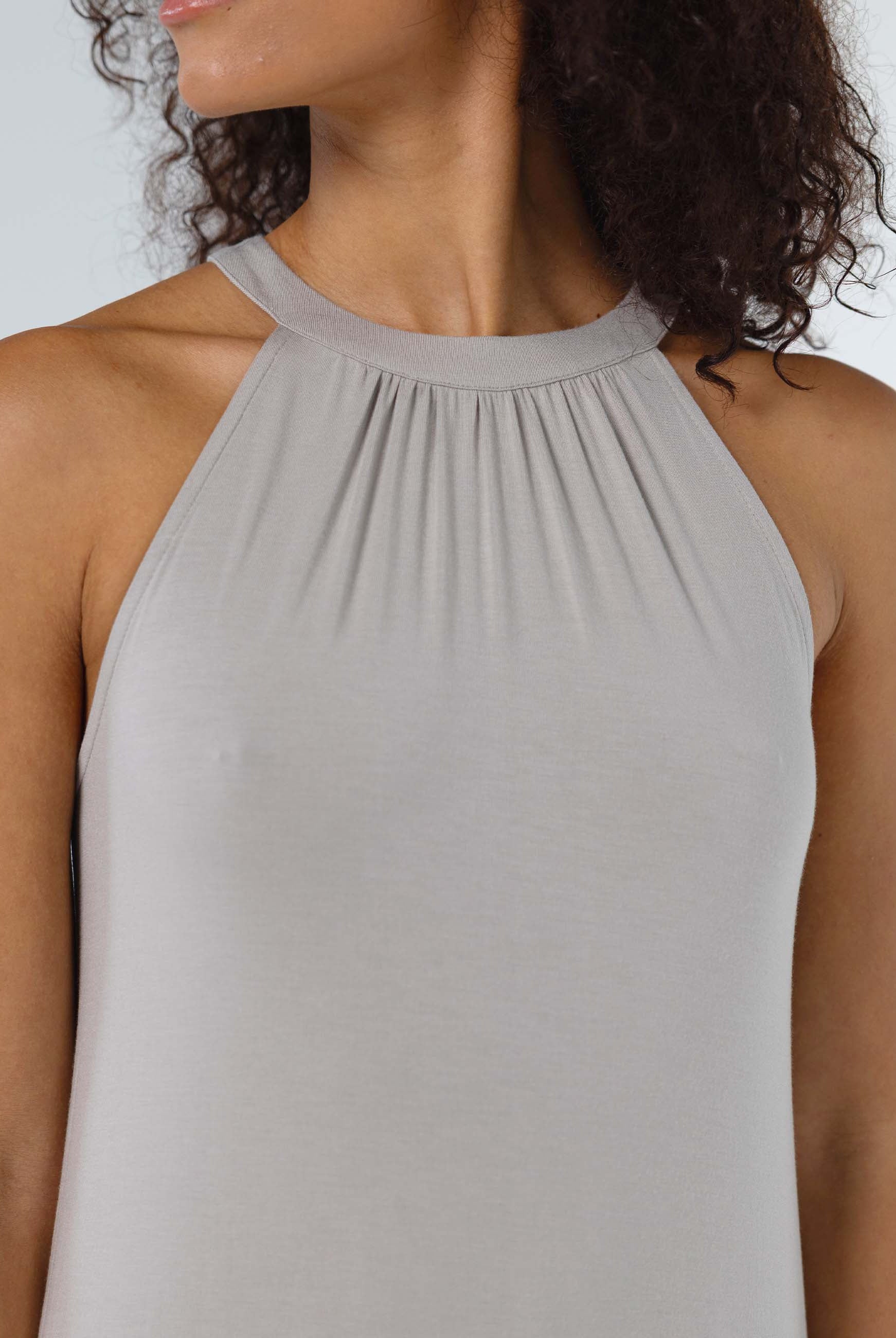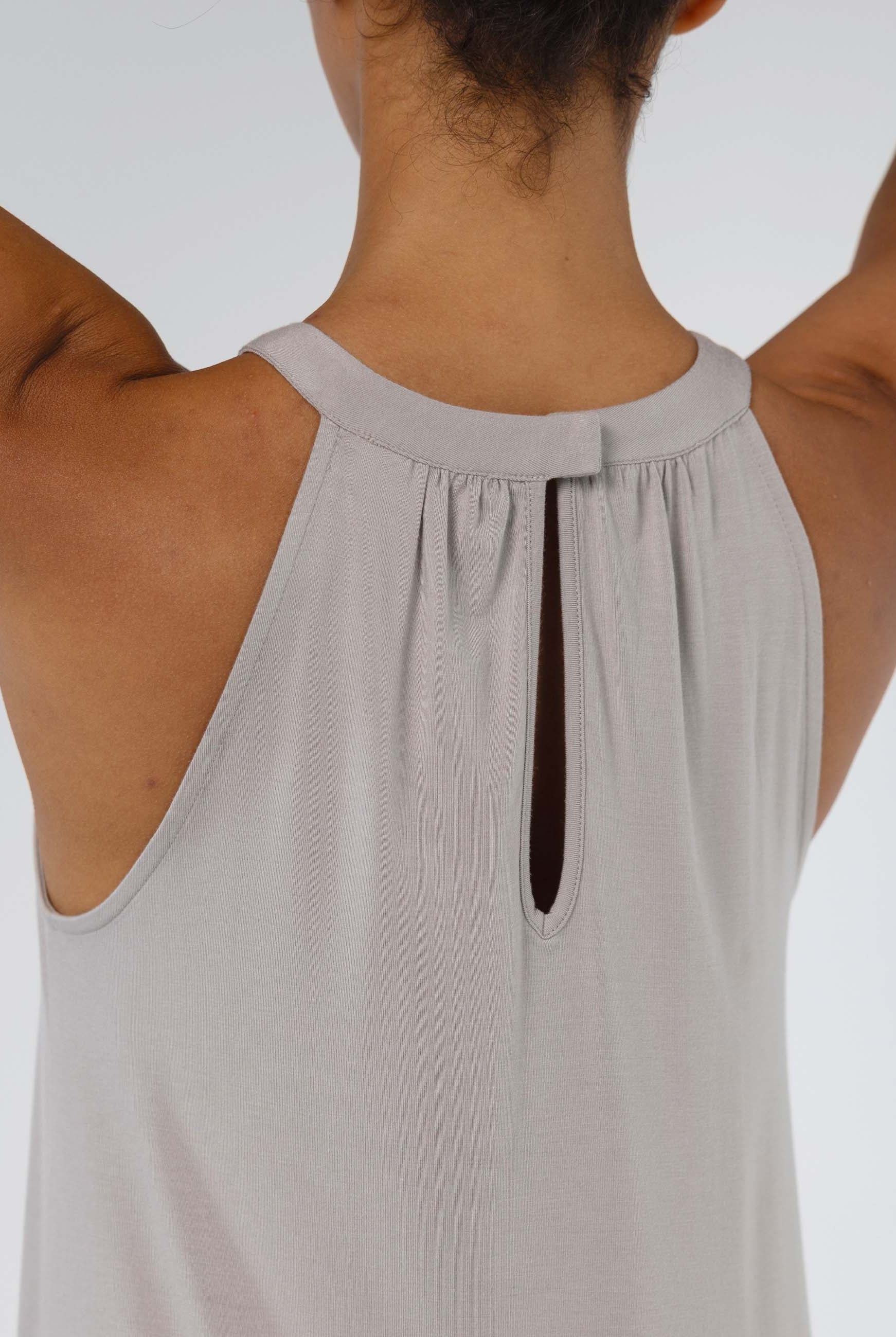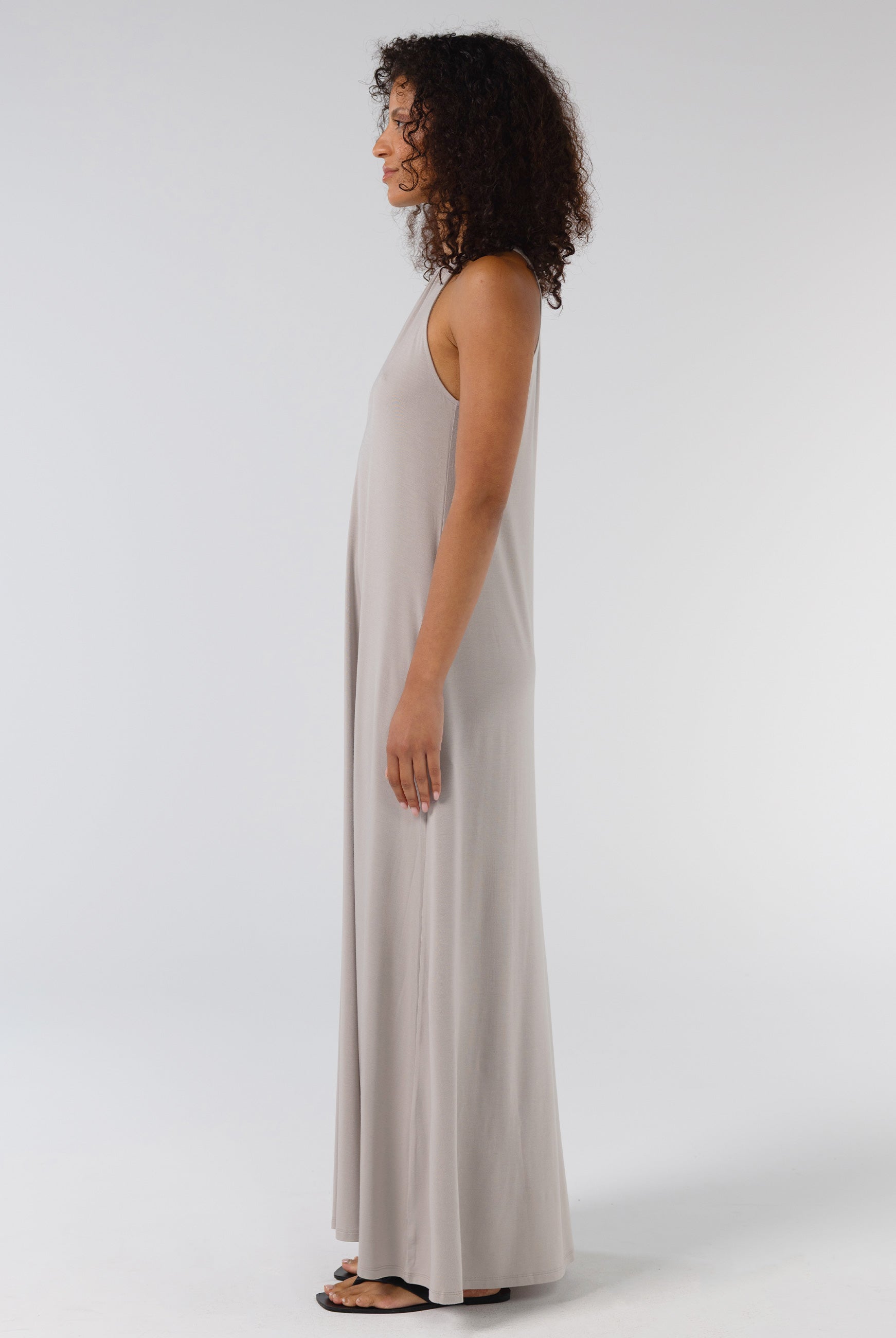 The Isabelle Midi Dress combines timeless design with sustainable craftsmanship. Made from luxuriously soft and eco-friendly Lenzing Modal®, this sleeveless dress feels lightweight and soft on the skin, offering all-day comfort. A high neckline, accented with a refined mother-of-pearl button, brings understated sophistication, while the relaxed A-line silhouette creates a flattering, flowing shape that suits every body type. Functional side pockets add a practical touch, making it as versatile as it is stylish. Perfect for any occasion, the Isabelle transitions effortlessly from casual days to evening elegance. Pair it with sandals for a laid-back vibe or elevate it with your favorite accessories. Designed to be timeless, this sustainably crafted dress is a wardrobe essential for those who value comfort, style, and the planet.