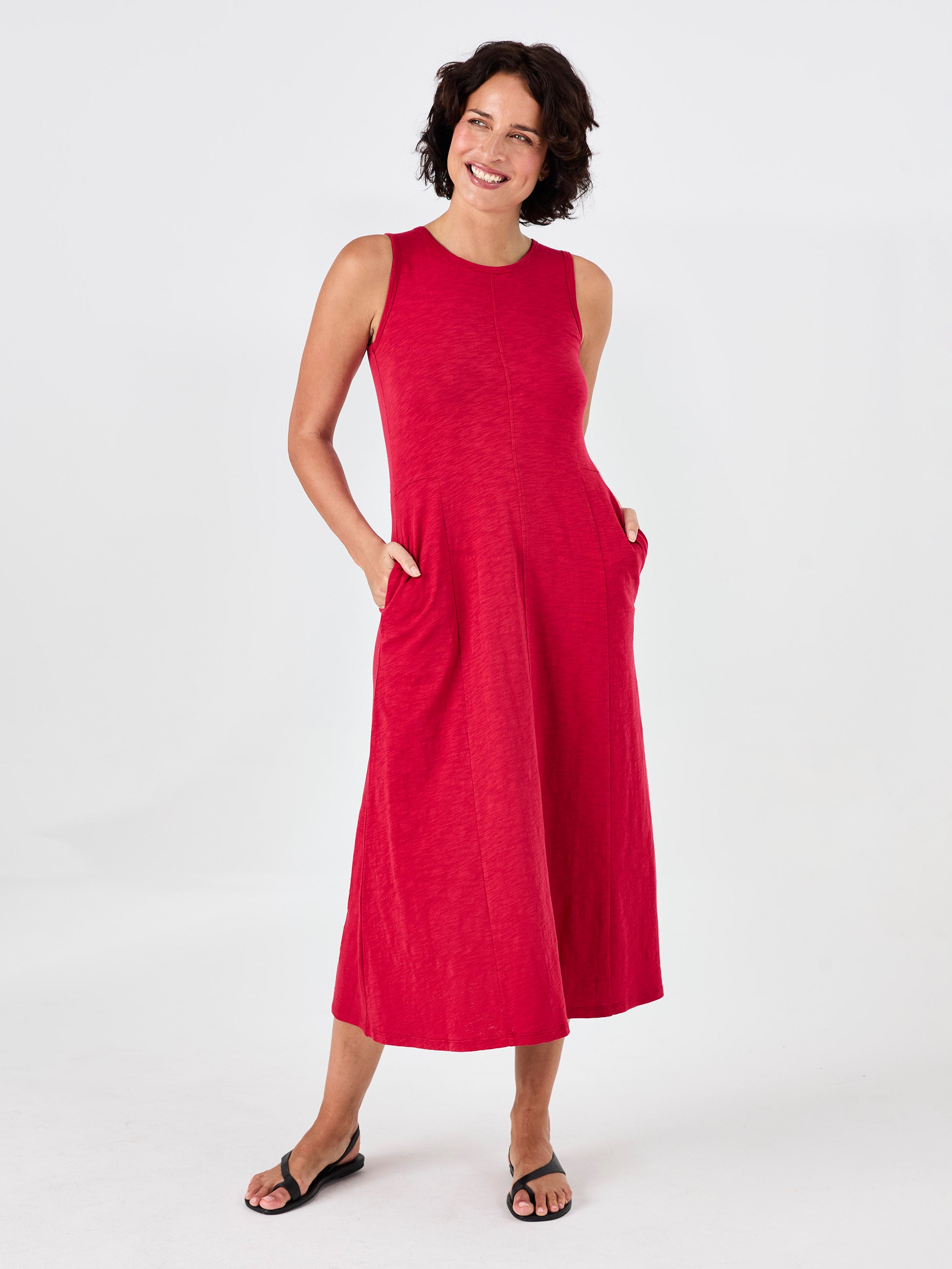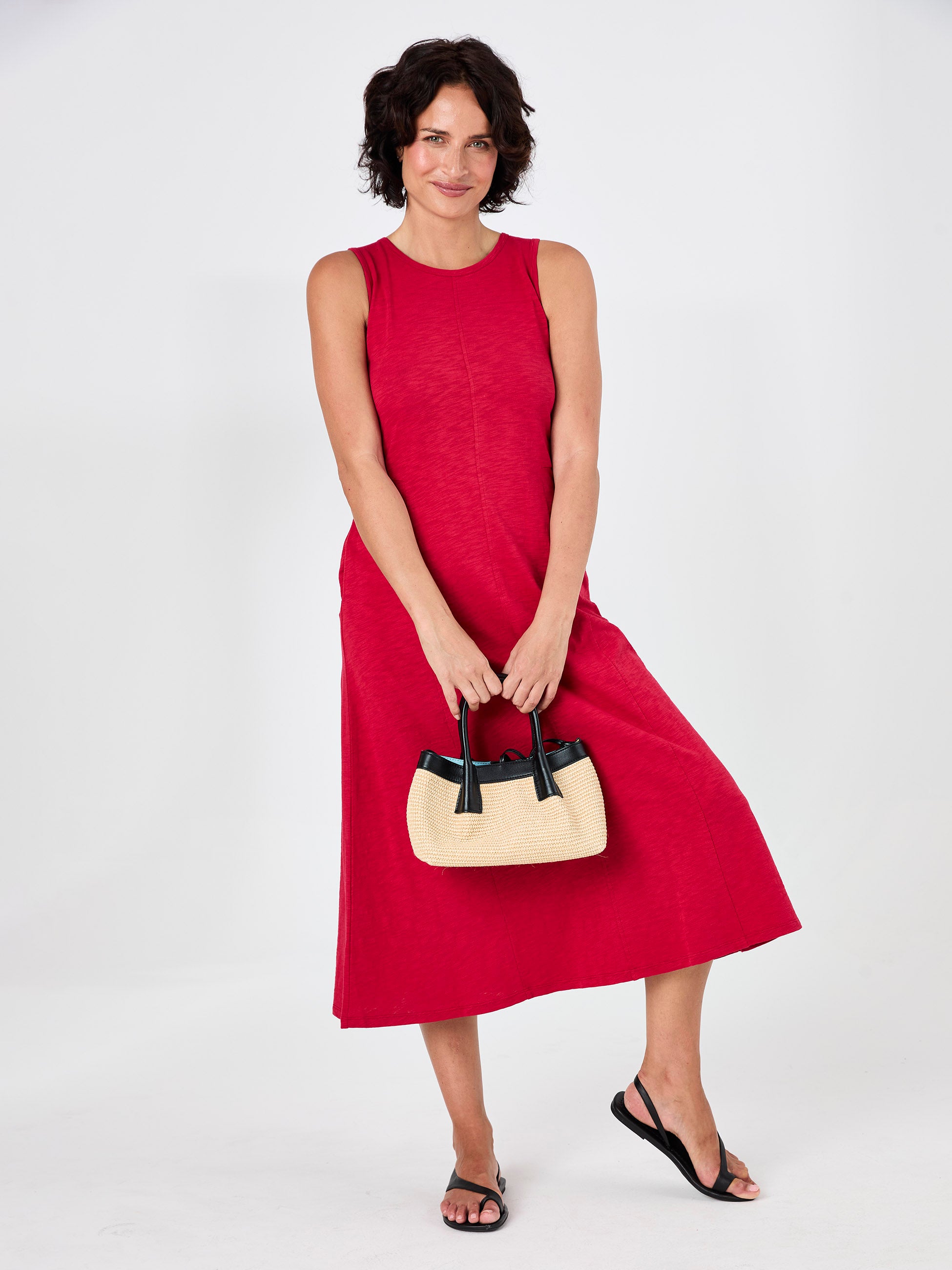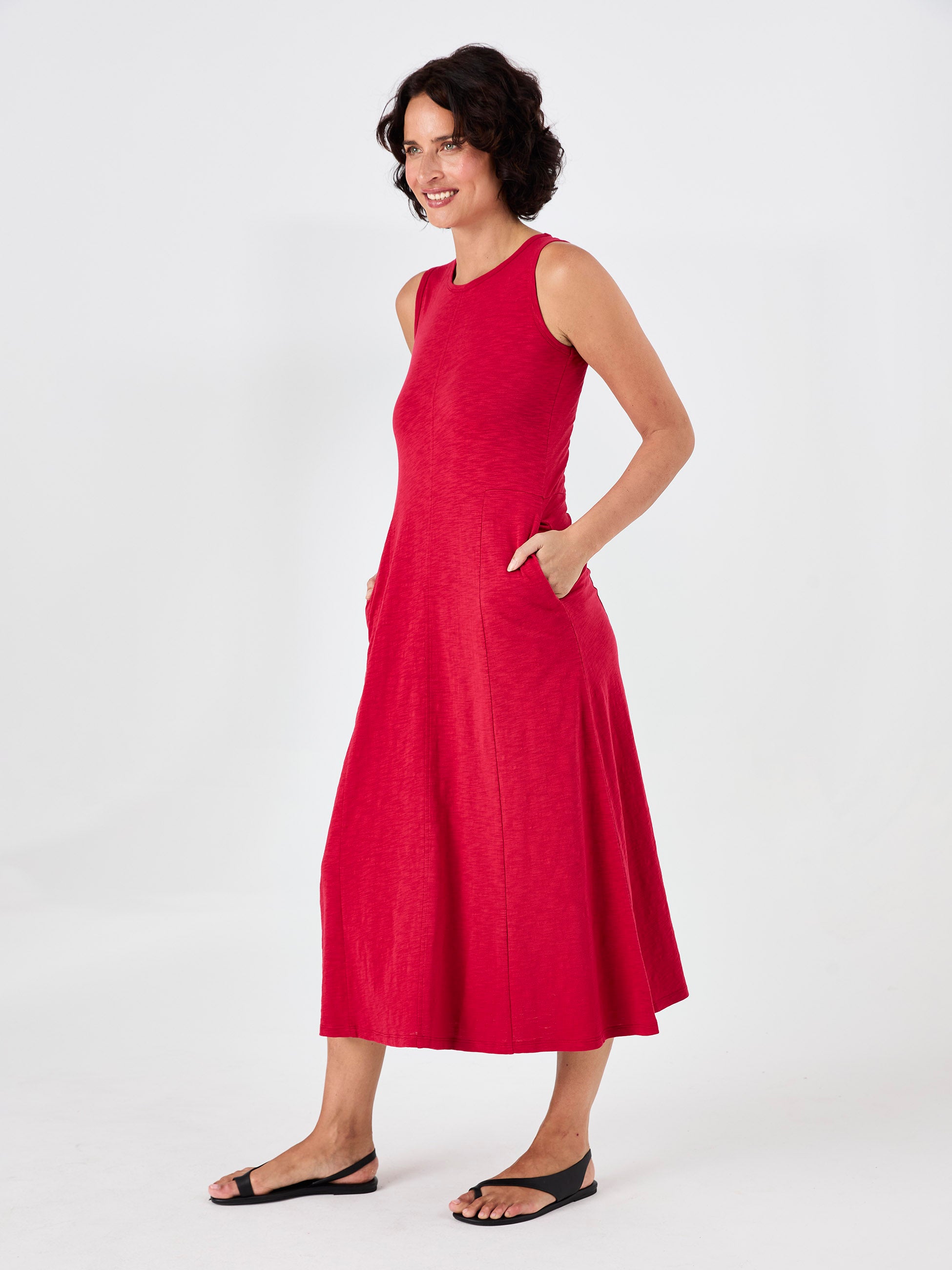 Textured Slub Dress - Cherry