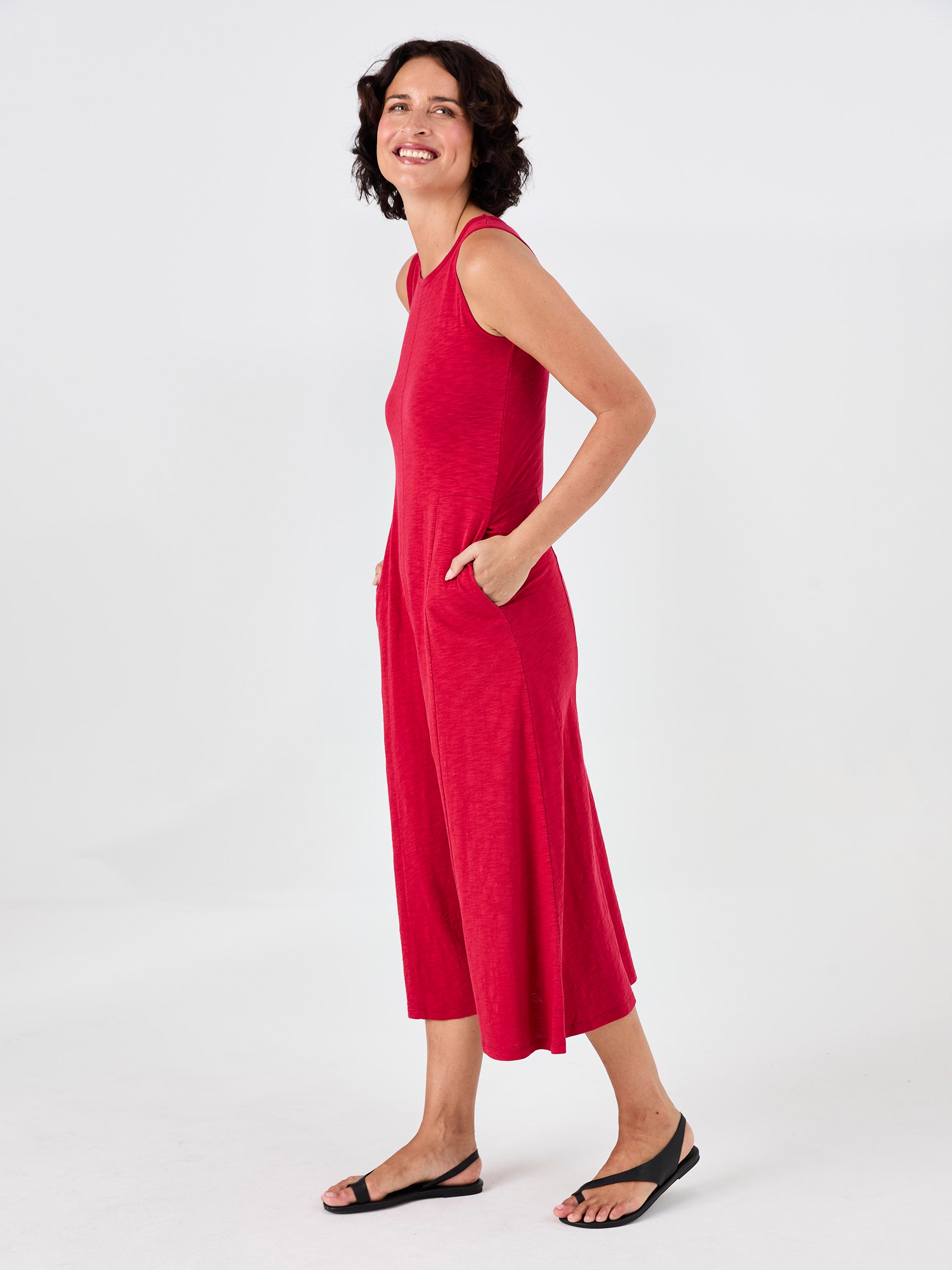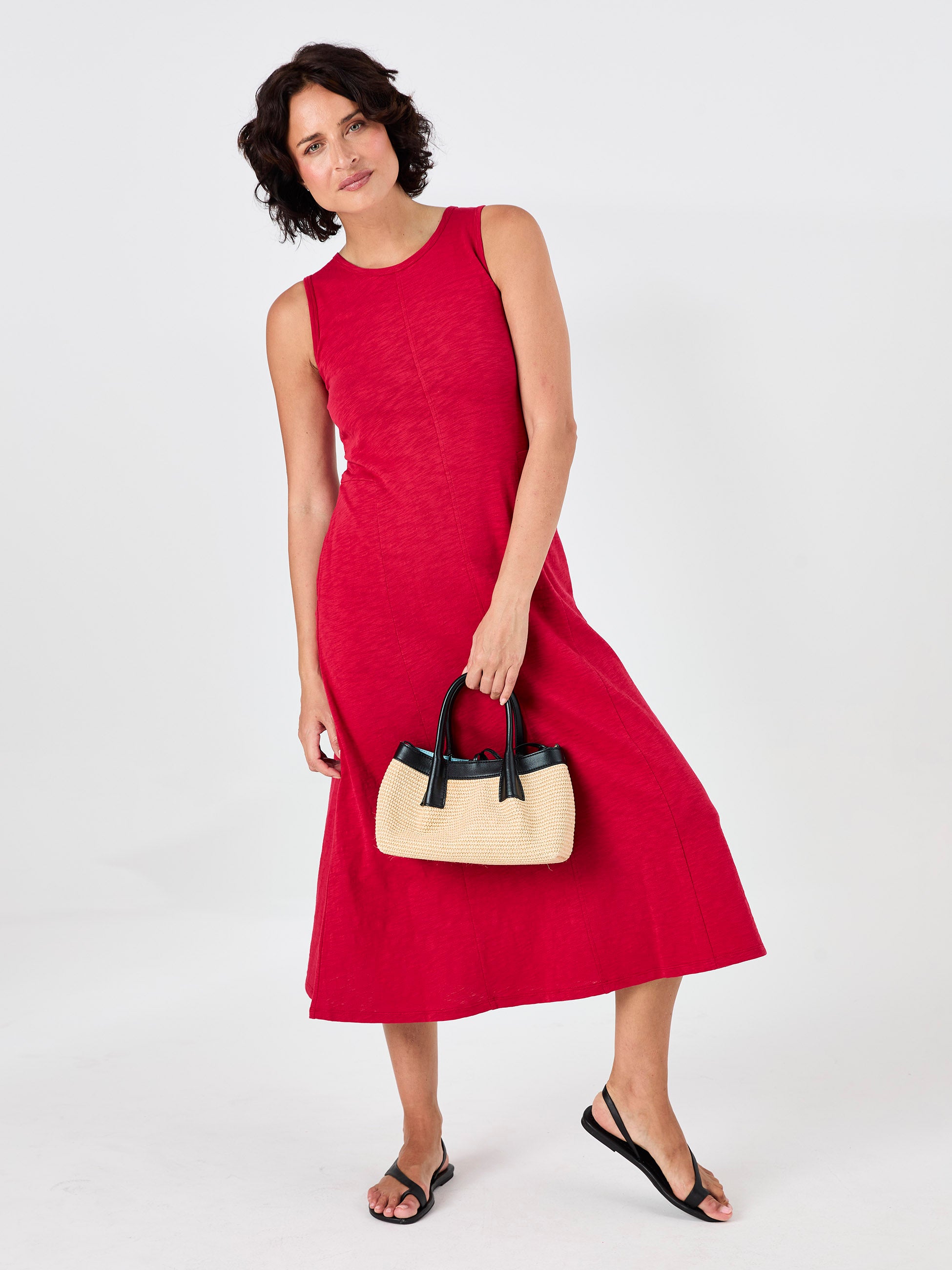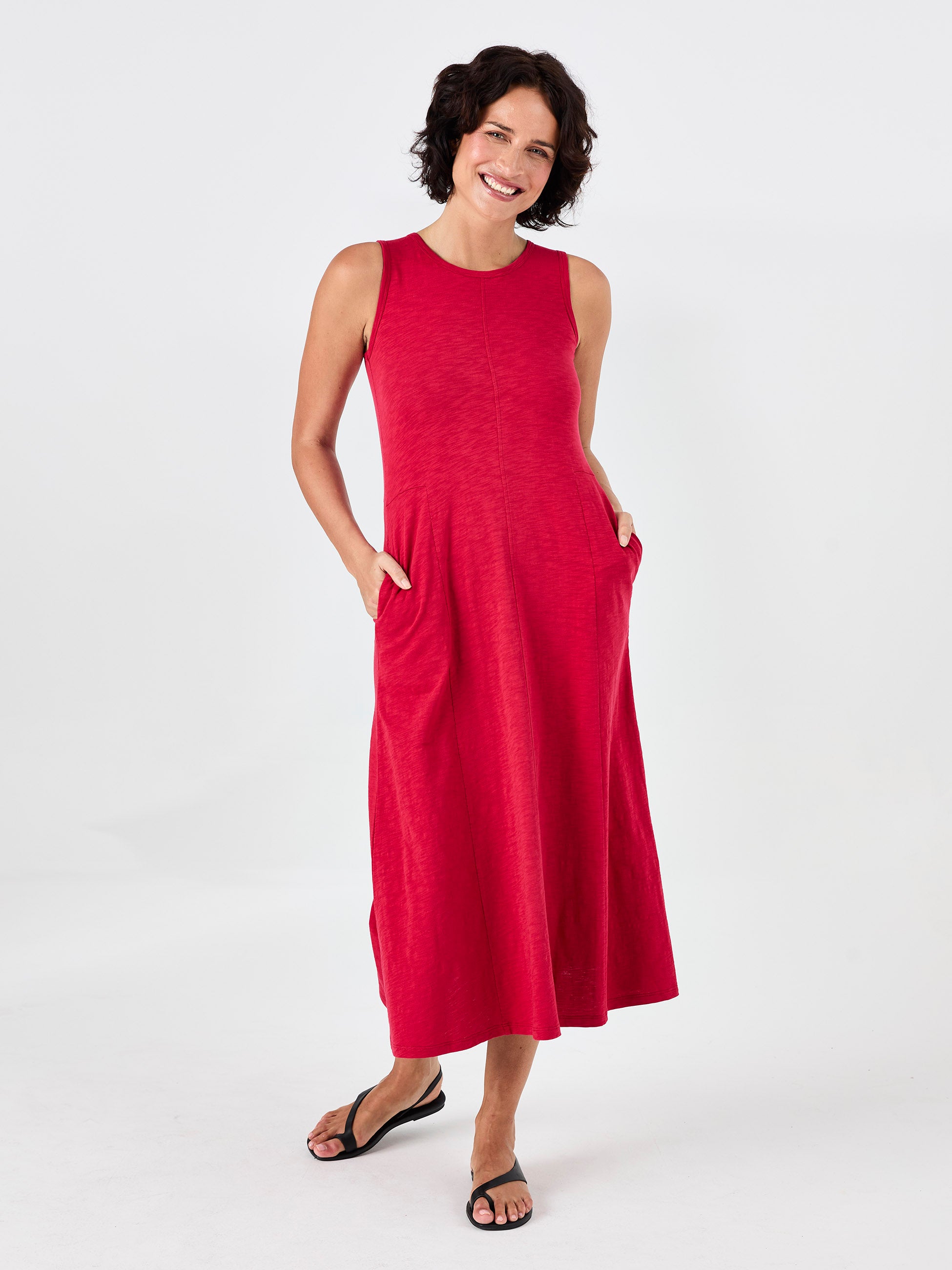 Textured Slub Dress - Cherry