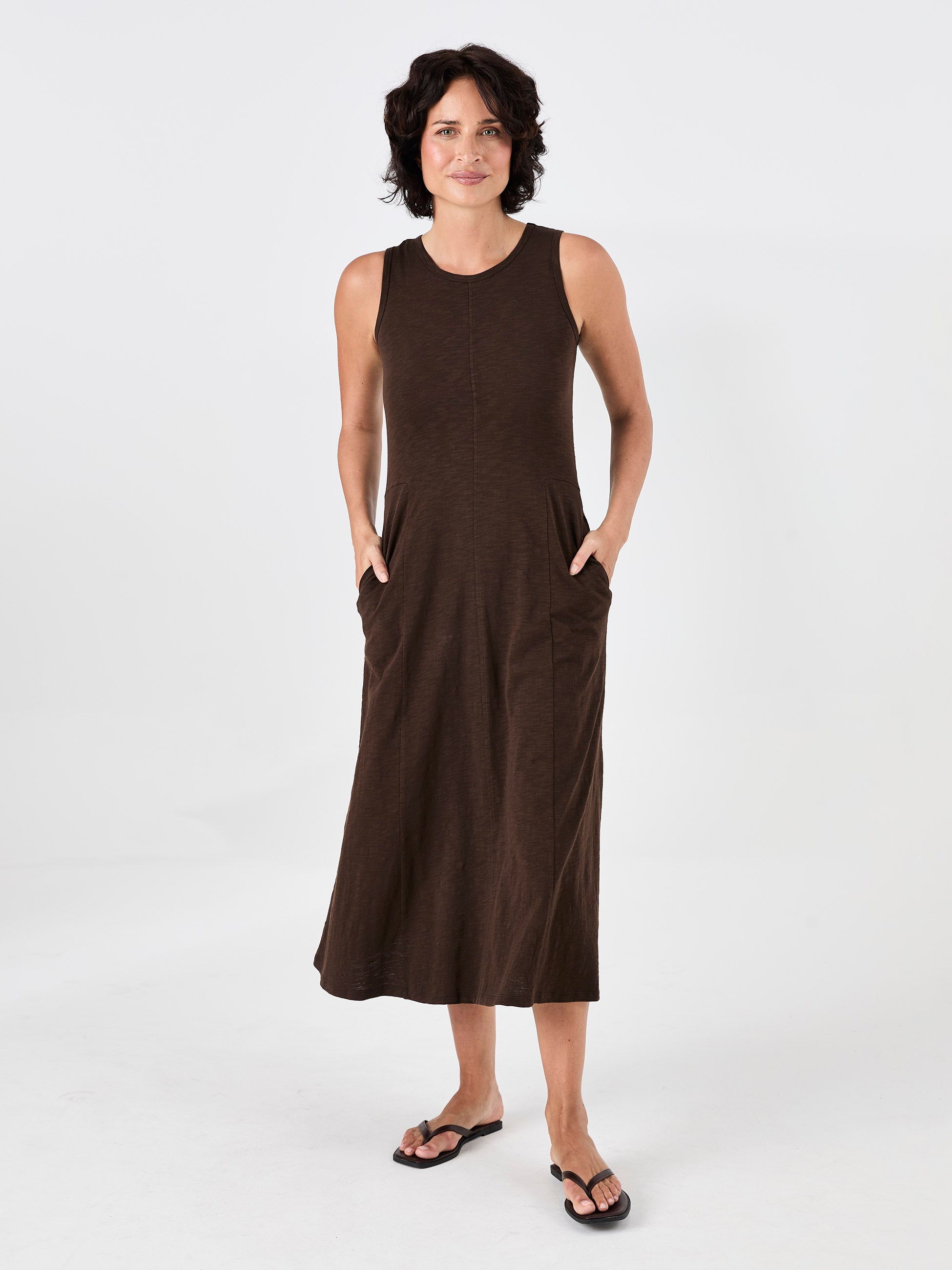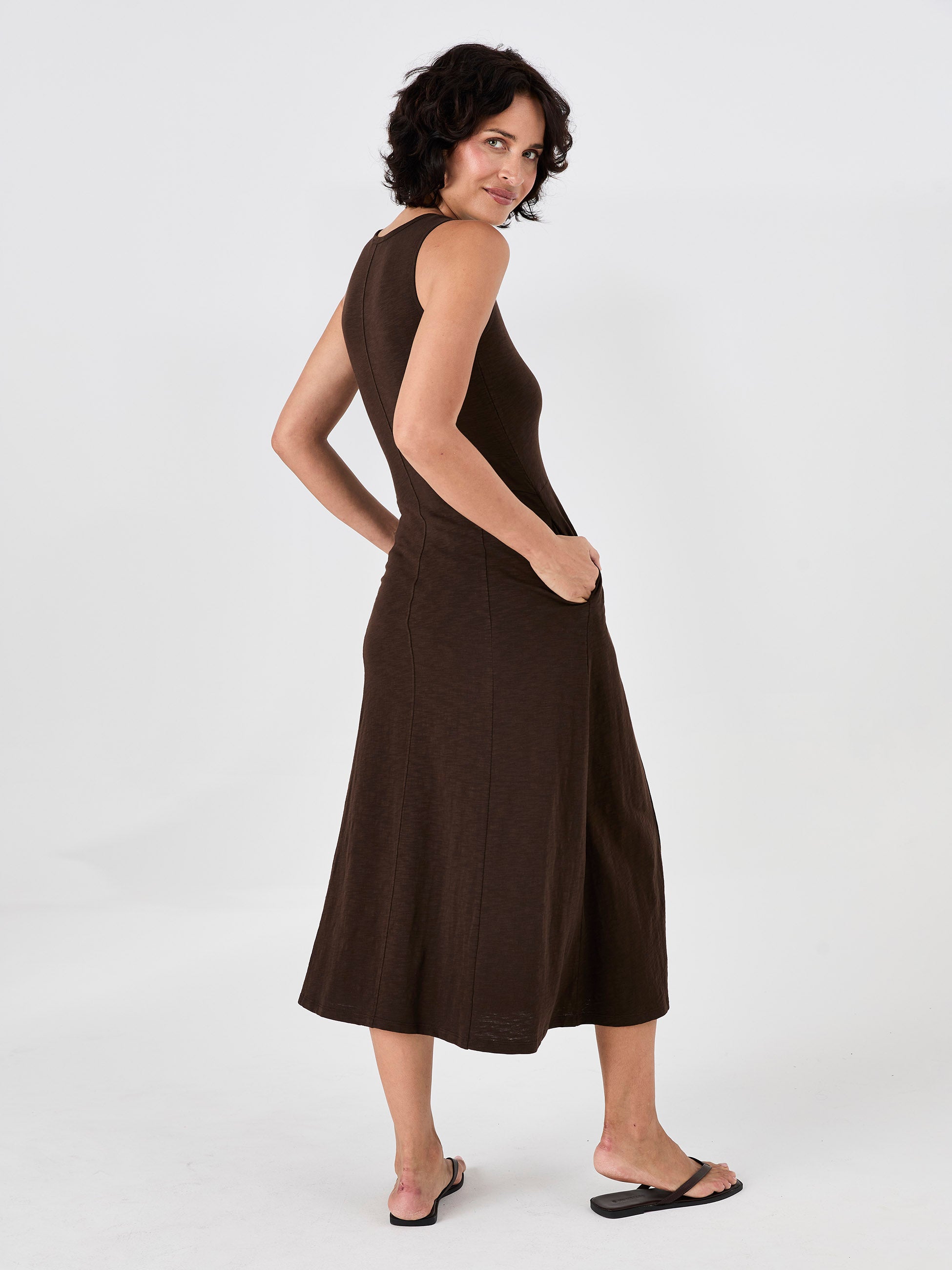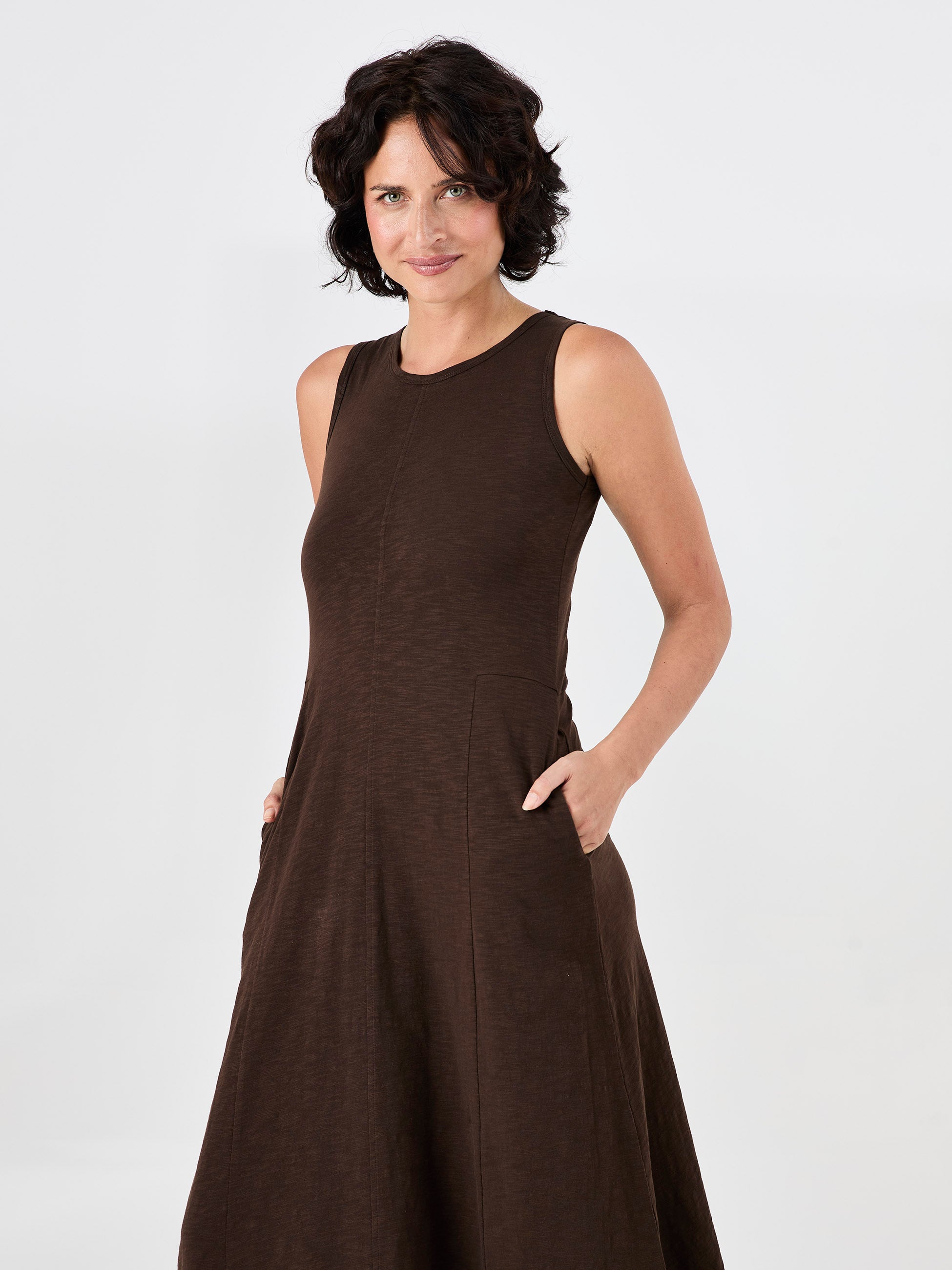 Textured Slub Dress - Coffee Bean