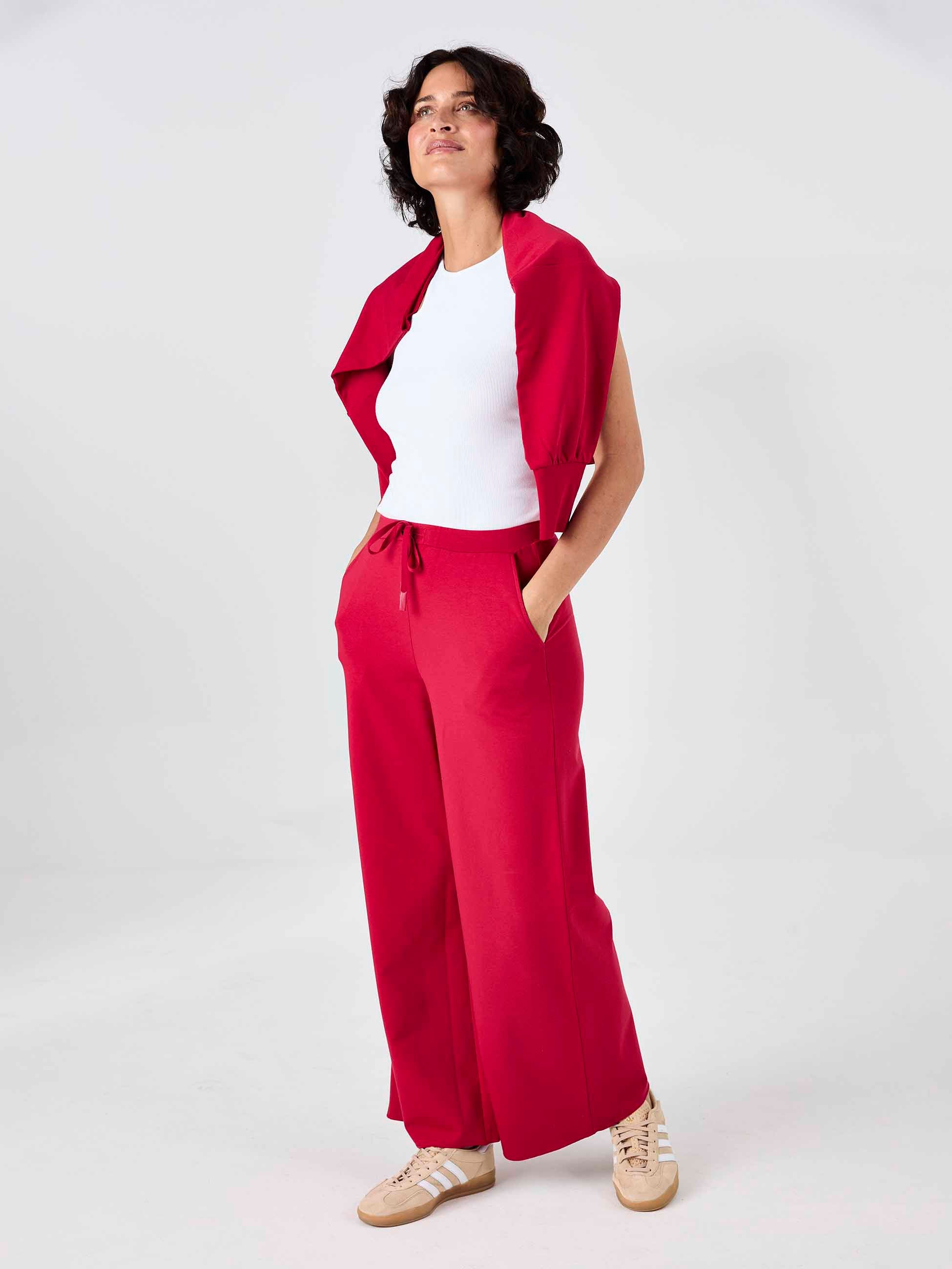 Classic Wide Leg Sweat Pants - Cherry