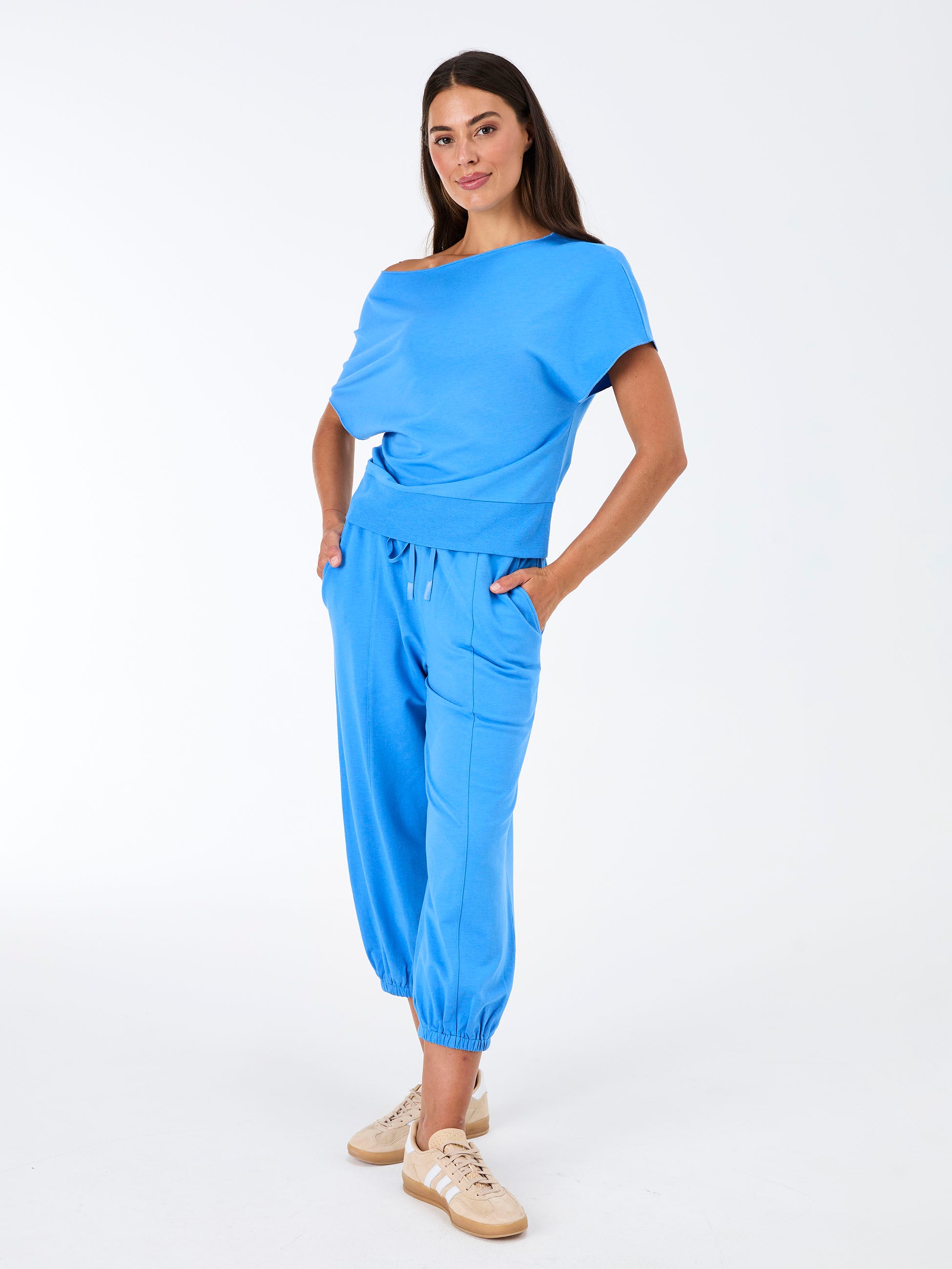 Crafted from our signature butter-soft fabric, the Dune Sweat Pant delivers next-level comfort with a polished, everyday silhouette. Designed in a flattering 7/8 length with a softly tapered leg and cuffed ankle, it’s relaxed — but refined. A soft elastic waistband with adjustable drawcord ensures the perfect fit, while functional back pockets elevate the look, giving you the structure of a pant with the ease of a sweat. It’s the piece you’ll reach for when denim feels too rigid and leggings feel too casual.
