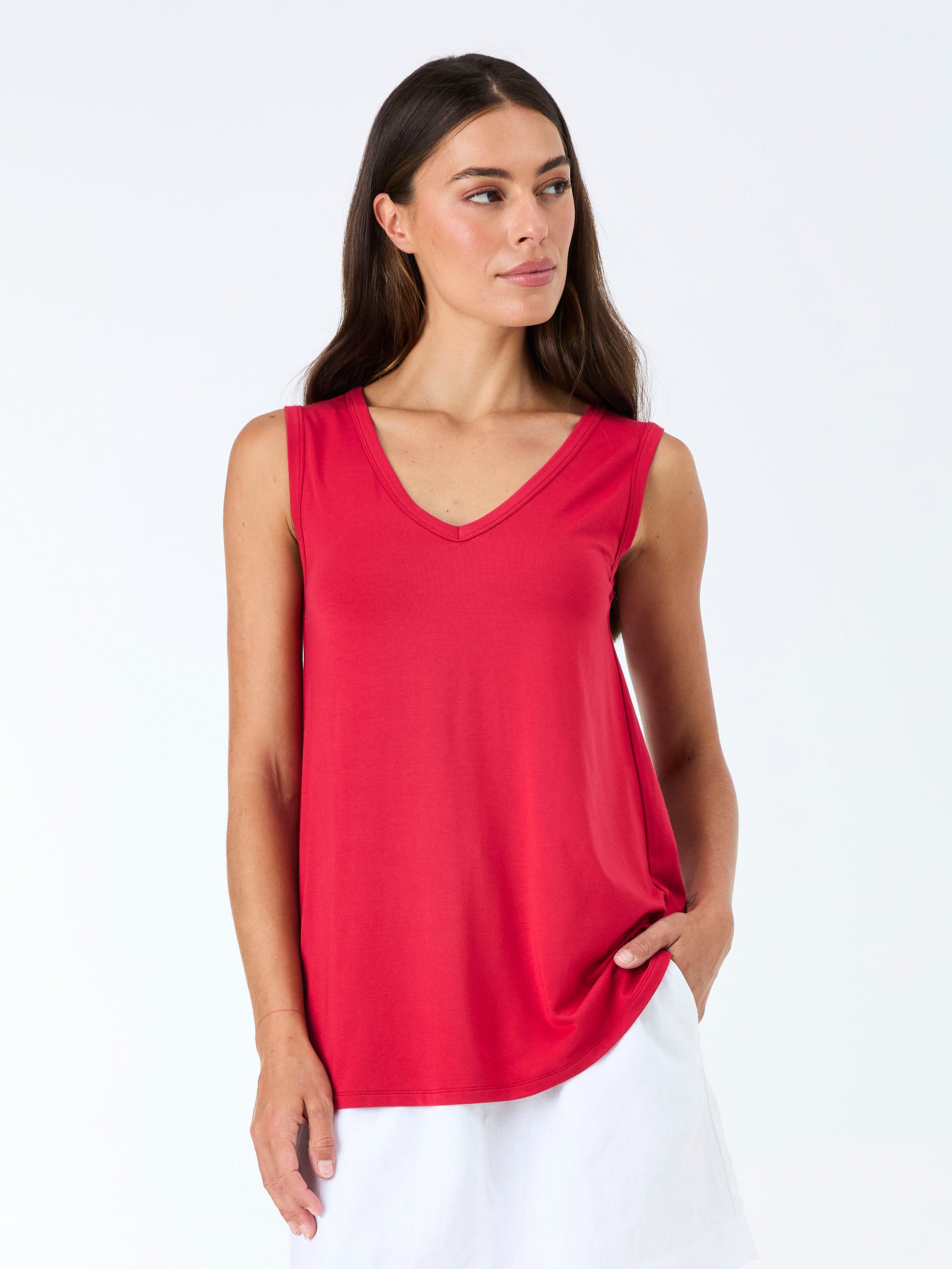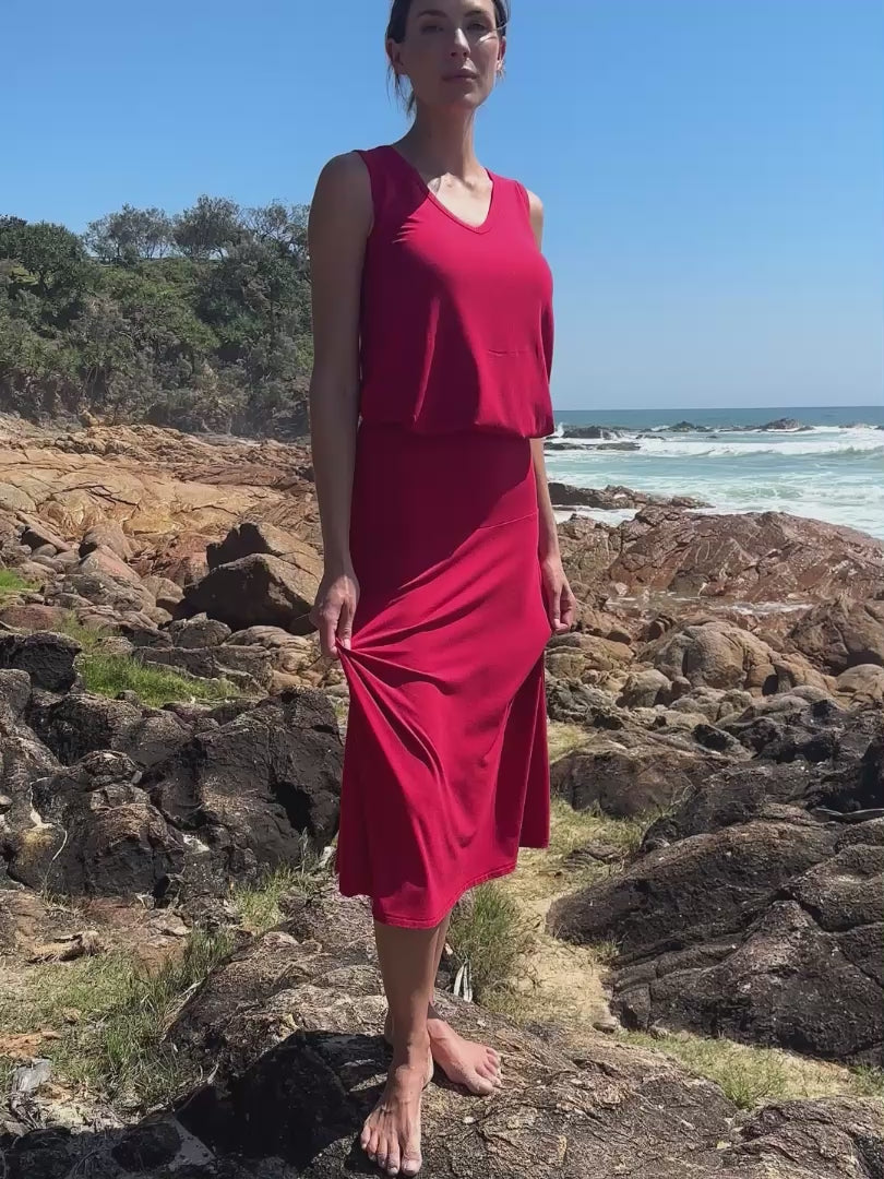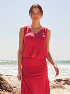 V Neck Swing Top - Cherry