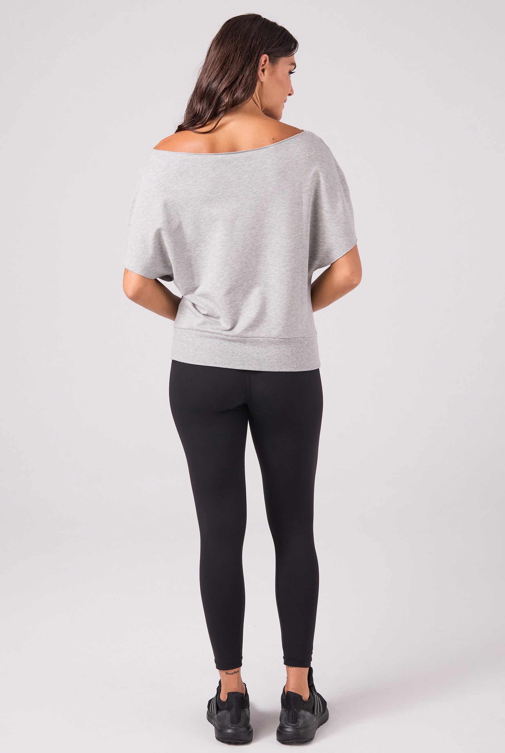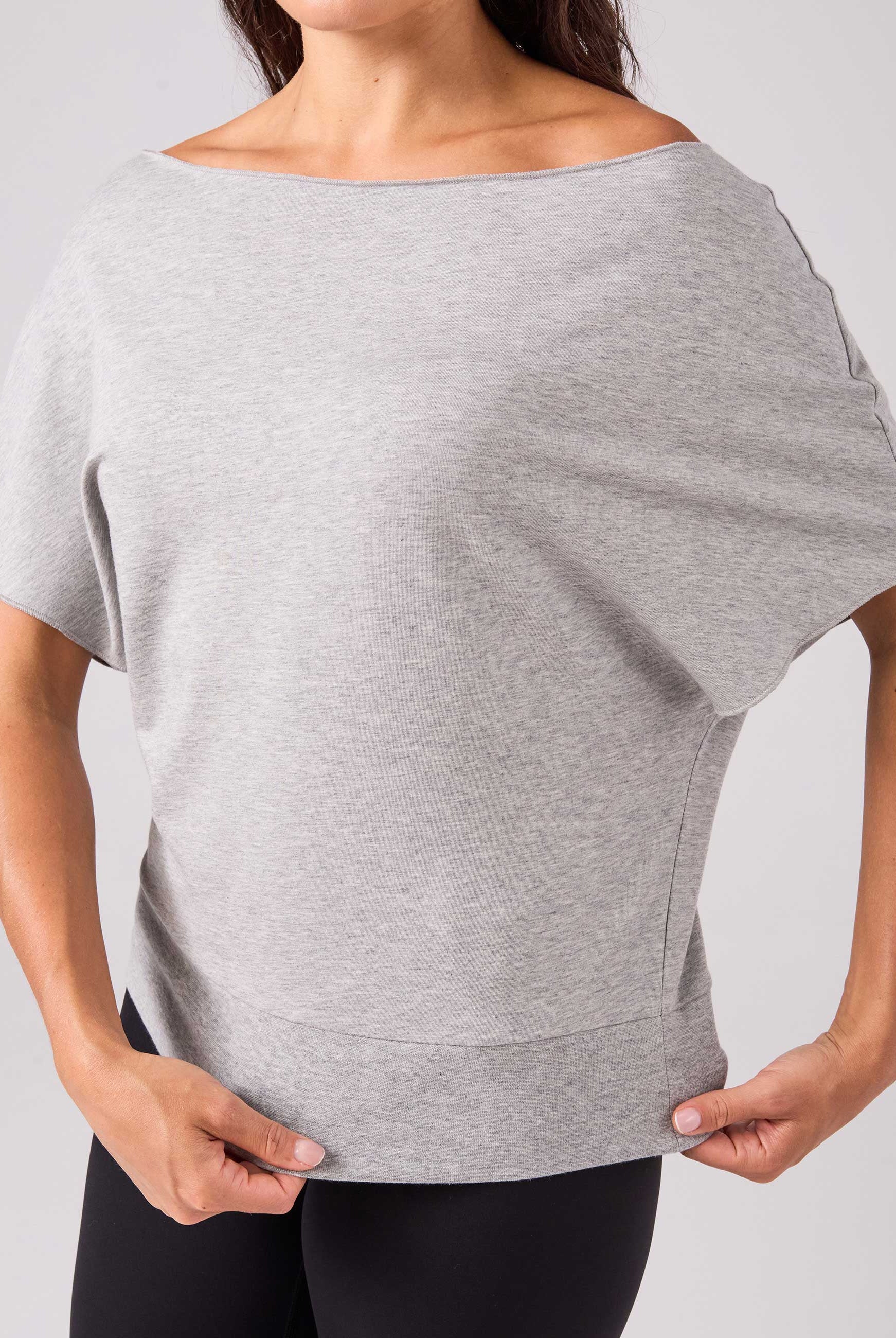 French Terry Short Sleeve Off Shoulder Sweatshirt - Pastel Yellow
