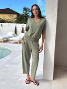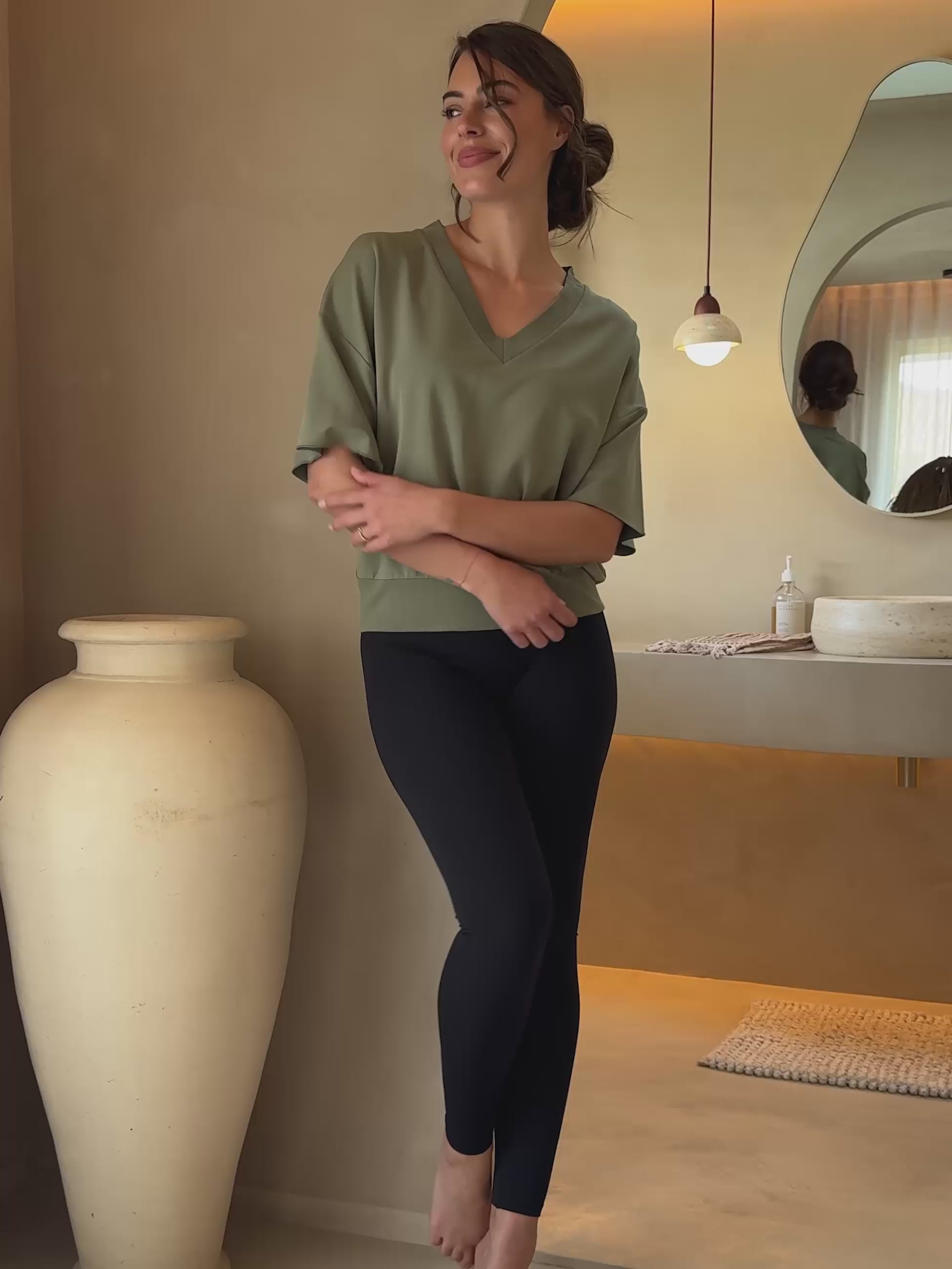 Laid-back and effortlessly cool, the V-neck sweatshirt is your go-to for off-duty comfort. Featuring a drop sleeve and a flattering deep V neckline, it’s designed with ease in mind. The ribbed waistband adds gentle shape without compromising its relaxed silhouette. Crafted from a super-soft, lightweight sweat fabric, this piece feels as good as it looks — ideal for layering or lounging.Front length:
