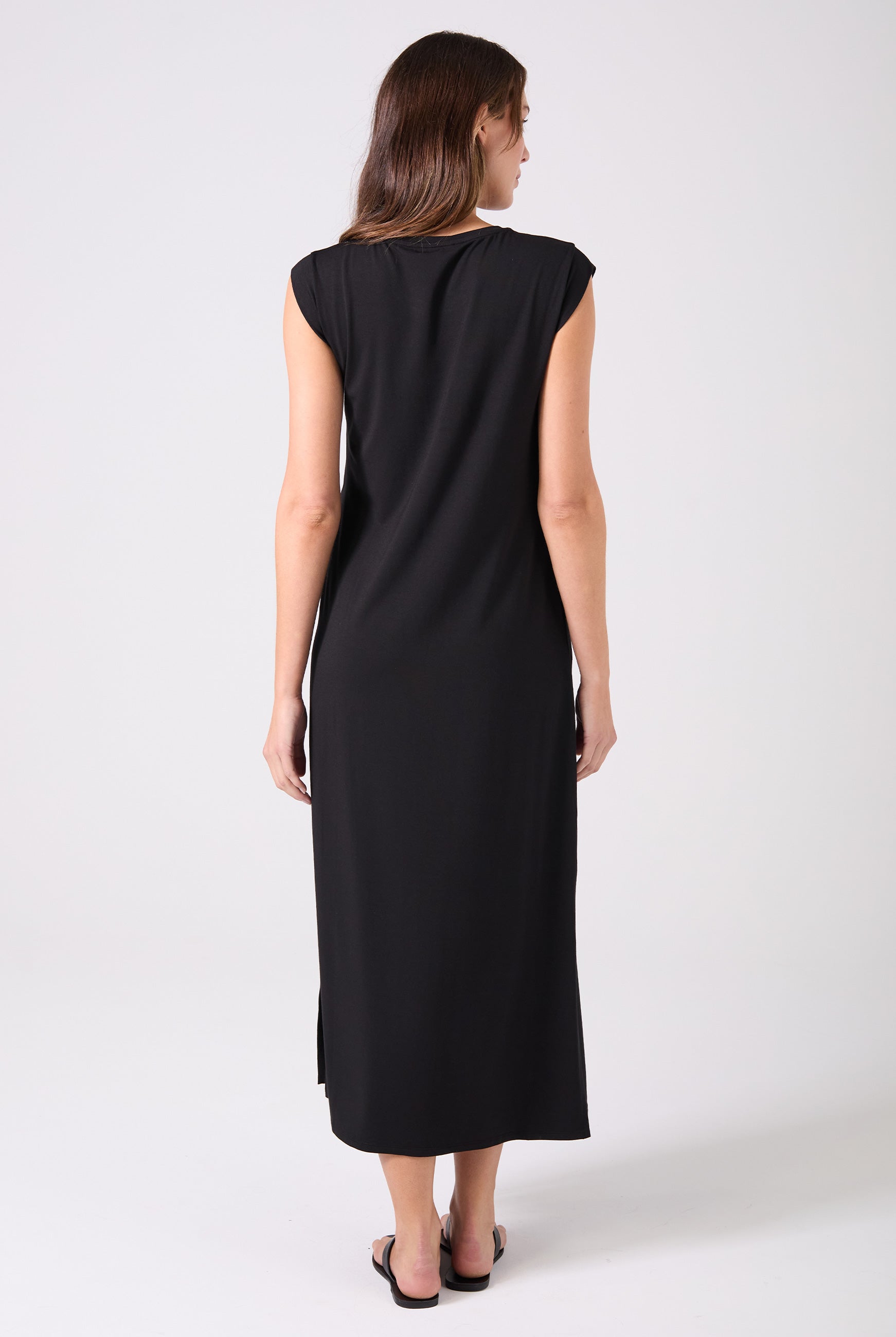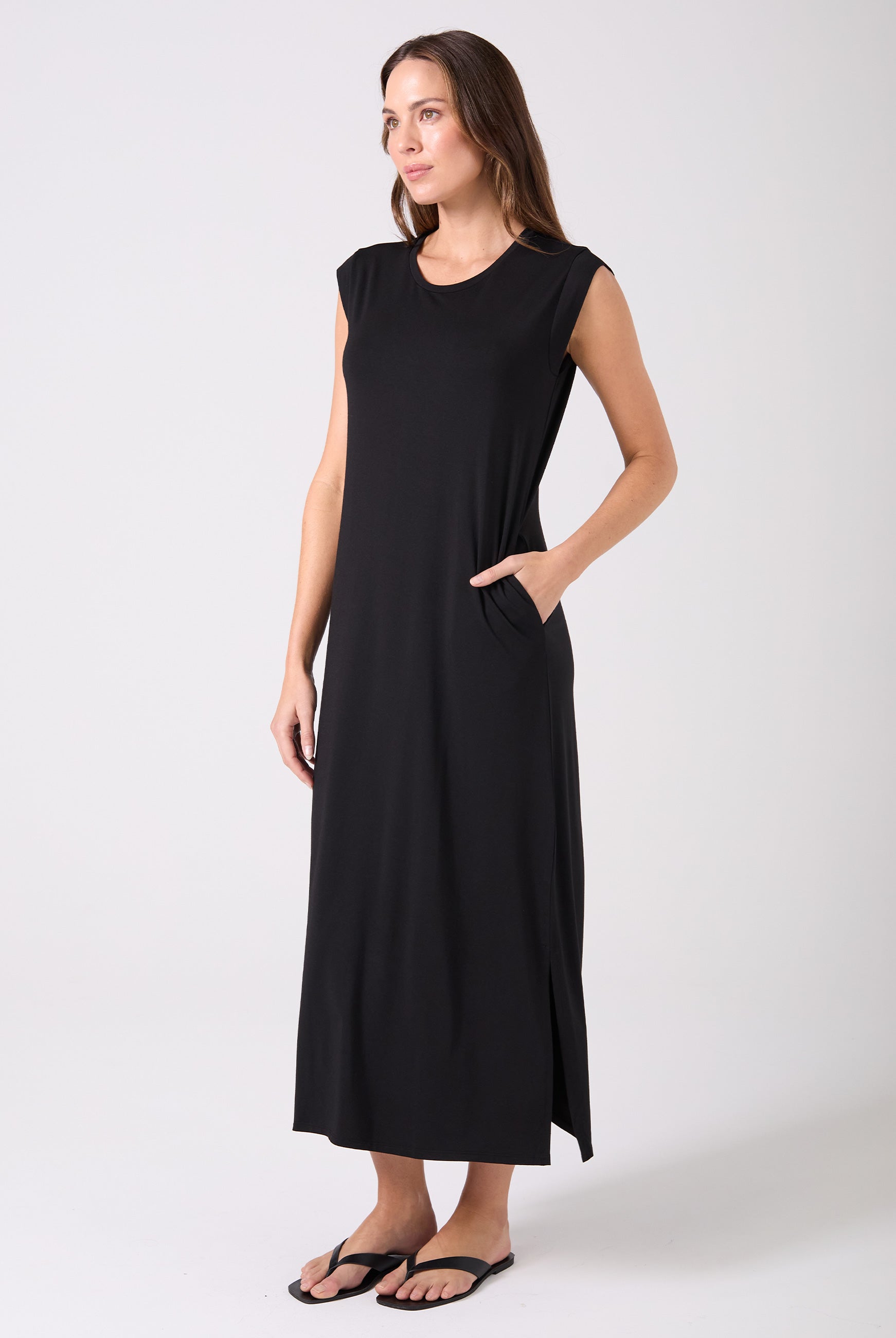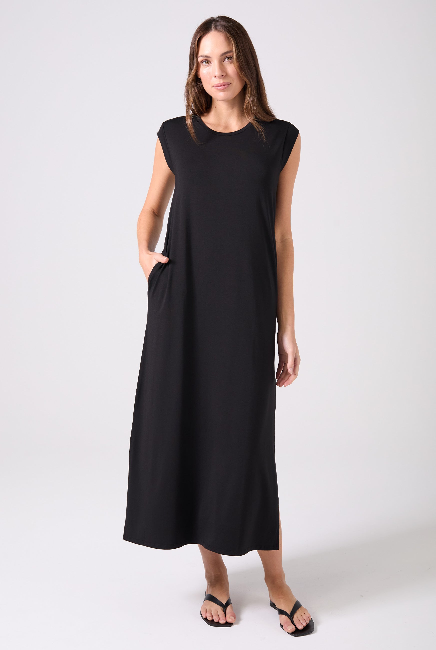 Effortlessly elegant and endlessly wearable, the Serene Flow Maxi Dress is crafted from ultra-soft, breathable fabric for all-day comfort. It features a flattering V-neckline, cap sleeves, side pockets, and flowy side splits, offering both style and ease. A versatile wardrobe staple, this maxi drapes beautifully over all body shapes, making it perfect for getaways, weekend lounging, or elevated evening looks.