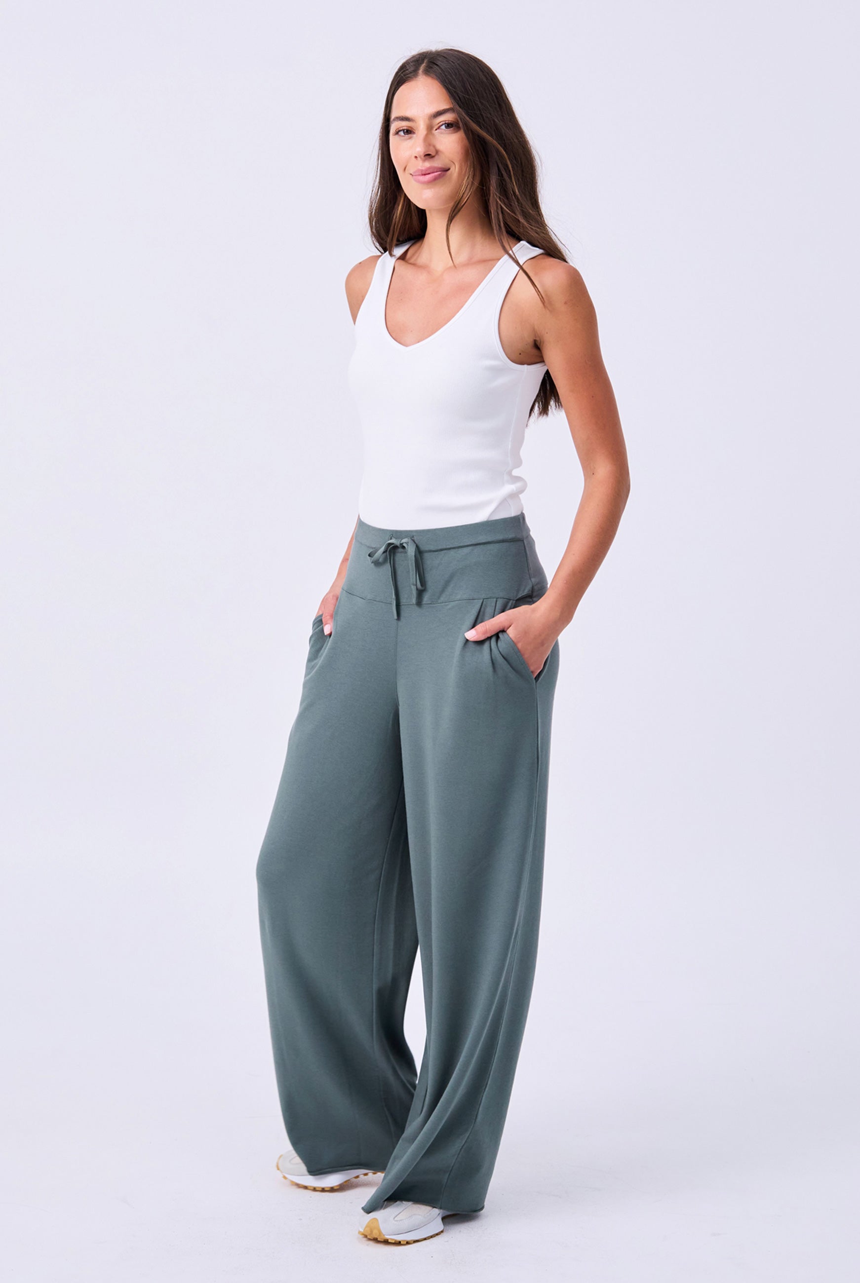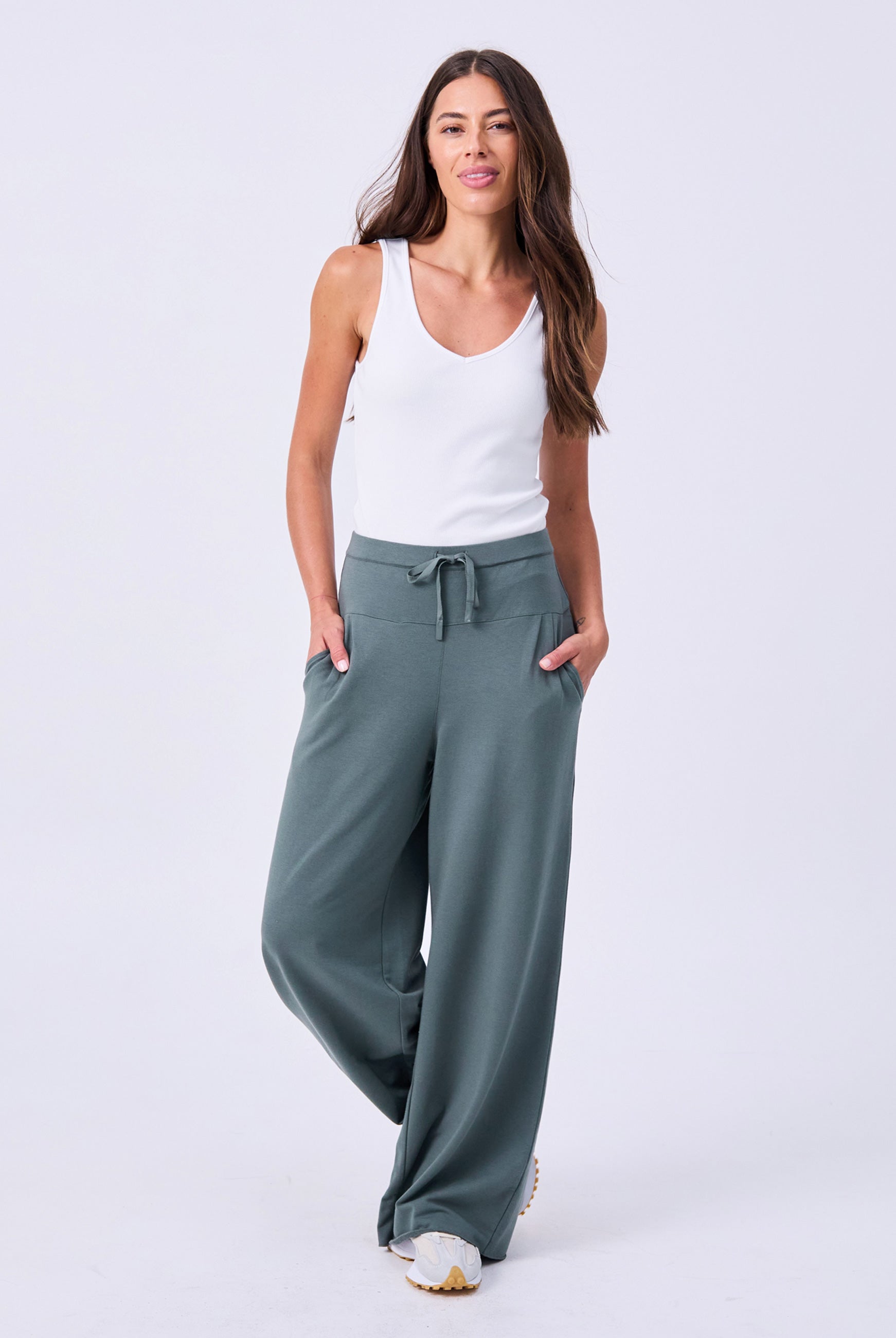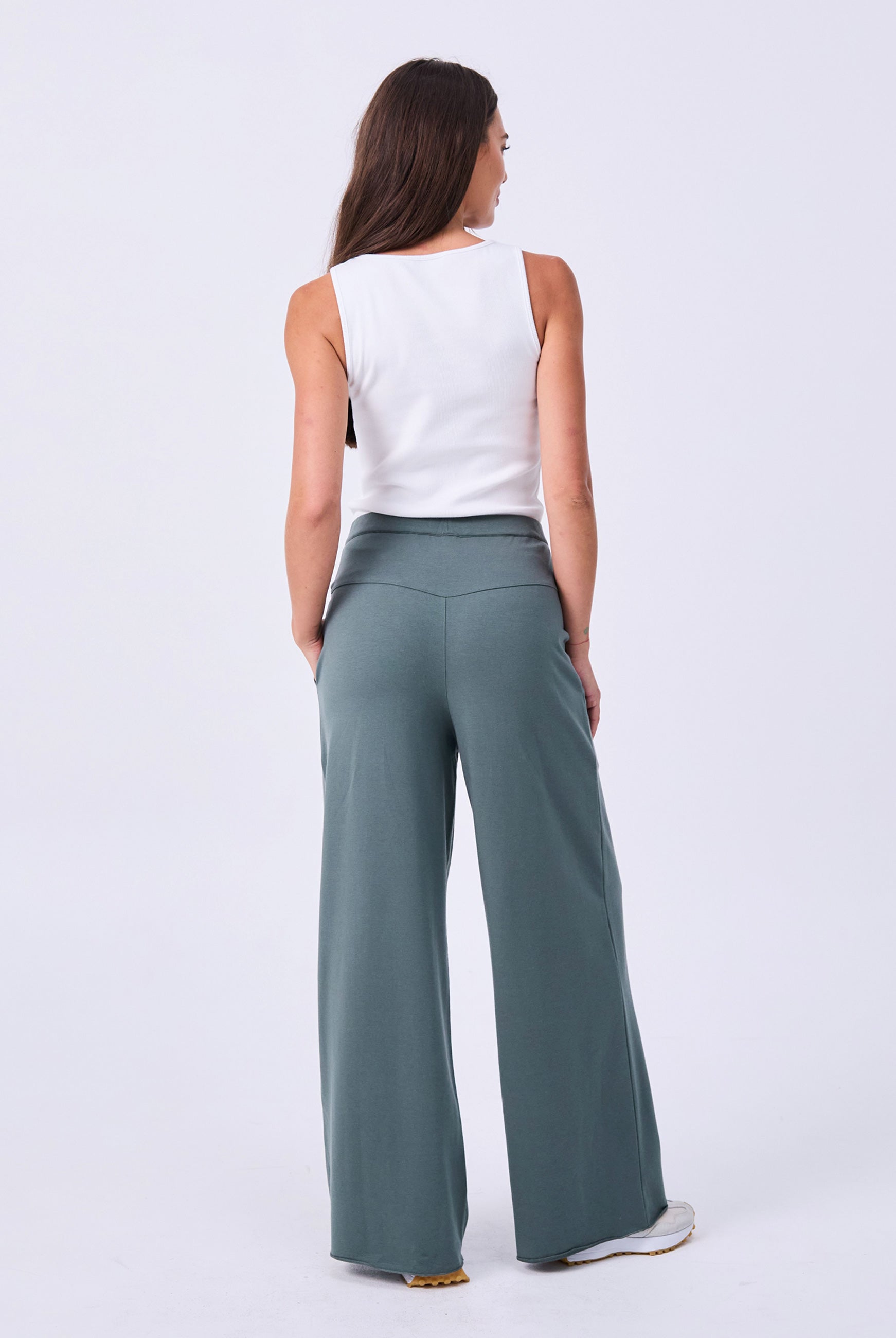 Crafted in our signature ultra-soft, lightweight Modal French Terry, the wide-leg Yin Pant is perfect for warmer climates and effortlessly transitions from studio to street. It features a flattering V-back design, a soft drawcord waist, and a wide-leg silhouette with a raw edge finish, making it a go-to choice for everyday wear. The fit is true to size, with an inside leg measurement of 73 cm.