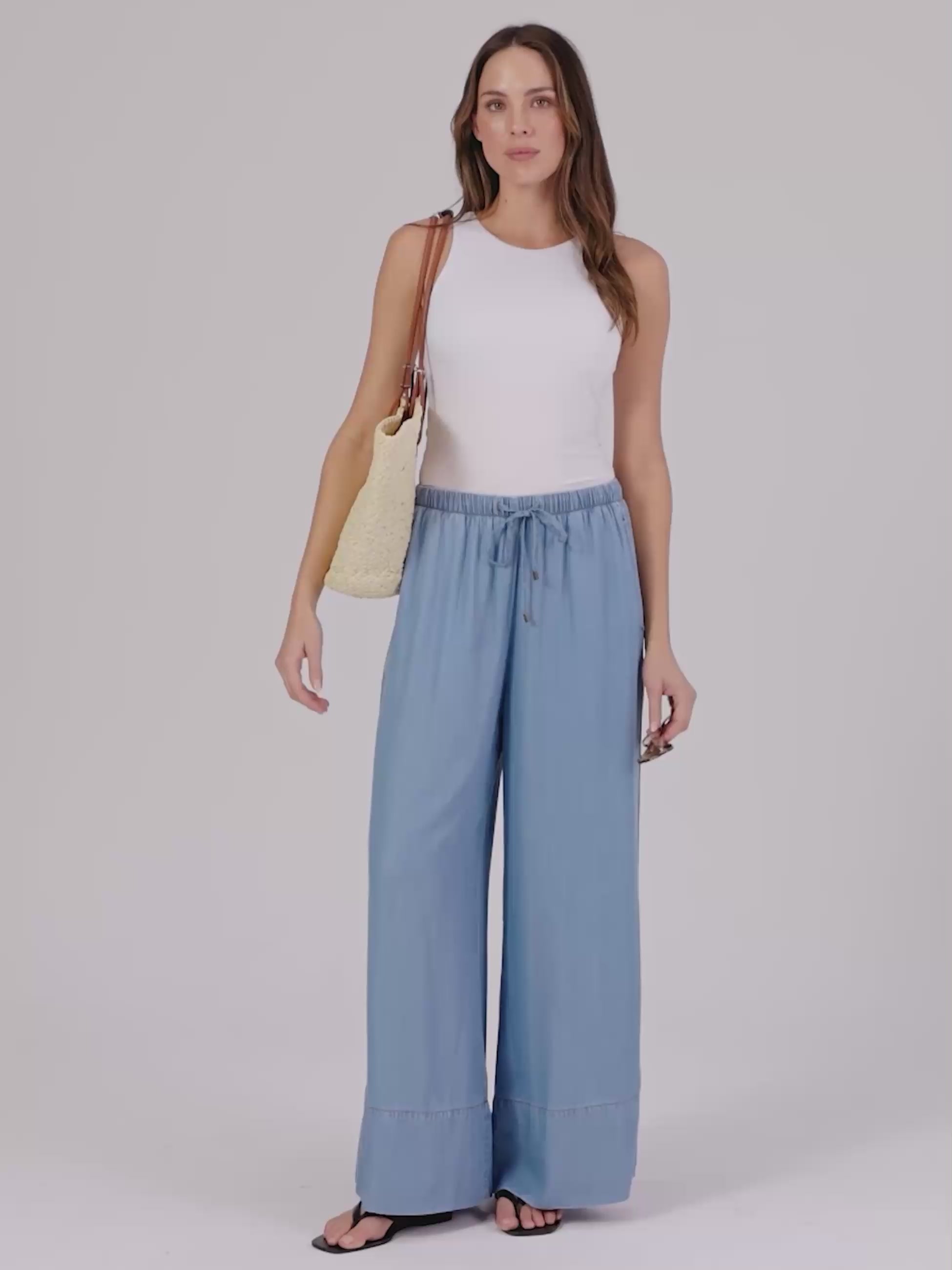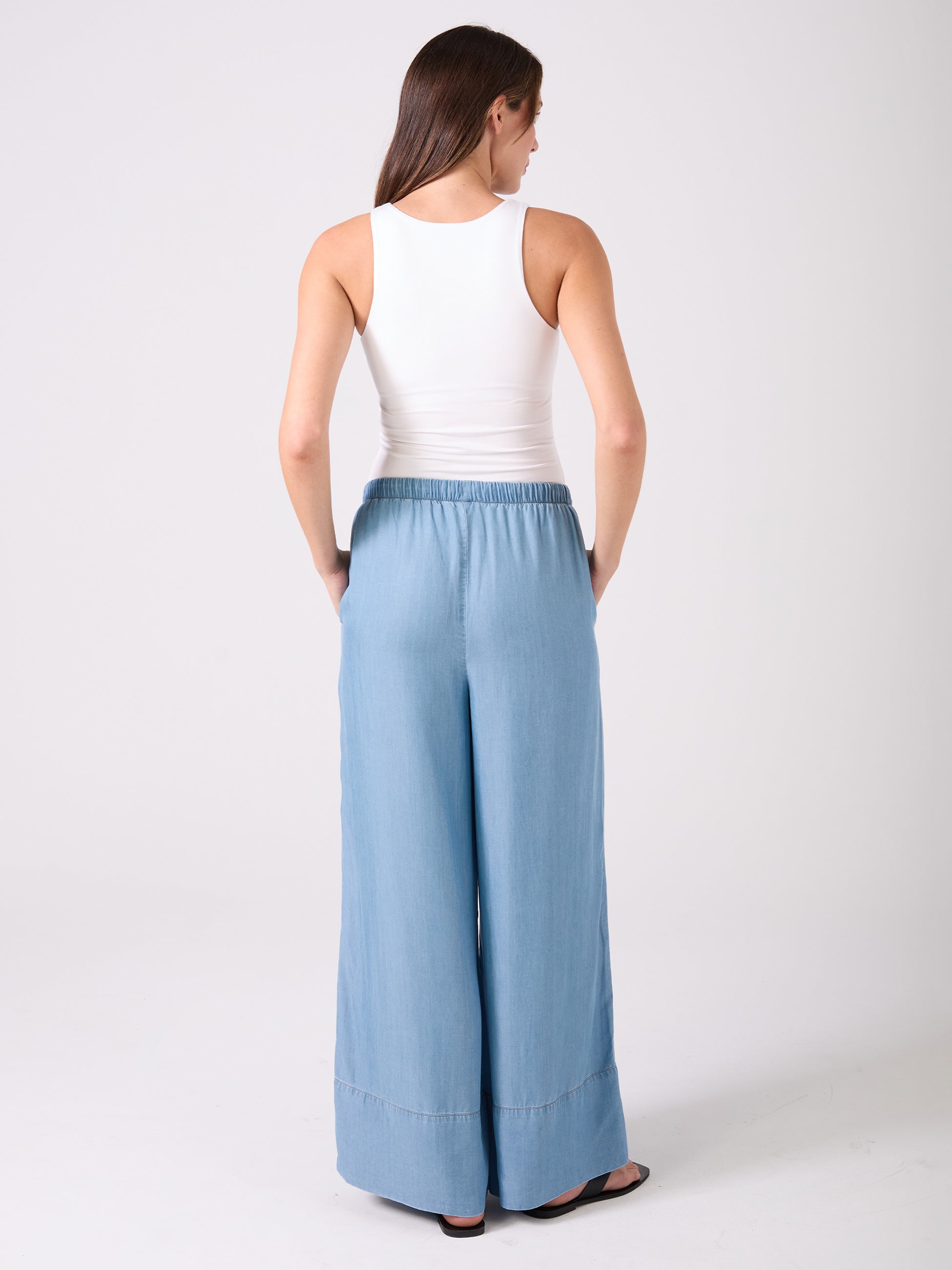 Denim Tencel Palazzo Pant - Light Denim