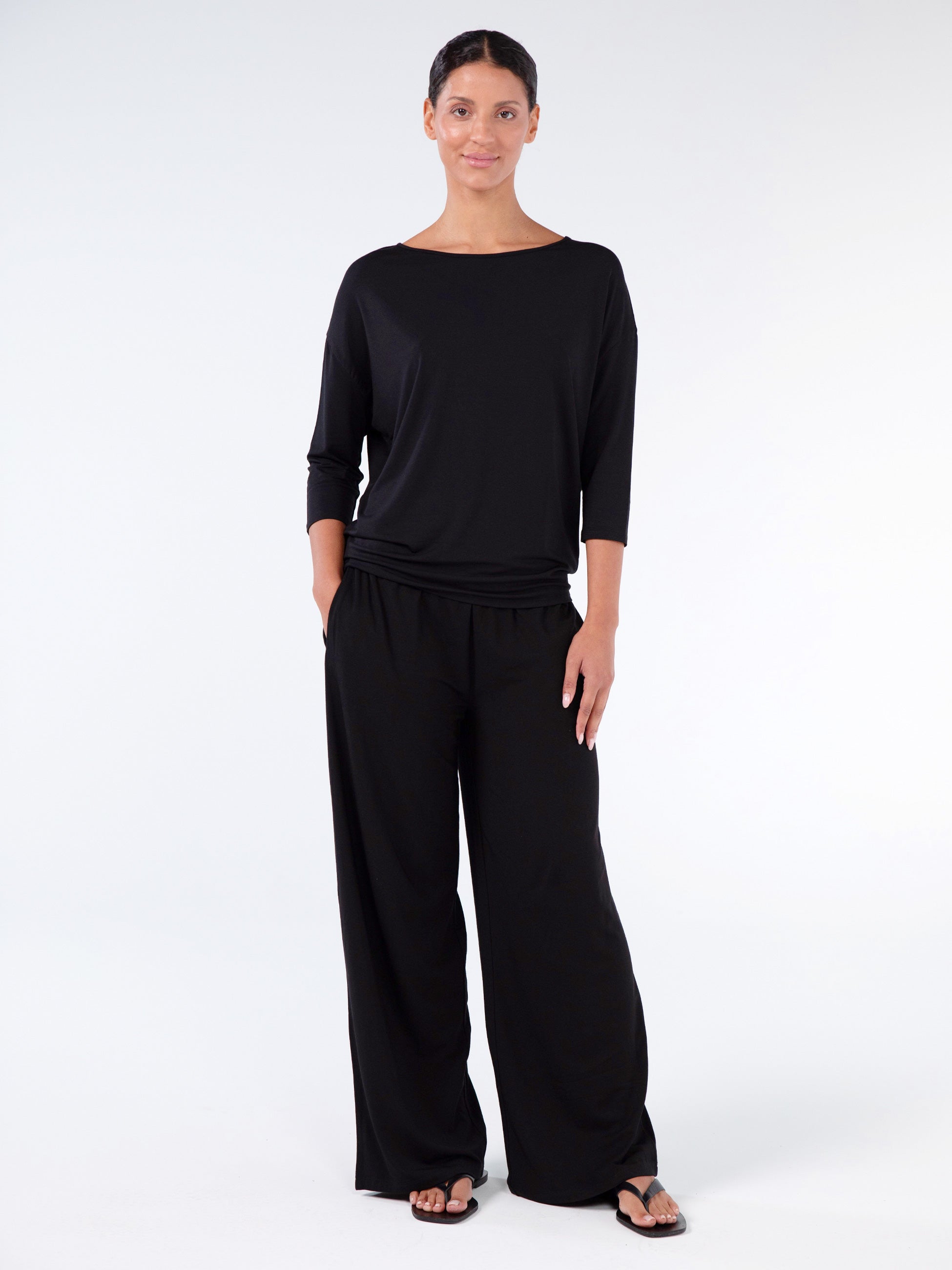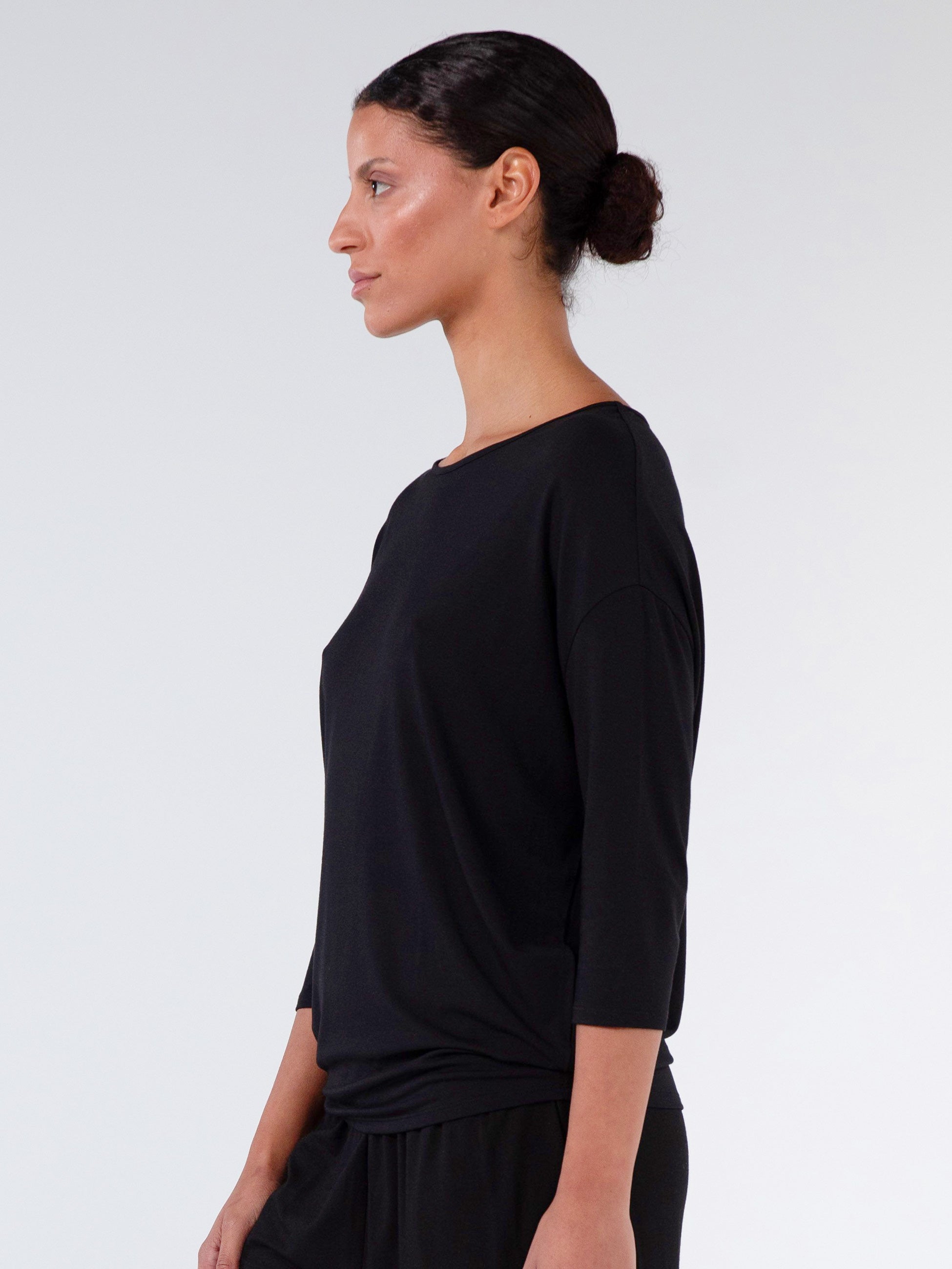 Modal Luxe Layer Tee 3/4 Sleeve - Black