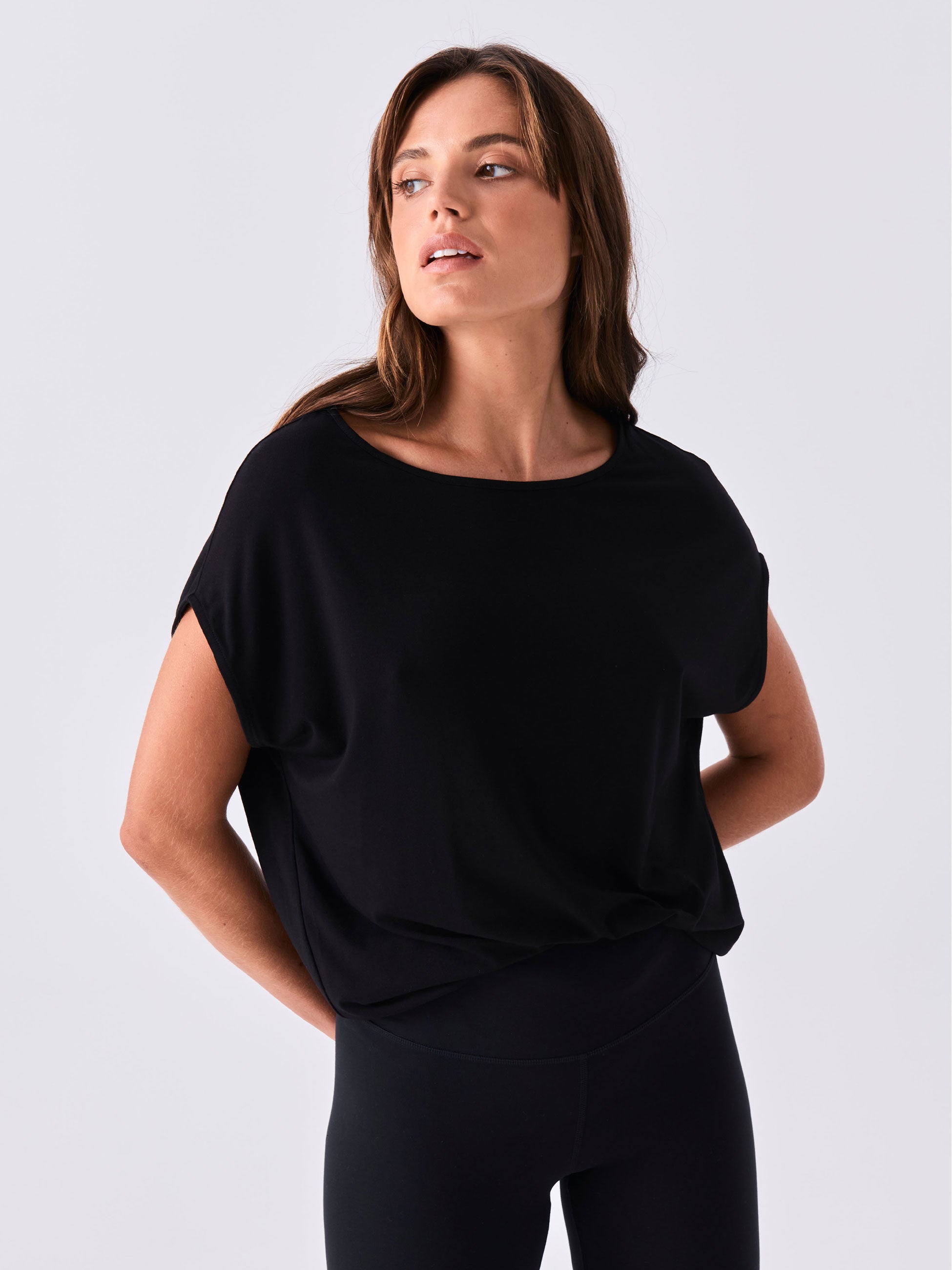 "Perfect black tee. So comfy. Falls beautifully. Feel great in it"