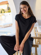 What sets this tee apart is the buttery modal that feels indulgent yet practical, draping in a way that flatters without clinging. Shoppers reach for it for work, travel, and everything in between because it pairs with jeans, skirts, or matching pants and easily dresses up or down—no ironing and it packs like a dream. The relaxed, hip-sitting cut stays put and can be worn long or ruched, keeping you cool and confident all day.