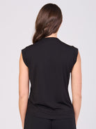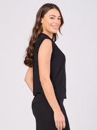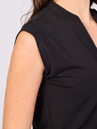 The thoughtful cap sleeve is designed to flatter the upper arm, while the refined placket is enhanced by a softly structured collar detail that frames the neckline for a polished finish. Cut to a perfect bum-covering length, it offers confidence and ease of movement, whether paired with leggings, wide-leg pants, or denim.