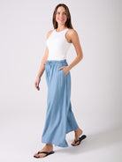 I love this skirt. The fabric is soft, cool and flowy and looks amazing. A very versatile piece that can be casual or dressed up.