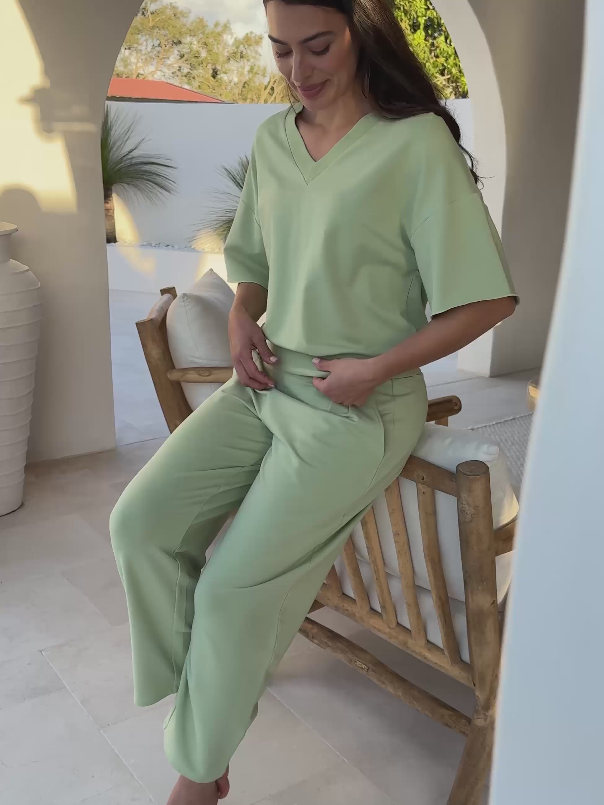 V Neck Sweat - Matcha Green