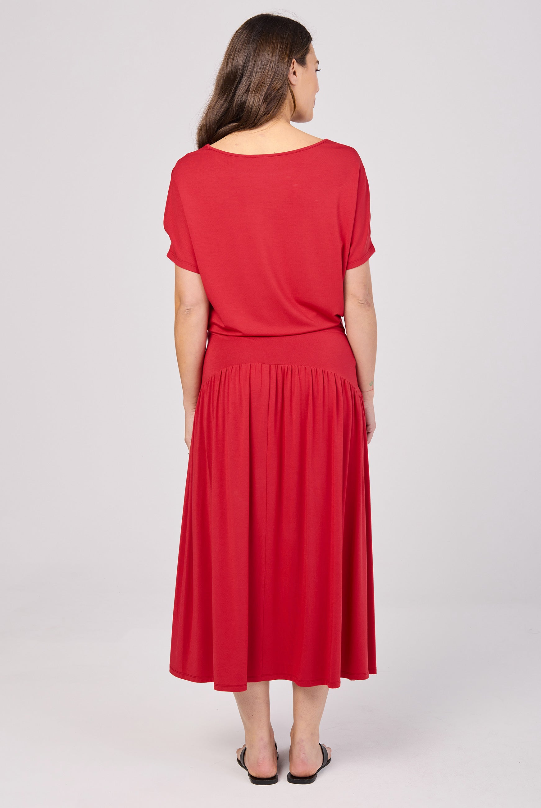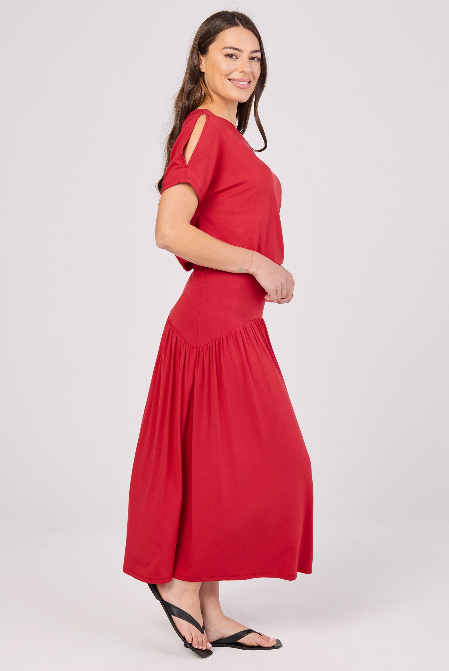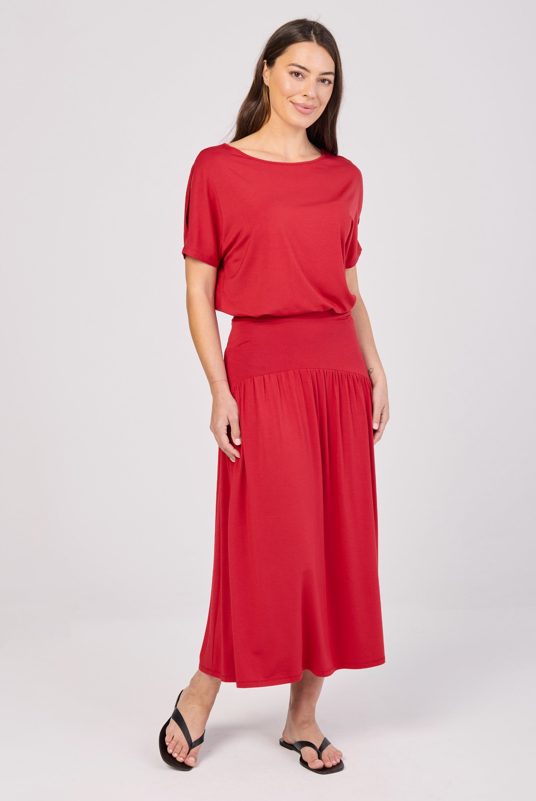 Shoppers consistently describe this top as “silky soft” with a beautiful drape that feels comfortable while still reading as dressy. The standout is the vibrant cherry/red colour—bright and flattering rather than harsh—making it an easy pick for work outfits, layering under jackets, and occasions like Christmas. Fit feedback is mostly positive (especially for a fuller bust), though a few mention it sits at the waist and some would size up or prefer more length in the body.