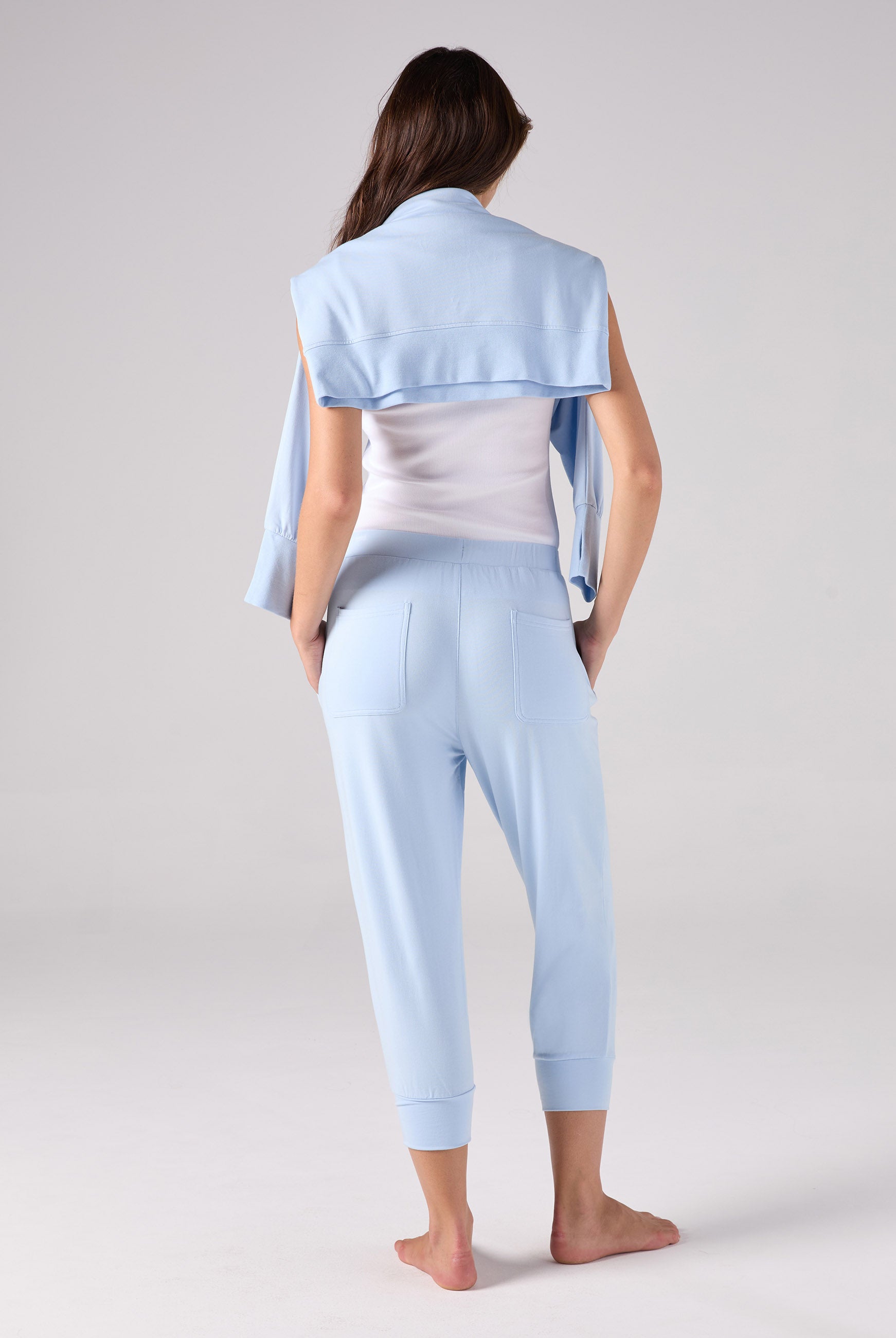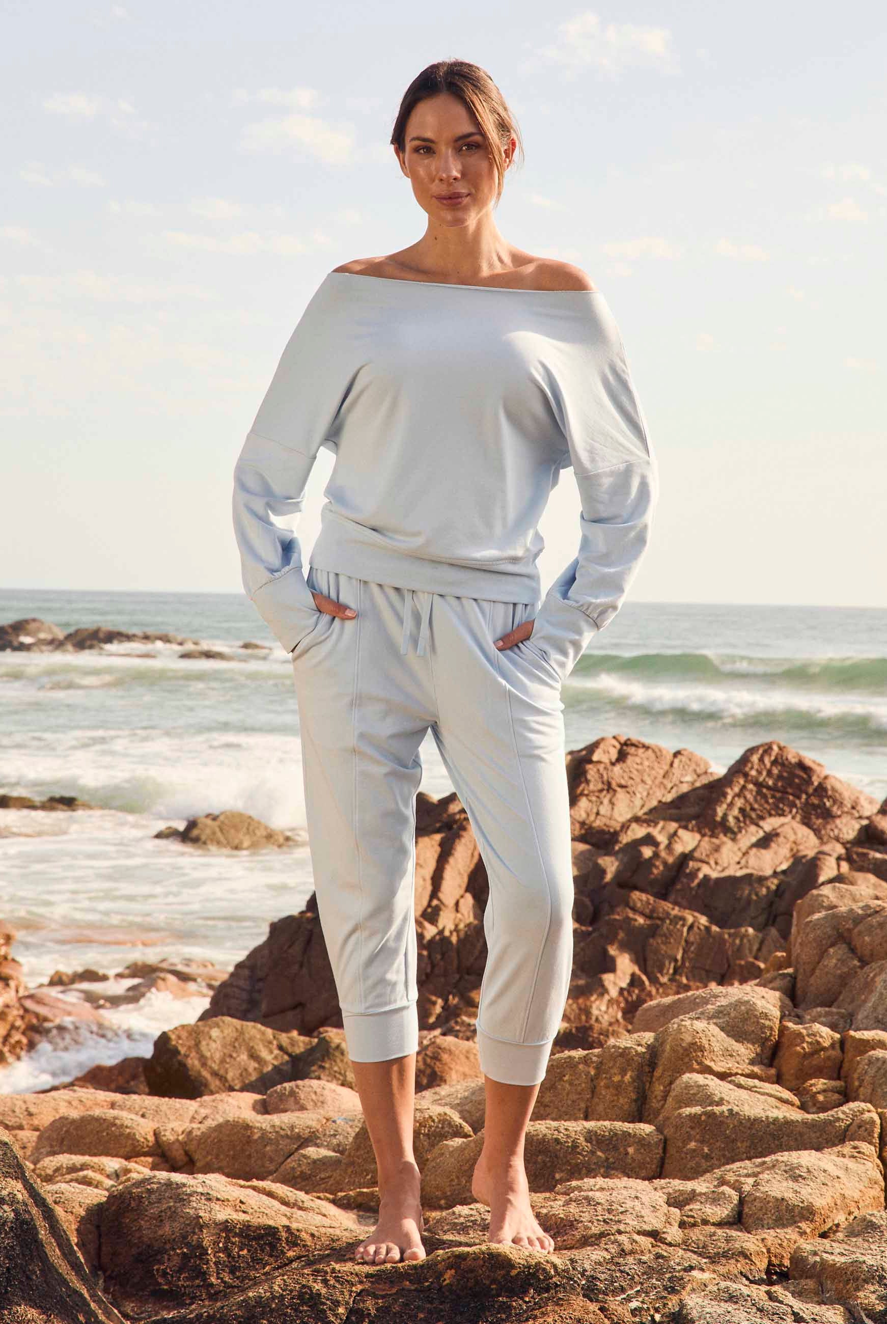 French Terry Short Sleeve Off Shoulder Sweatshirt - Cashmere Blue