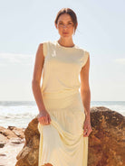 - Cap sleeve design that sits at the right level and gives shoulder coverage without feeling sleeved