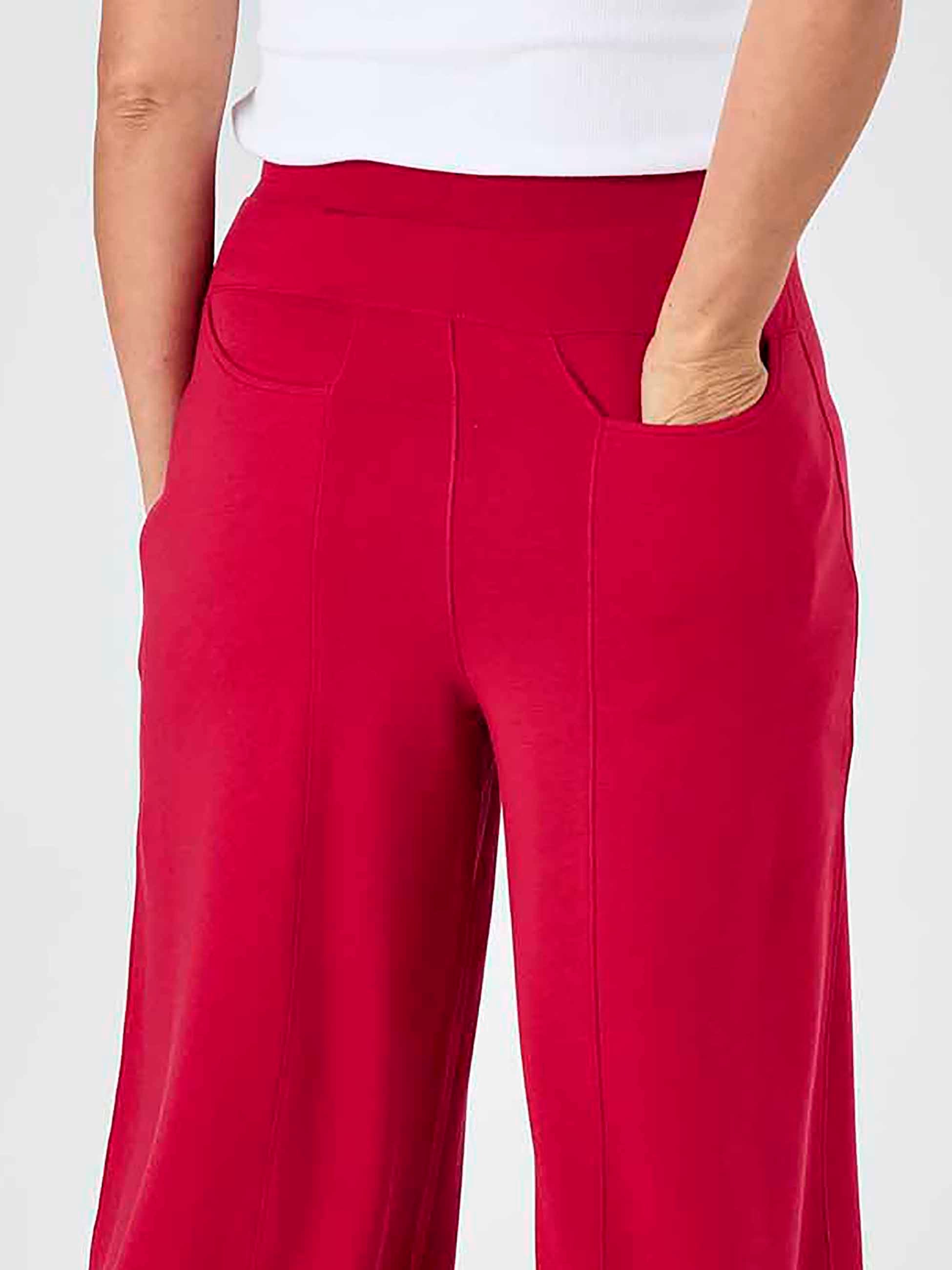 These pants are perfect for yoga amongst other things , this is a beautiful cherry red colour, washes well, I have these in so many colours, also wear on dog walks - they’re a great “get up, let’s go” pant - such a wonderful choice of colours , as always dharma bums delivers!