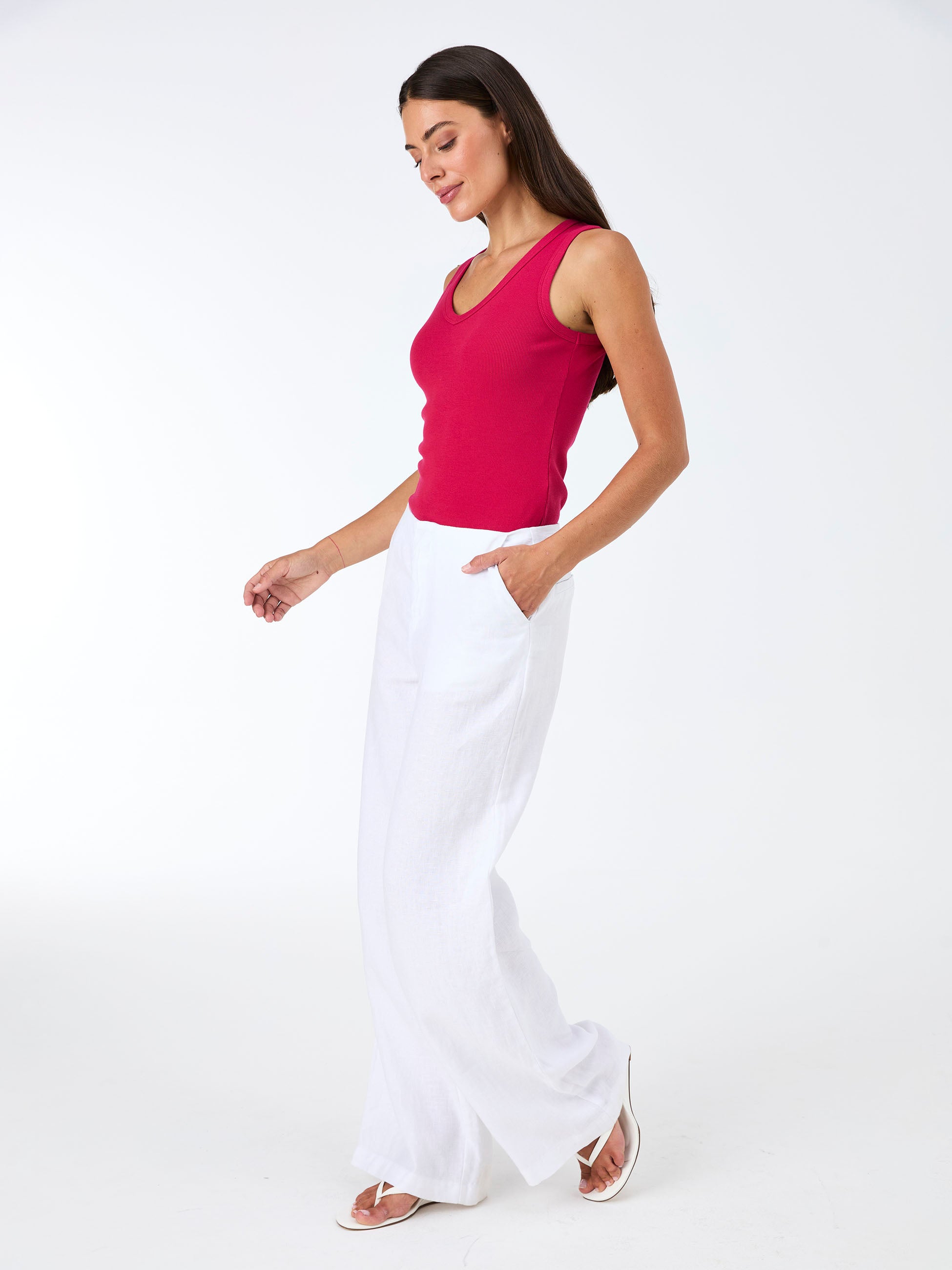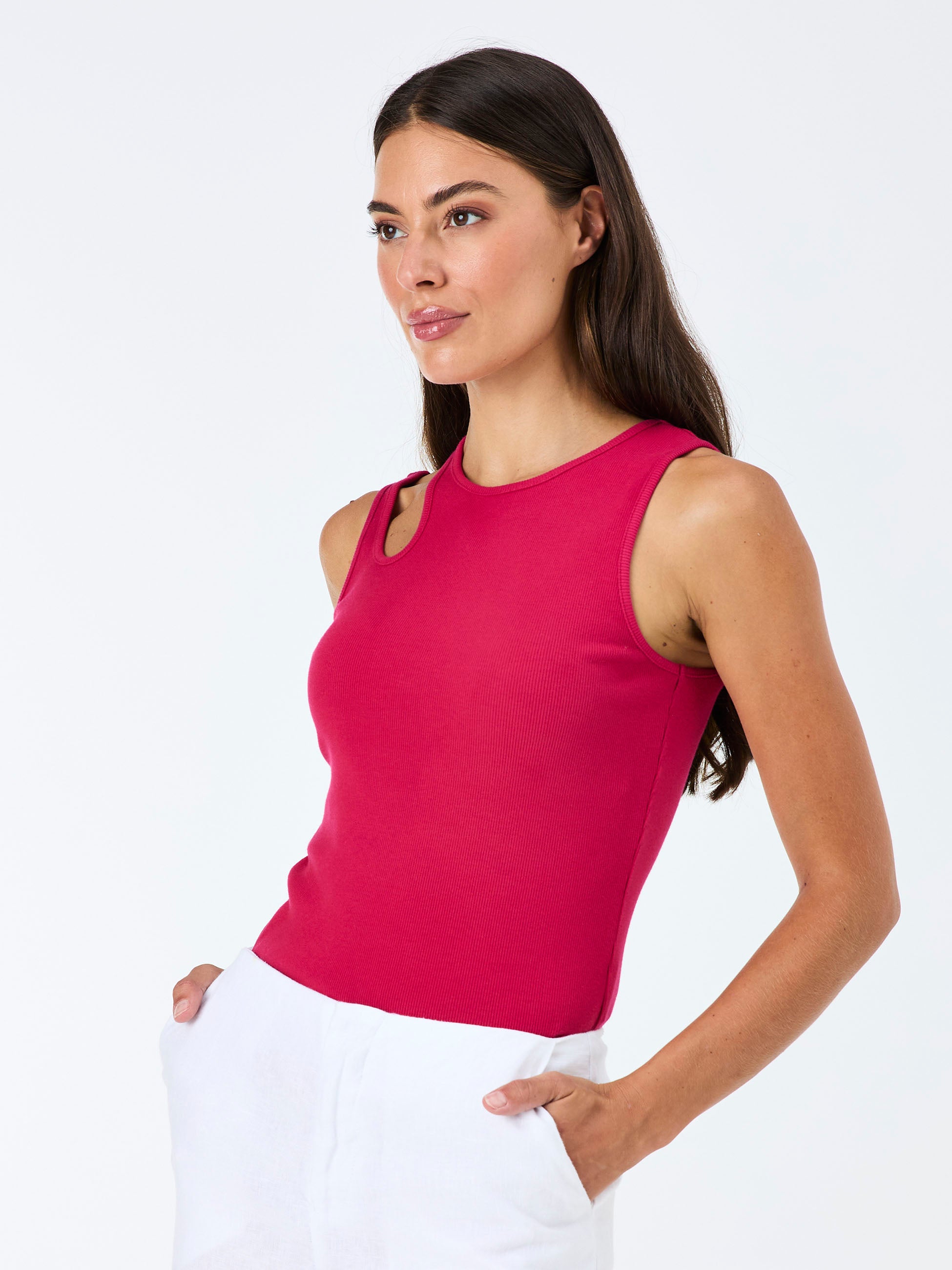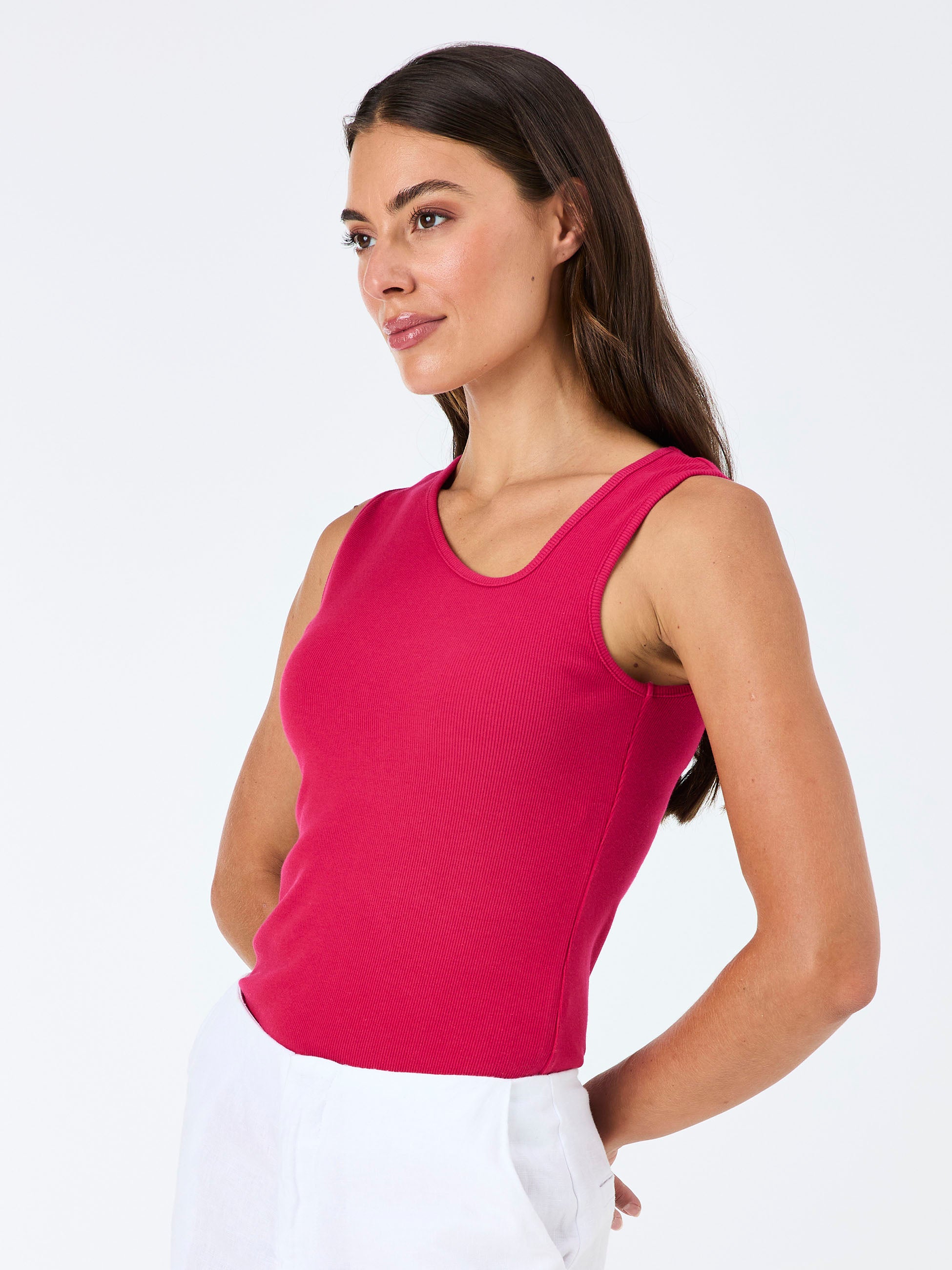 So excited about this singlet I have been looking for this neckline cut in a rib for a while now and found this. the cut the fabric and length of this singlet are just perfect love it so much I ordered a few colours !!