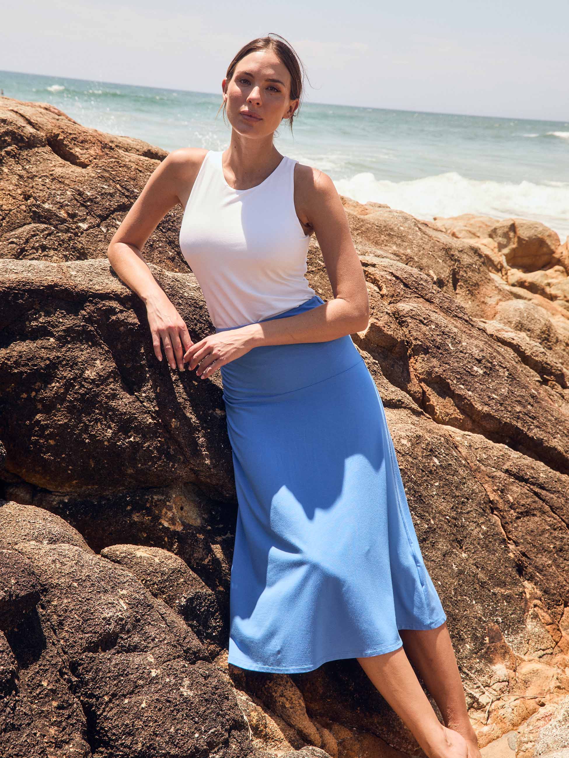 So excited about this singlet I have been looking for this neckline cut in a rib for a while now and found this. the cut the fabric and length of this singlet are just perfect love it so much I ordered a few colours !!