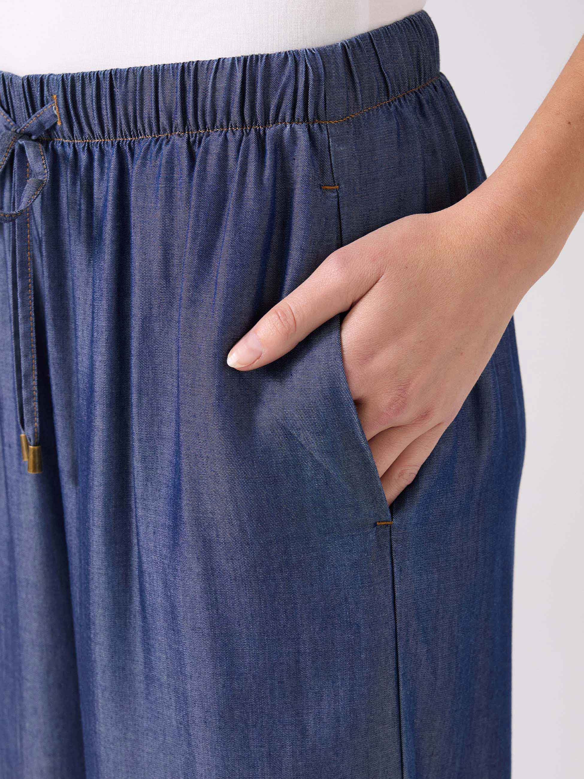 These pants are so comfortable! Easy to dress up or wear casually. The fabric is floaty and soft - perfect for warmer weather. I did have to take them up as they are very long - I'm average height.