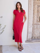 Easy to wear, easy to love. Crafted from beautifully soft, breathable Lenzing™ Modal, this maxi dress is designed for all-day comfort and timeless style. It features a thoughtfully designed placket neckline, a flattering sleeve length, and a fluid drape that flatters every body .Complete with functional side pockets and a relaxed, throw-on-and-go silhouette, it’s your perfect AM-to-PM piece—versatile, effortless, and endlessly wearable.