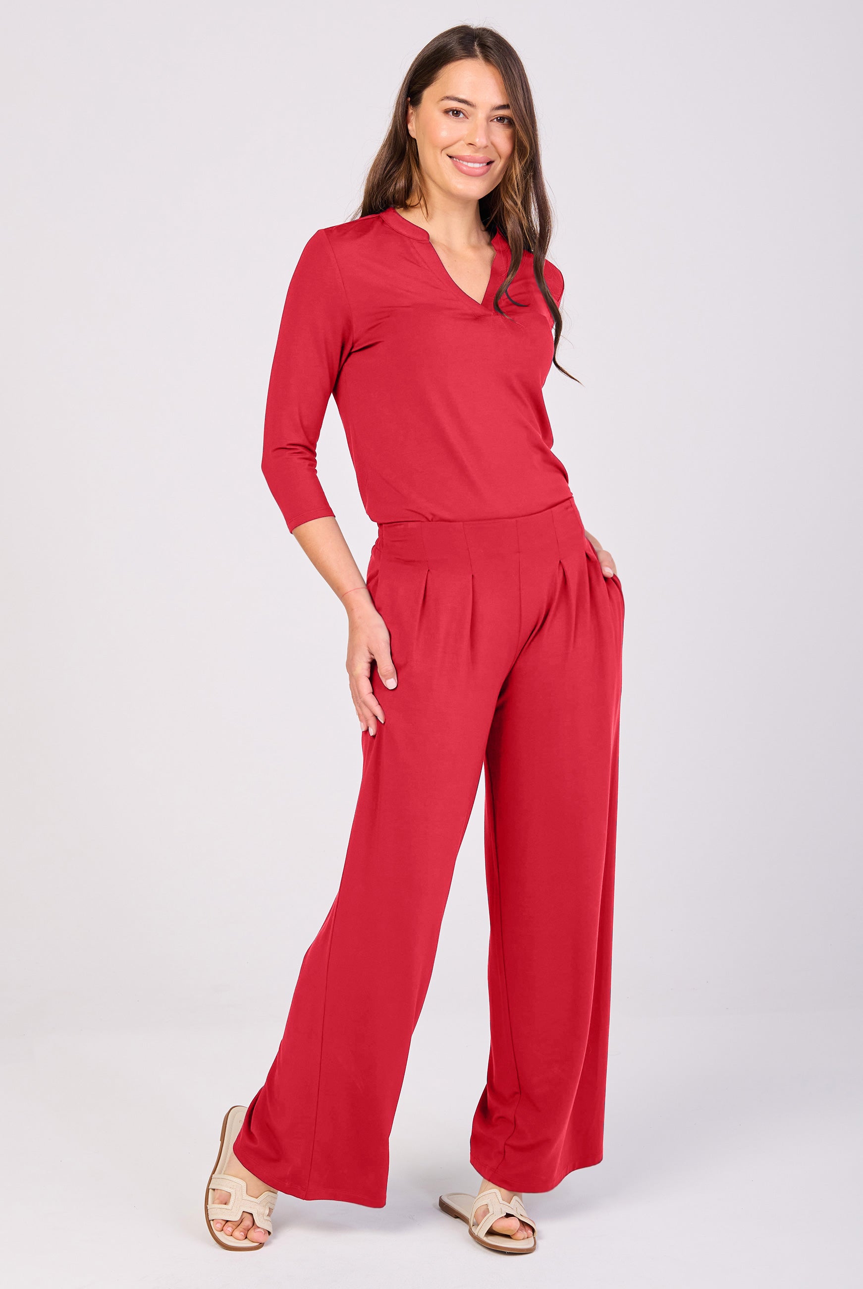 I love the fit and feel of this dress. I have two in black and now the Cherry is perfect for my Christmas dress this year.