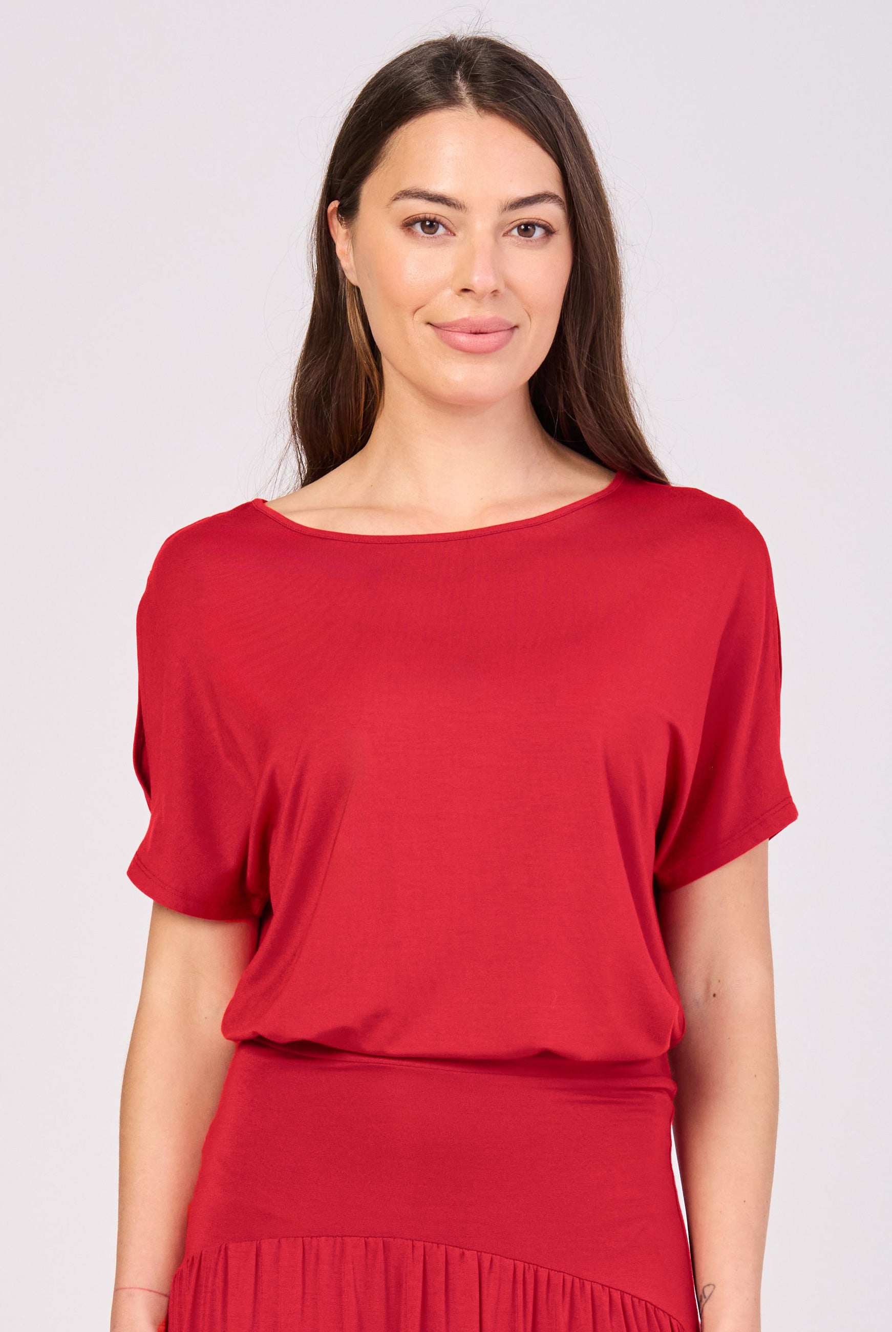 • Buttery-soft, slightly heavier fabric that drapes and doesn’t cling