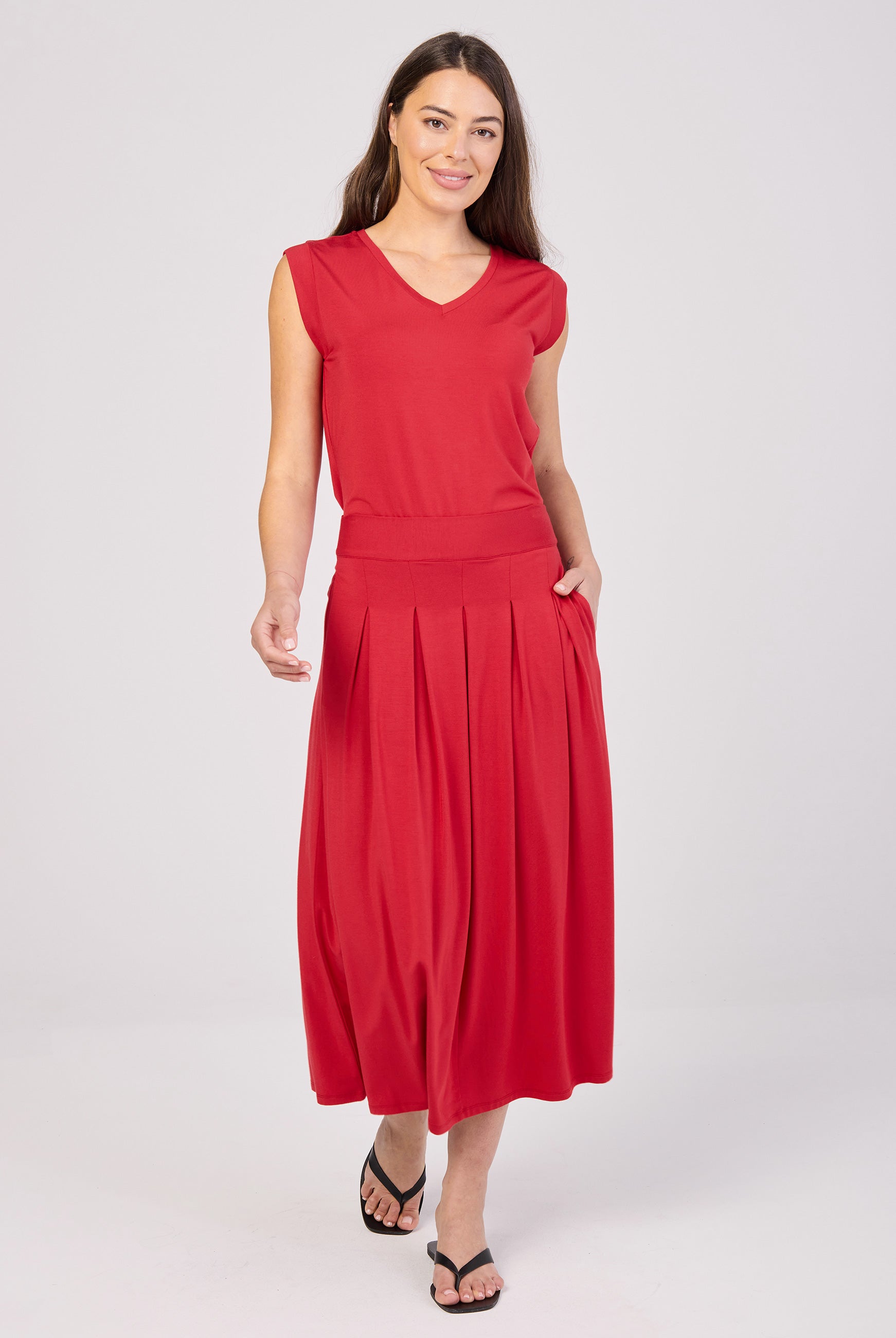 The essential maxi that goes from plane to dinner. Buttery-soft drape, deep pockets, and dress-up-or-down ease for every season.