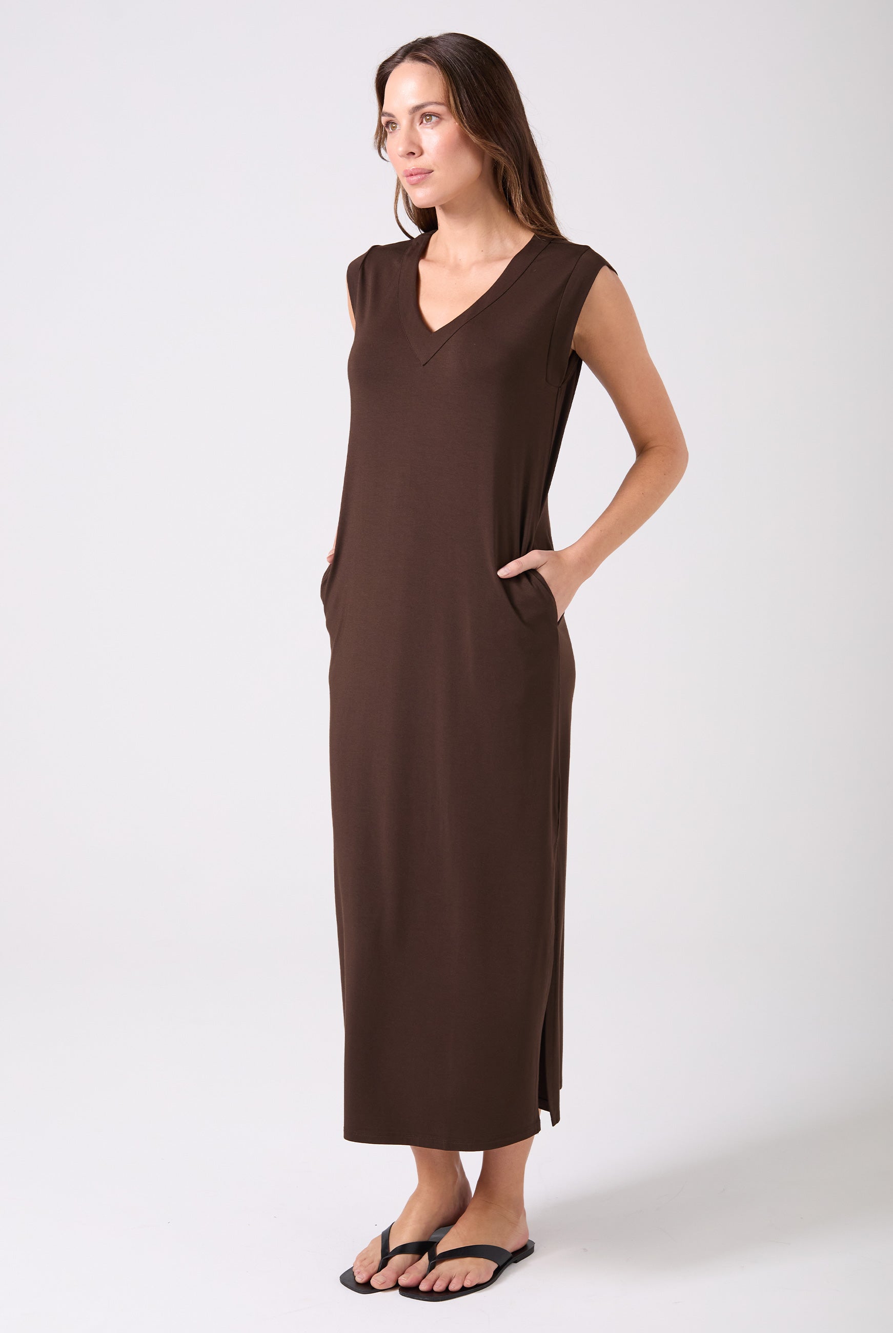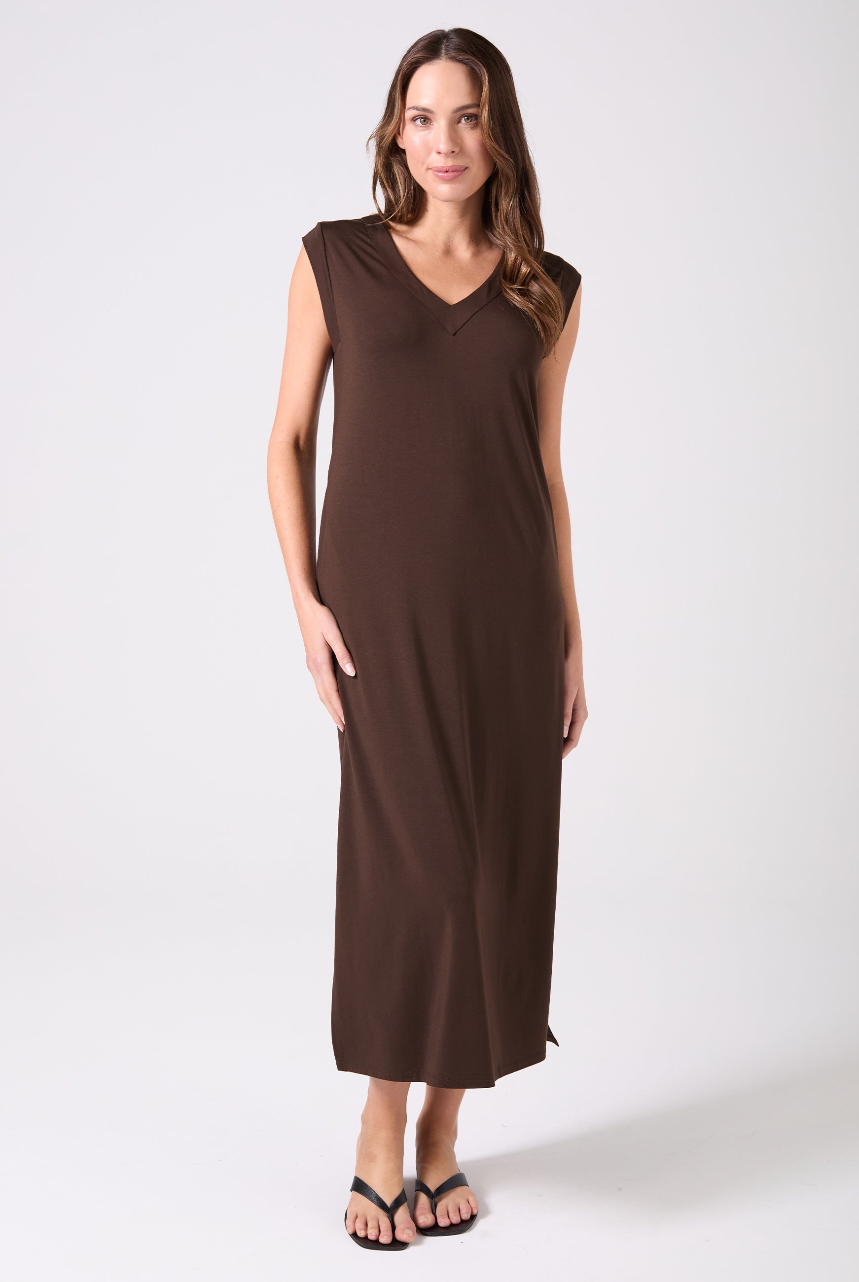 Effortlessly elegant and endlessly wearable, the Serene Flow Maxi Dress is crafted from ultra-soft, breathable fabric for all-day comfort. It features a flattering round neck line, cap sleeves, side pockets, and flowy side splits, offering both style and ease.A versatile wardrobe staple, this maxi drapes beautifully over all body shapes, making it perfect for getaways, weekend lounging, or elevated evening looks