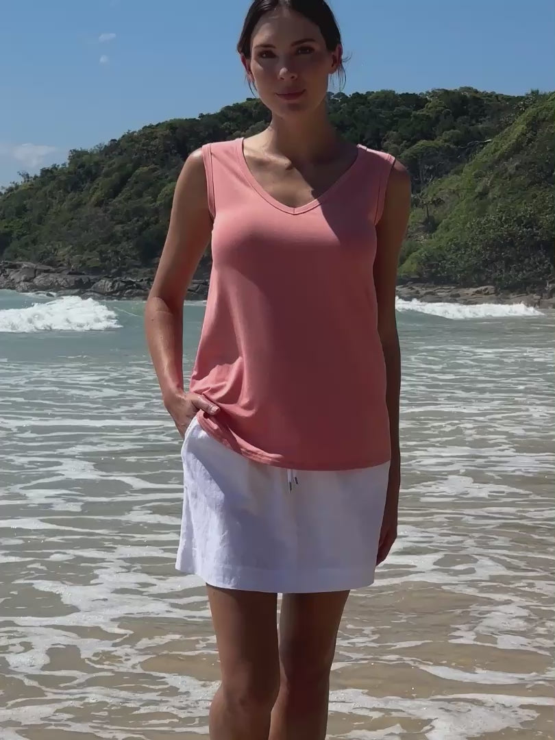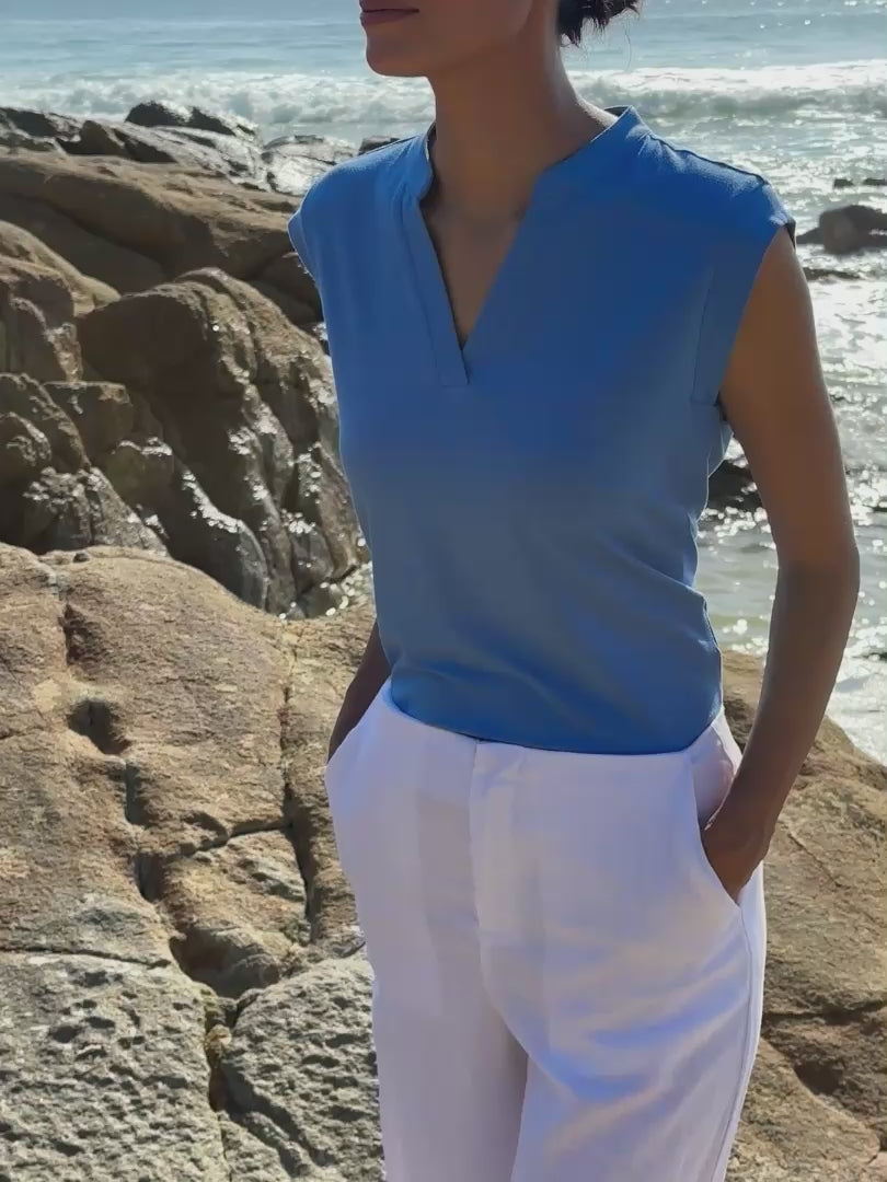 I wasn't quite sure what 'french terry' material was but it looks very similar to my Dharma Bums Nomad Relax pants, but a bit thicker. The longer short sleeves are perfect to hide upper arms and the top sits very well and stays in place (ie doesn't fall down!). Love the stylish look when teamed with the Relax pants. I got the XS (I'm a size 8-10).