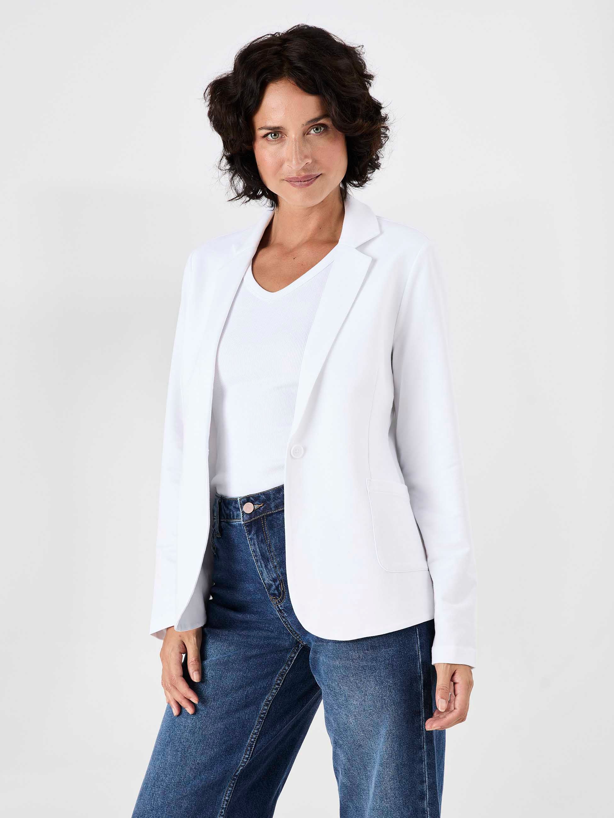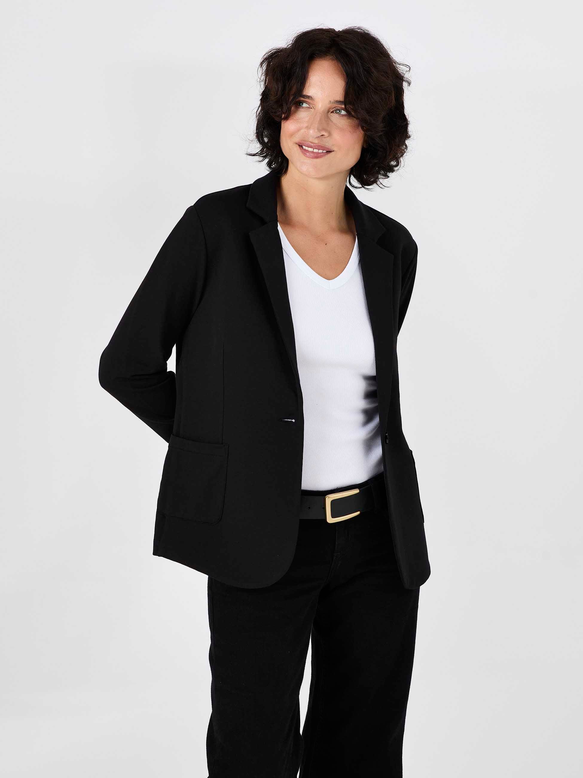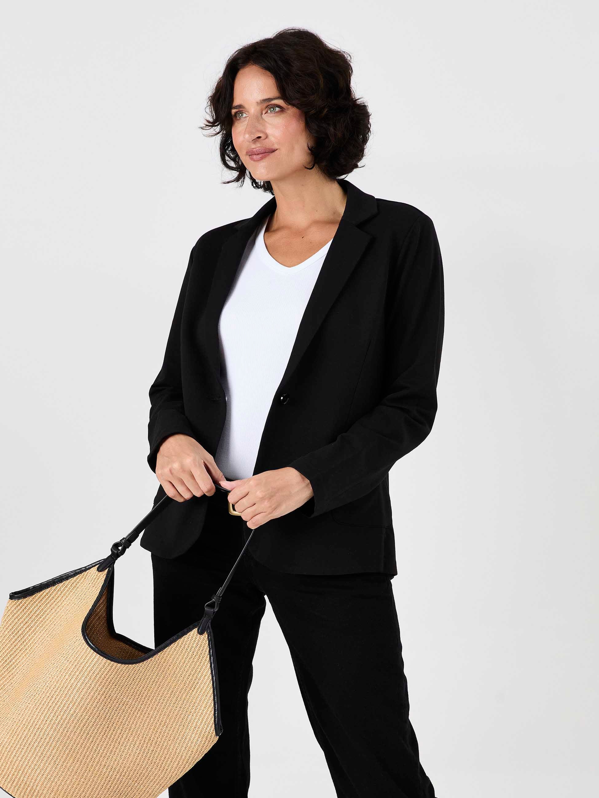 Absolutely love this jacket! So comfortable yet it is classy. Fabric is a nice weight so it holds shape nicely. Great for travel. My only regret is I didn’t get it in black before it sold out in my size