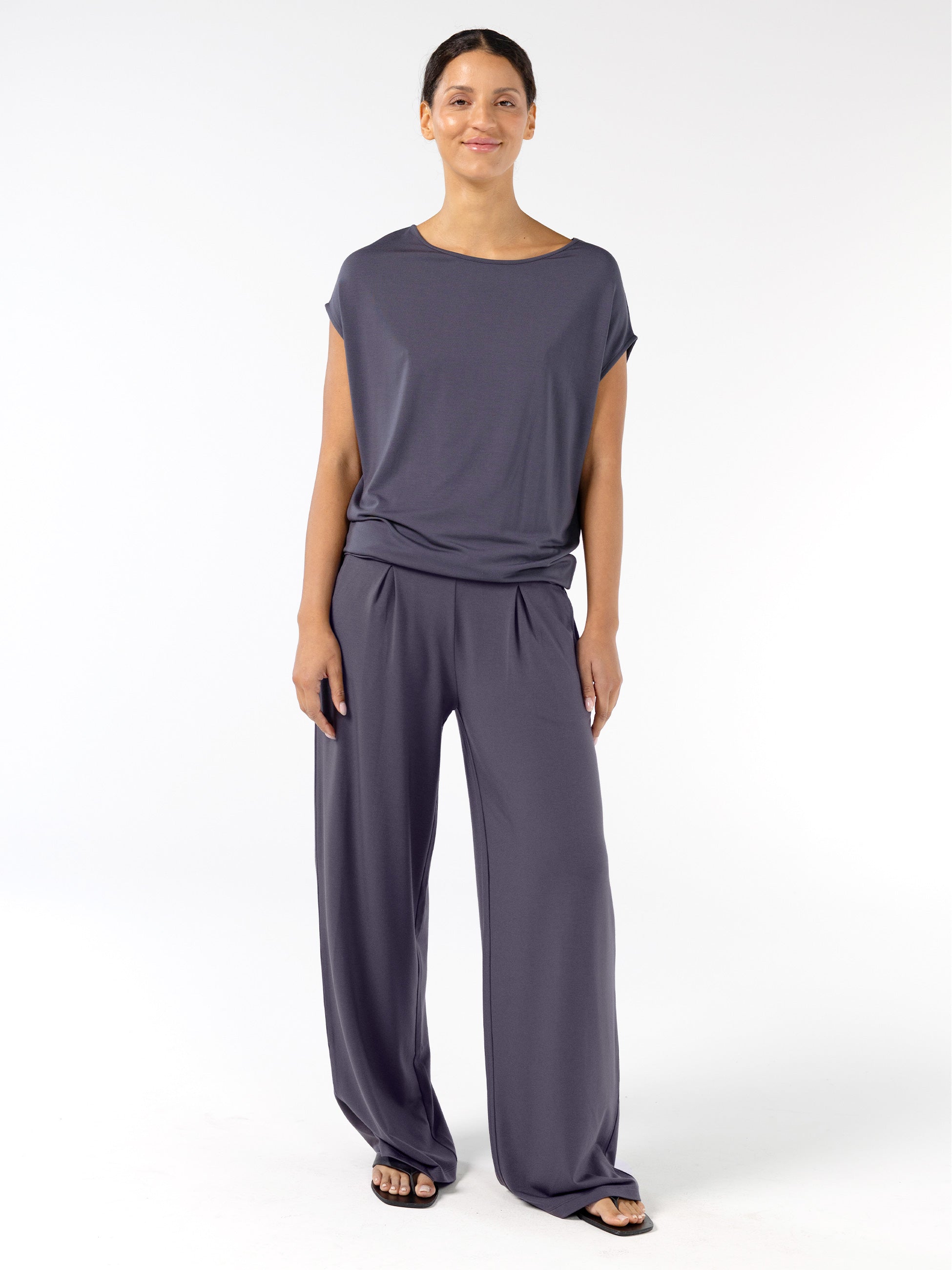 Buttery-soft, drapey wide-leg pants you’ll reach for from work to wheels up. Dressy polish meets plane-ready comfort.