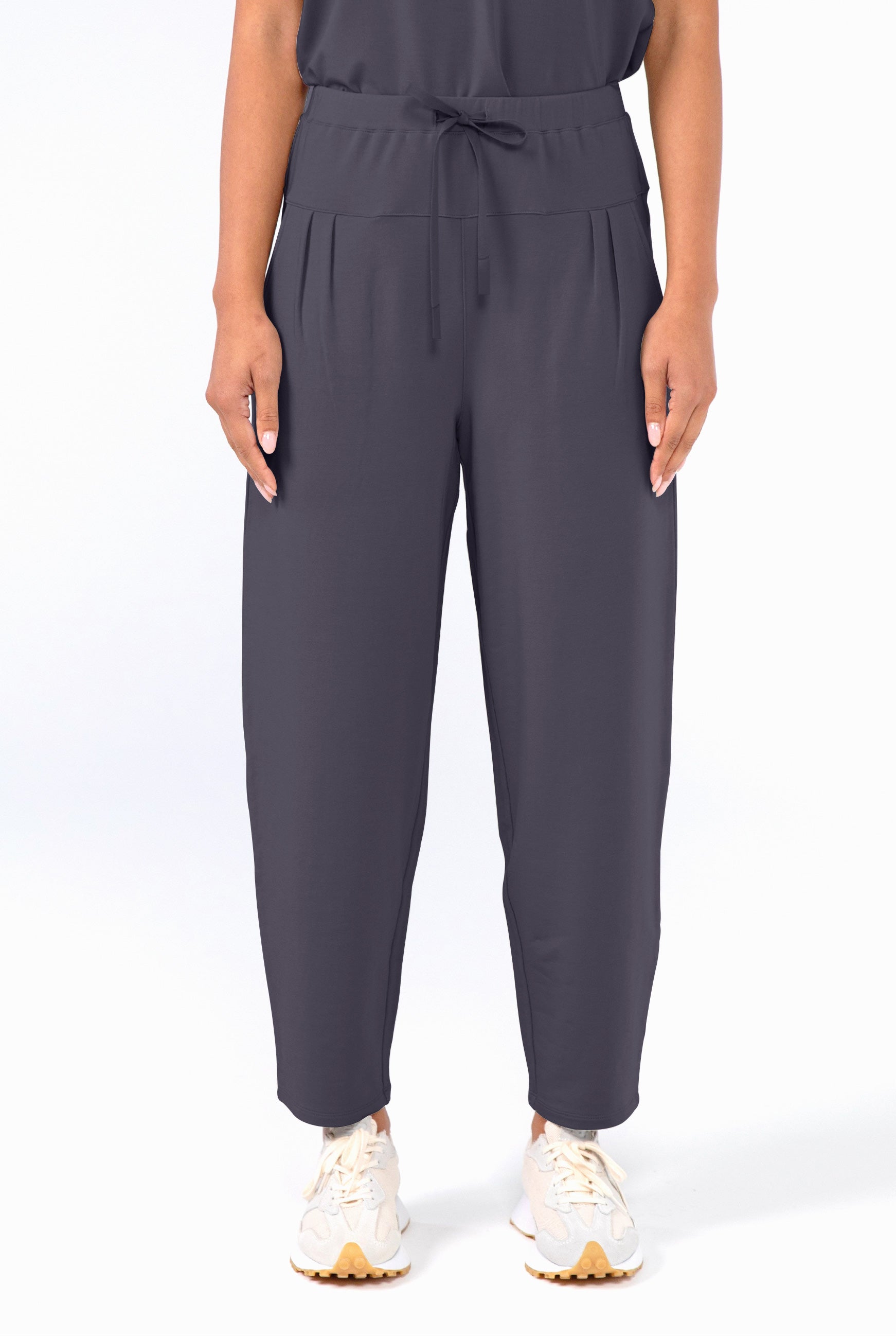 • Flattering tapered waist/banded hem that sits on the hips and doesn't cling