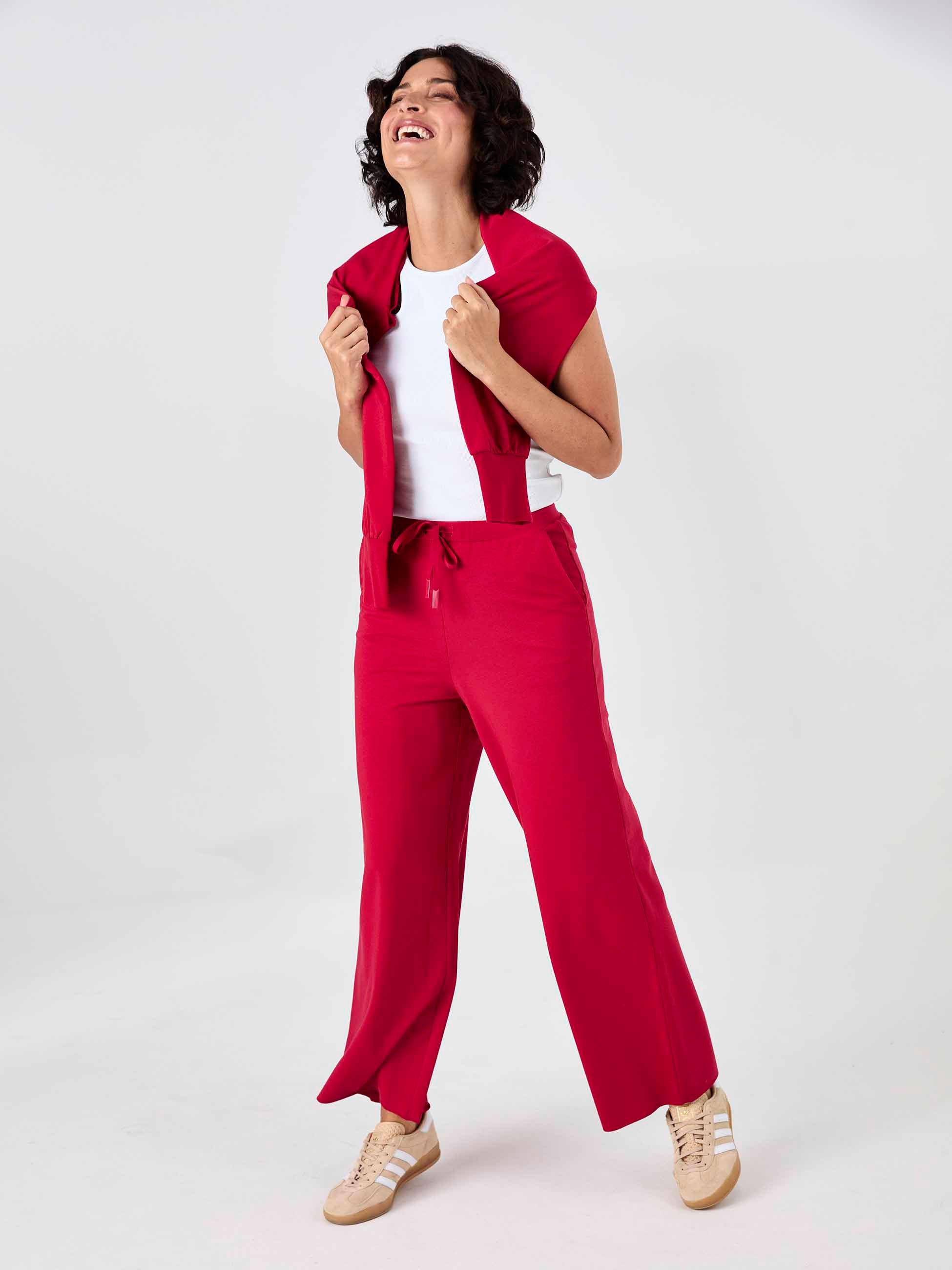 Classic Wide Leg Sweat Pants - Cherry
