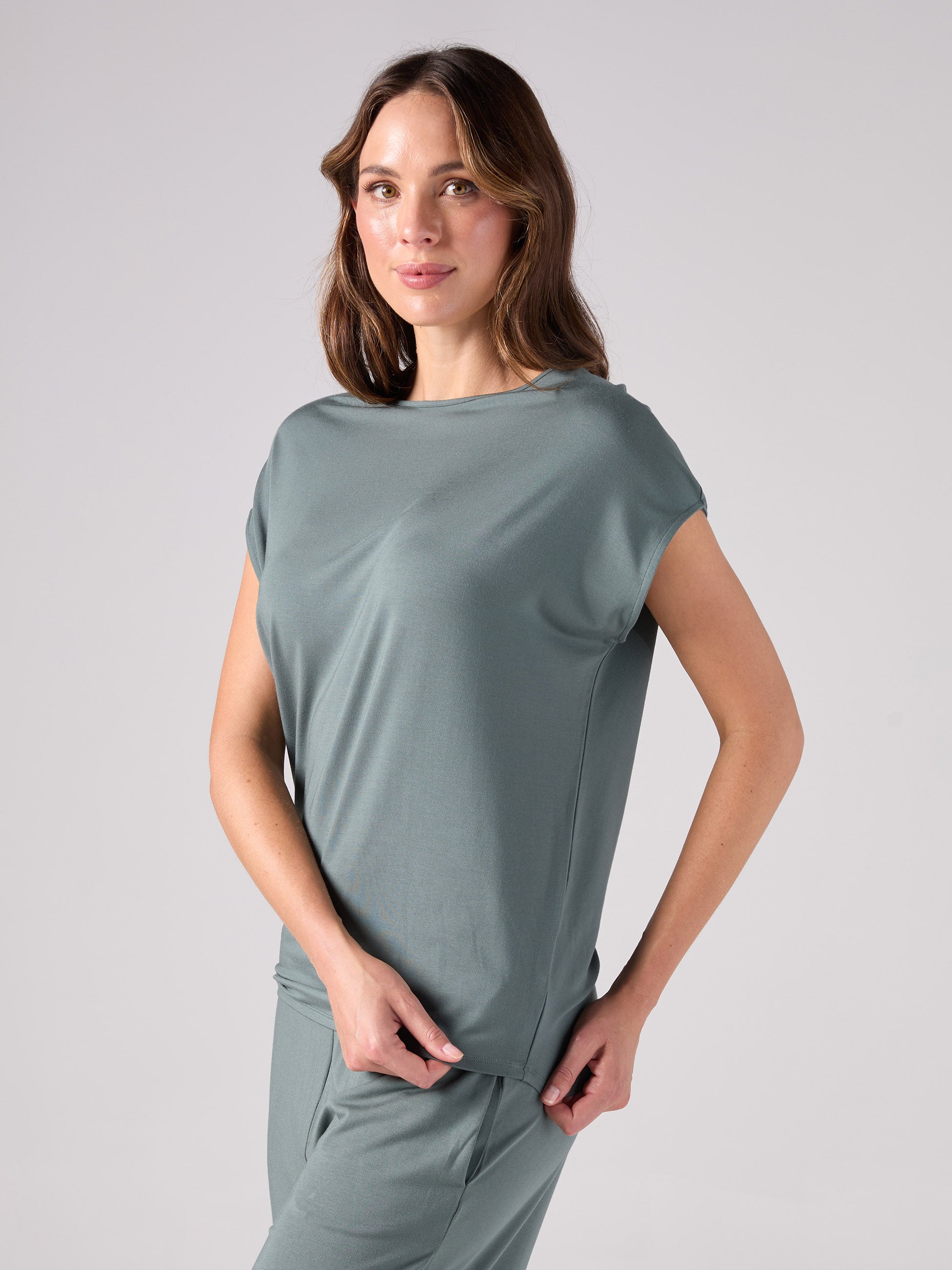 Obsessed with. Modal fabric & can’t stop buying it! This Tee is a very flattering cut, luxe fabric & easy to wear.