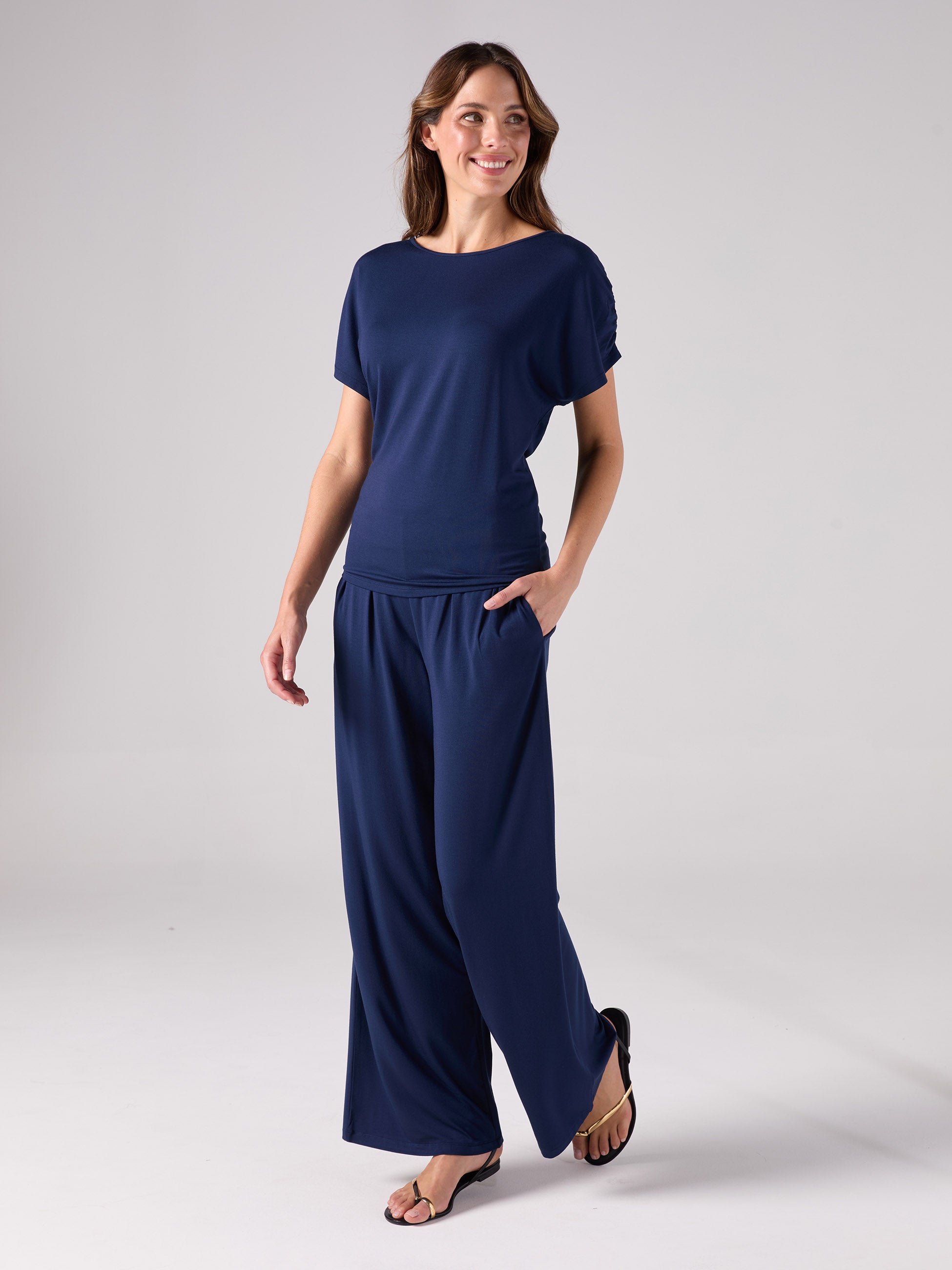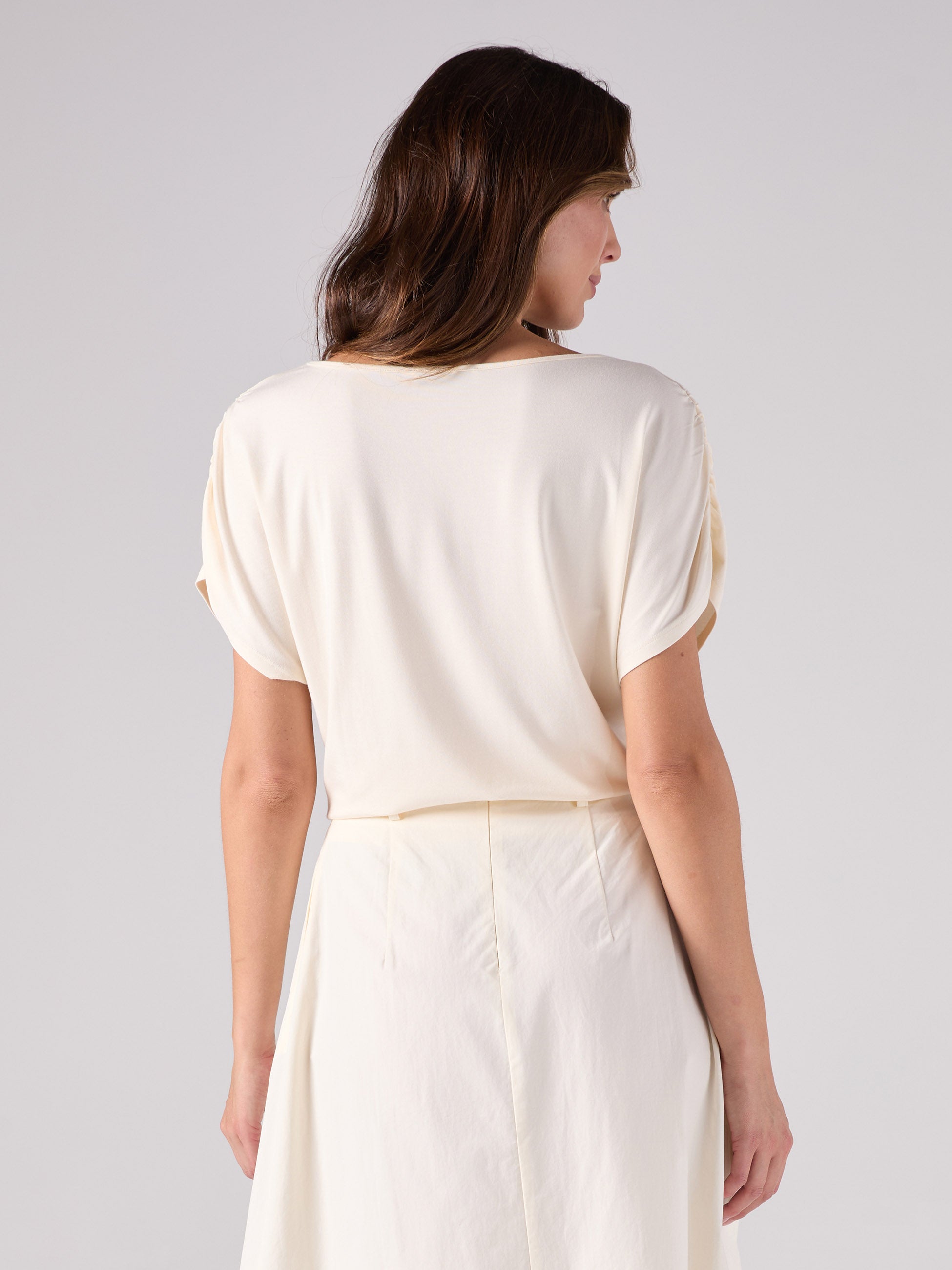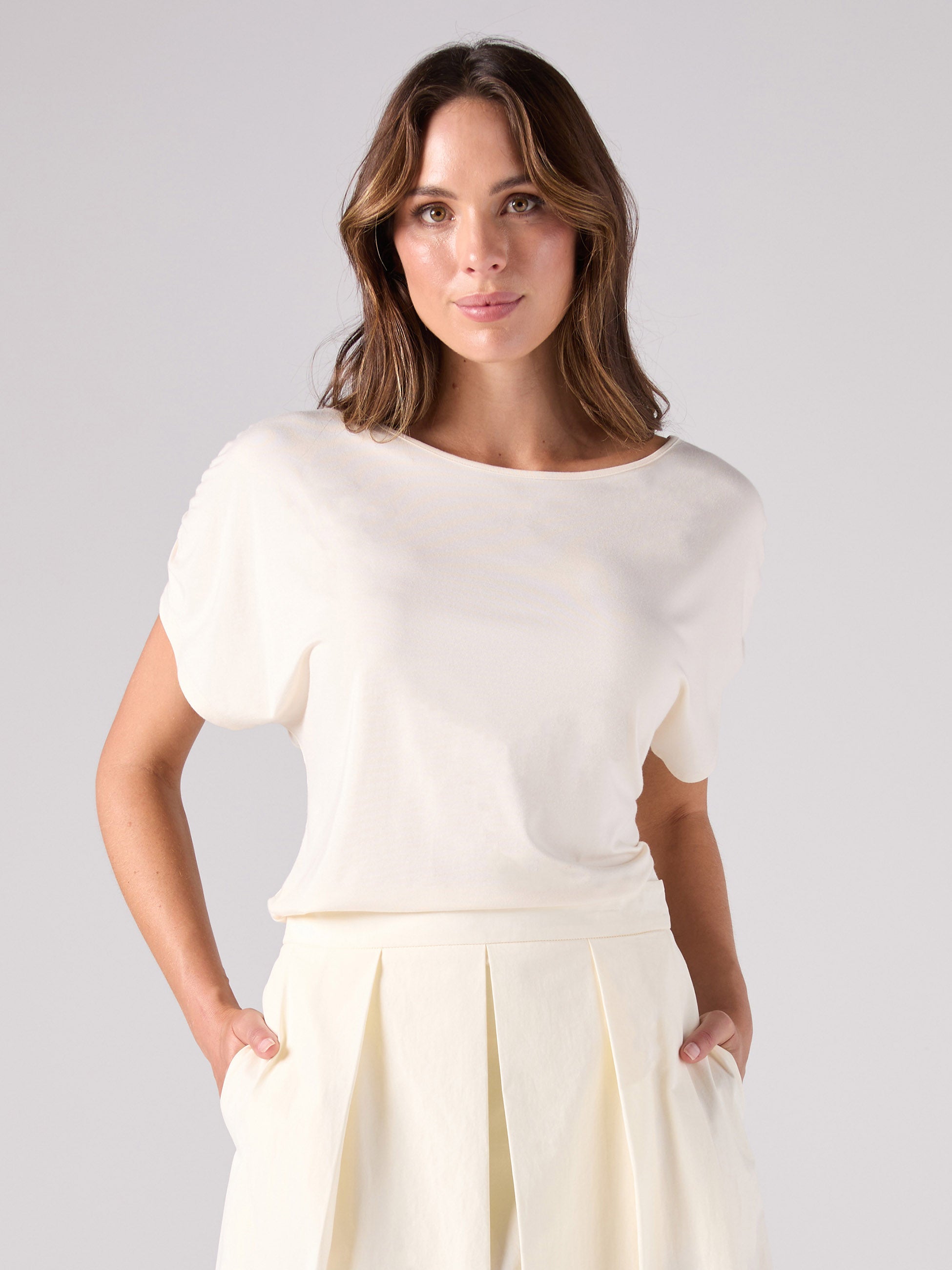 I lived this top as soon as I saw it and when it arrived, I tried it on straight away. It is light, soft and flows. Perfect for work and on to dinner after. I've now ordered it in two other colours!