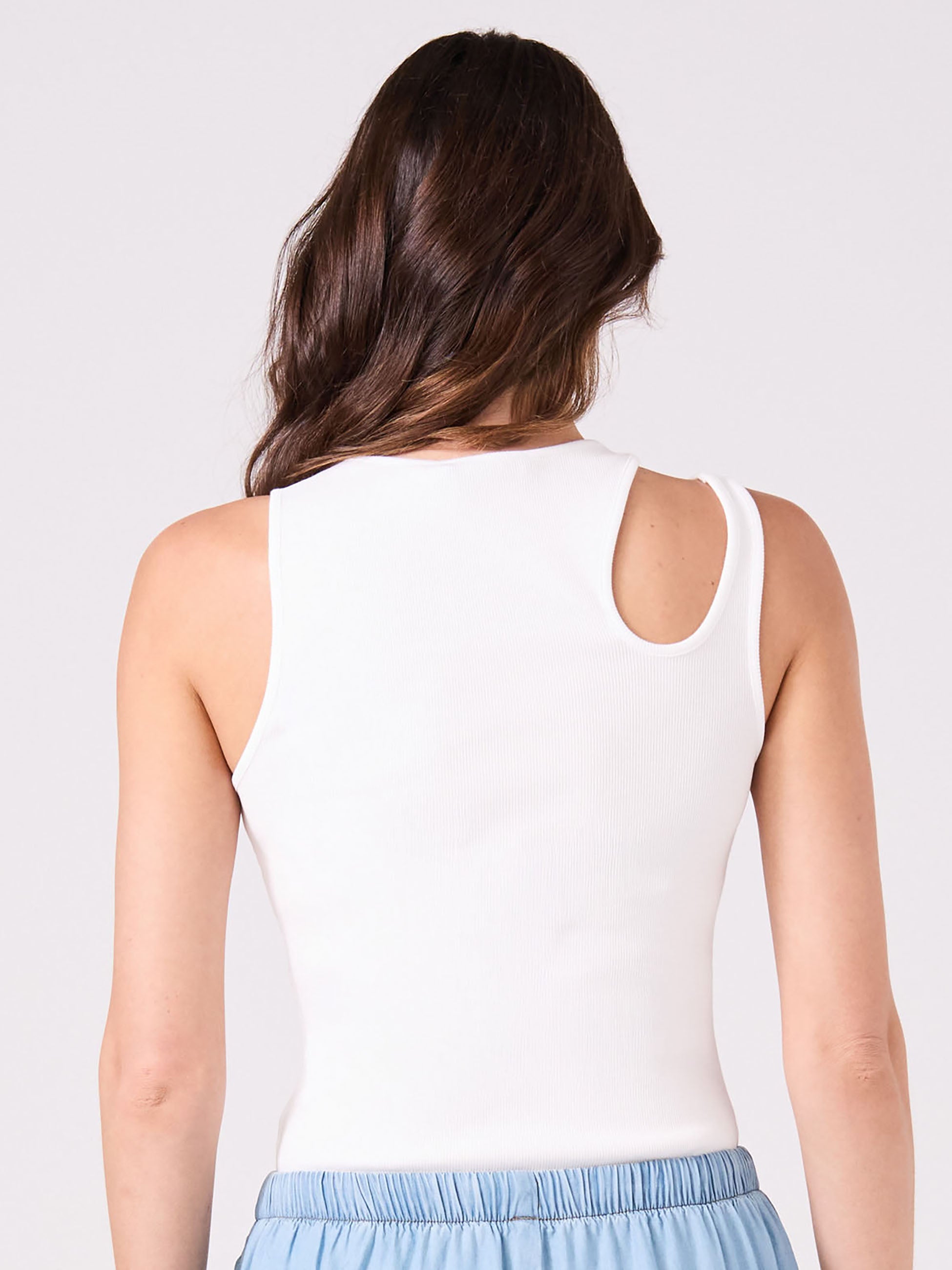 Cut Out Rib Tank - White