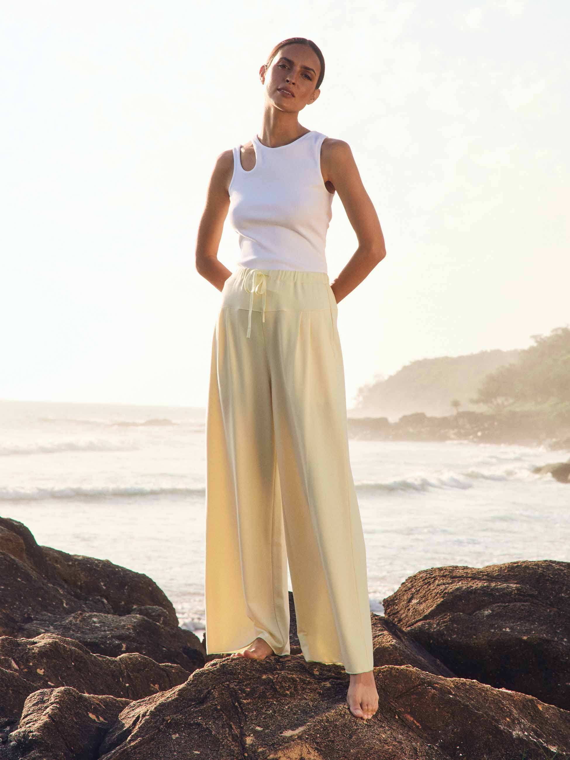 An elevated everyday essential, the Cut Out Rib Tank is crafted from soft, organic, ribbed cotton for a naturally breathable, comfortable fit. The subtle cut-out detail adds a modern touch, while the easy, flattering length allows for versatile styling—tucked in or worn loose. Designed to complement your shape and transition seamlessly from day to night, this tank is perfect worn on its own or layered through the seasons. Front length: 56 cm