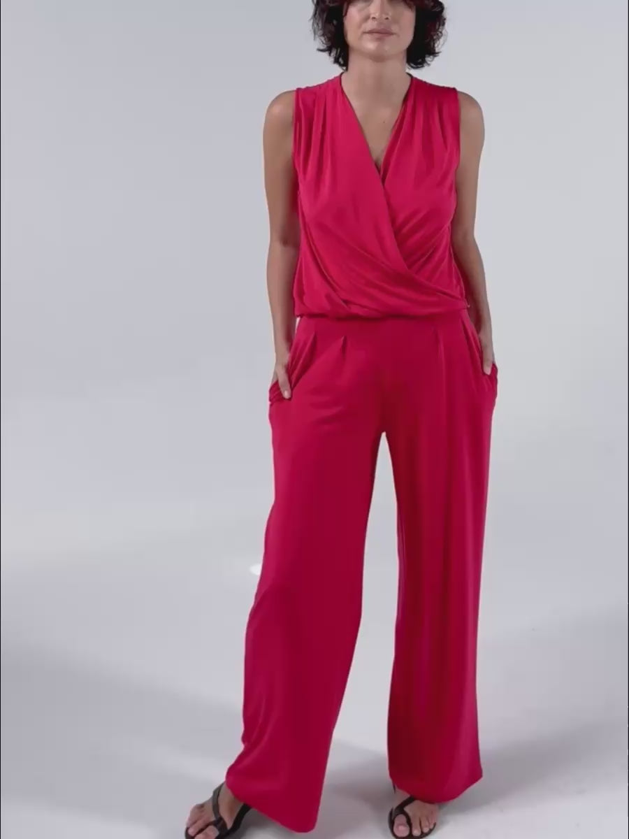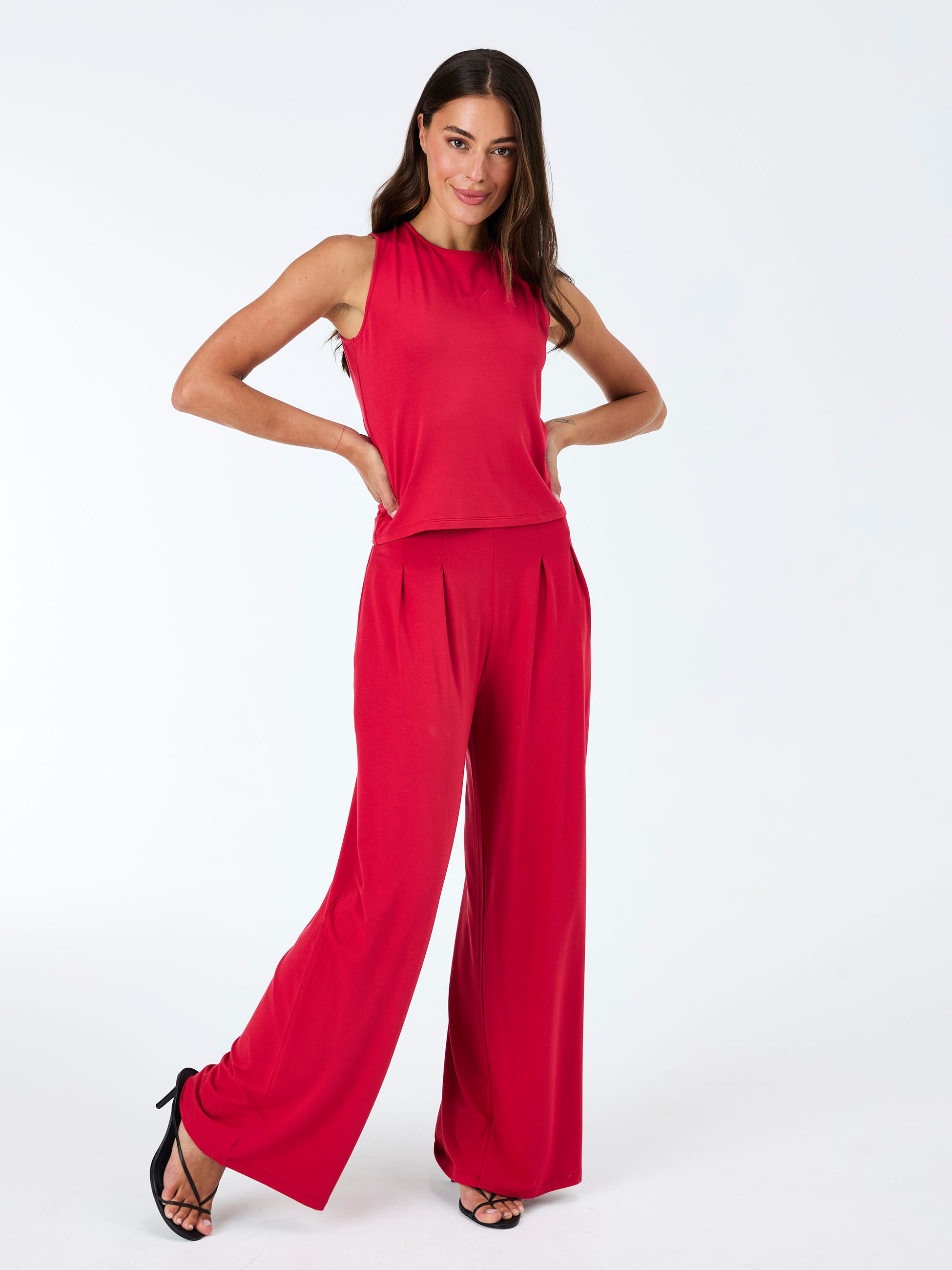 Emery Wide Leg Pants - Cherry Red