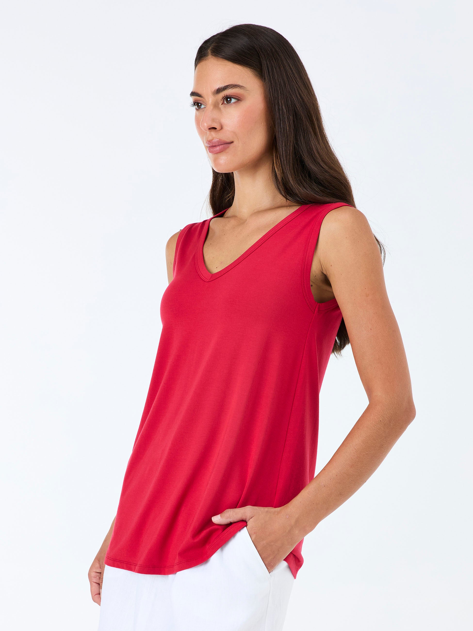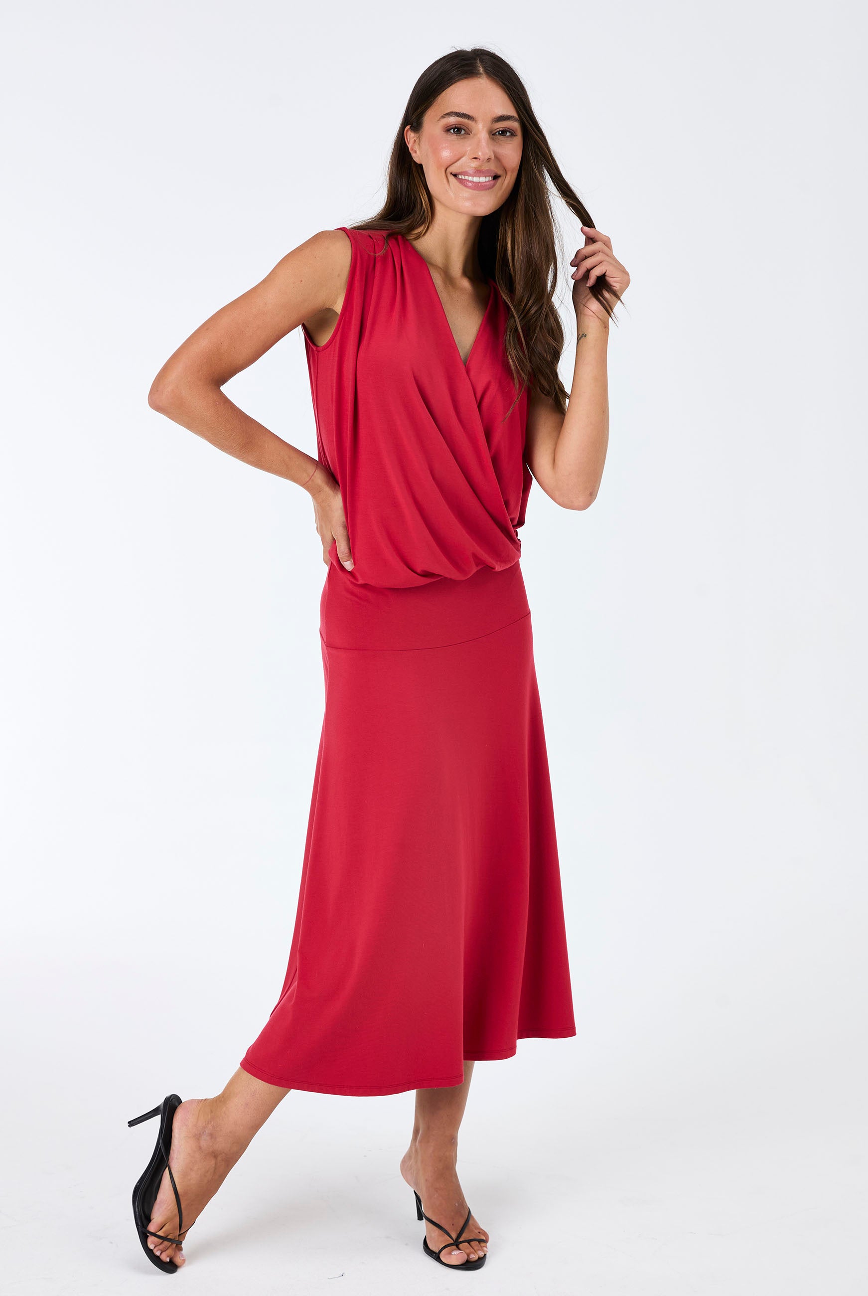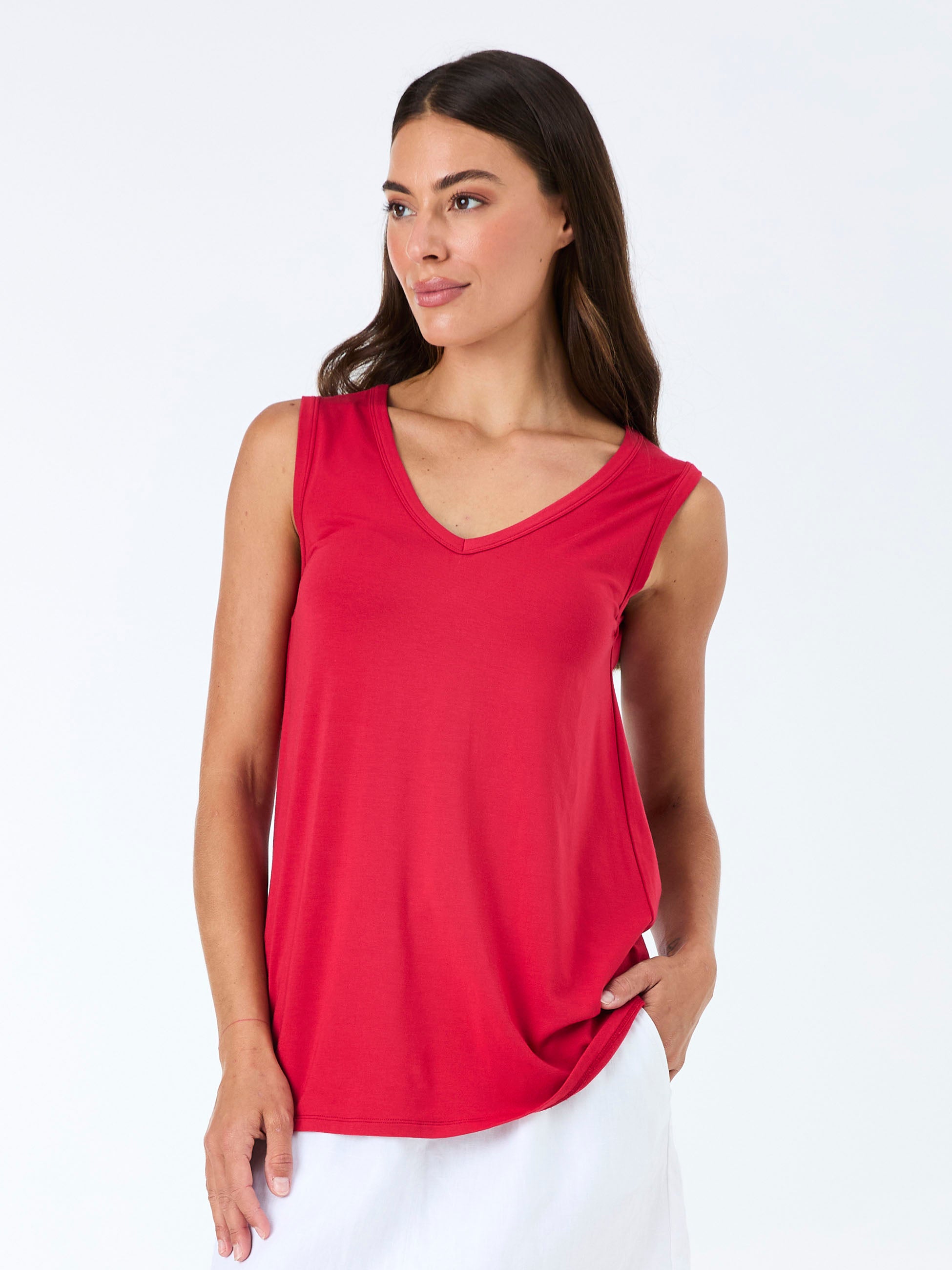 V Neck Swing Top - Cherry