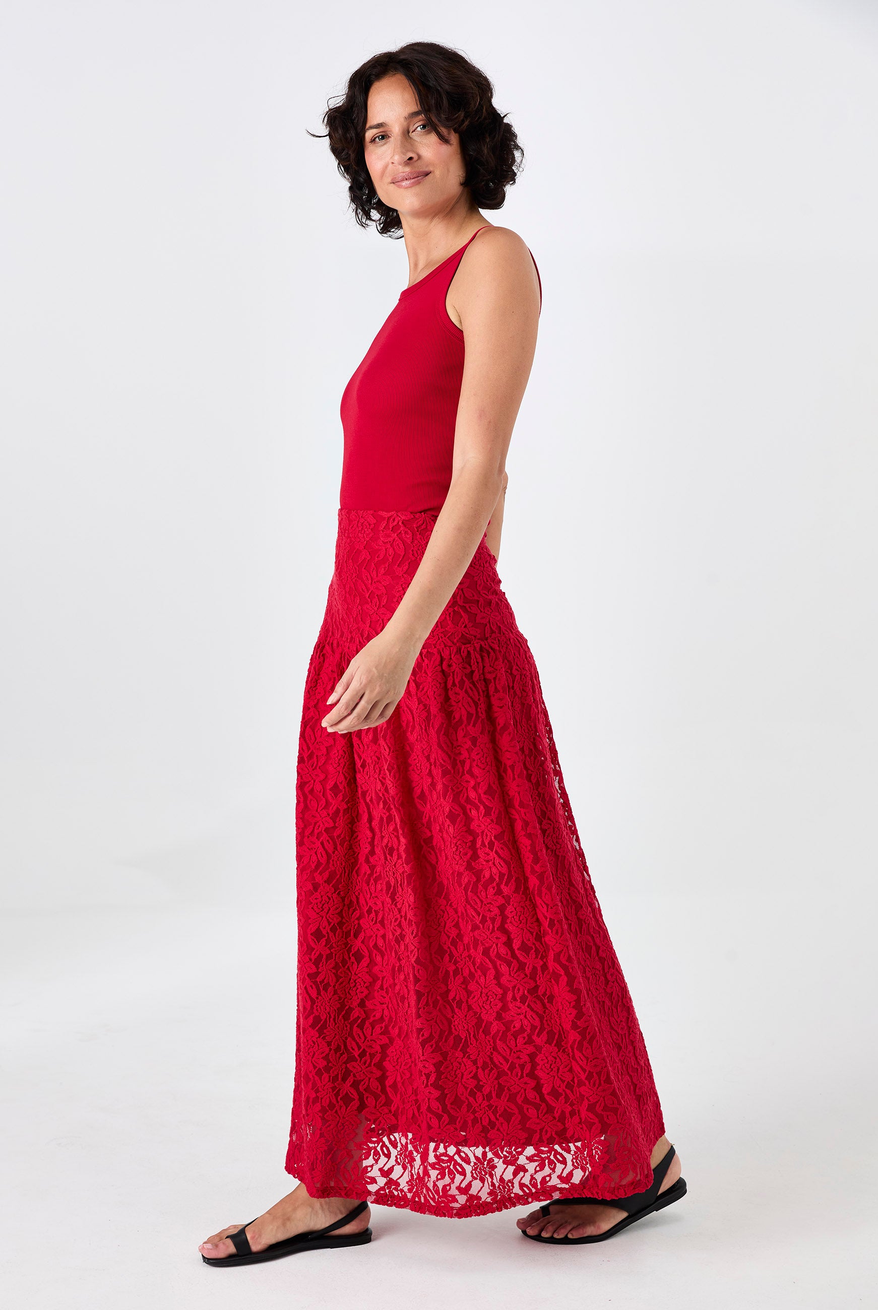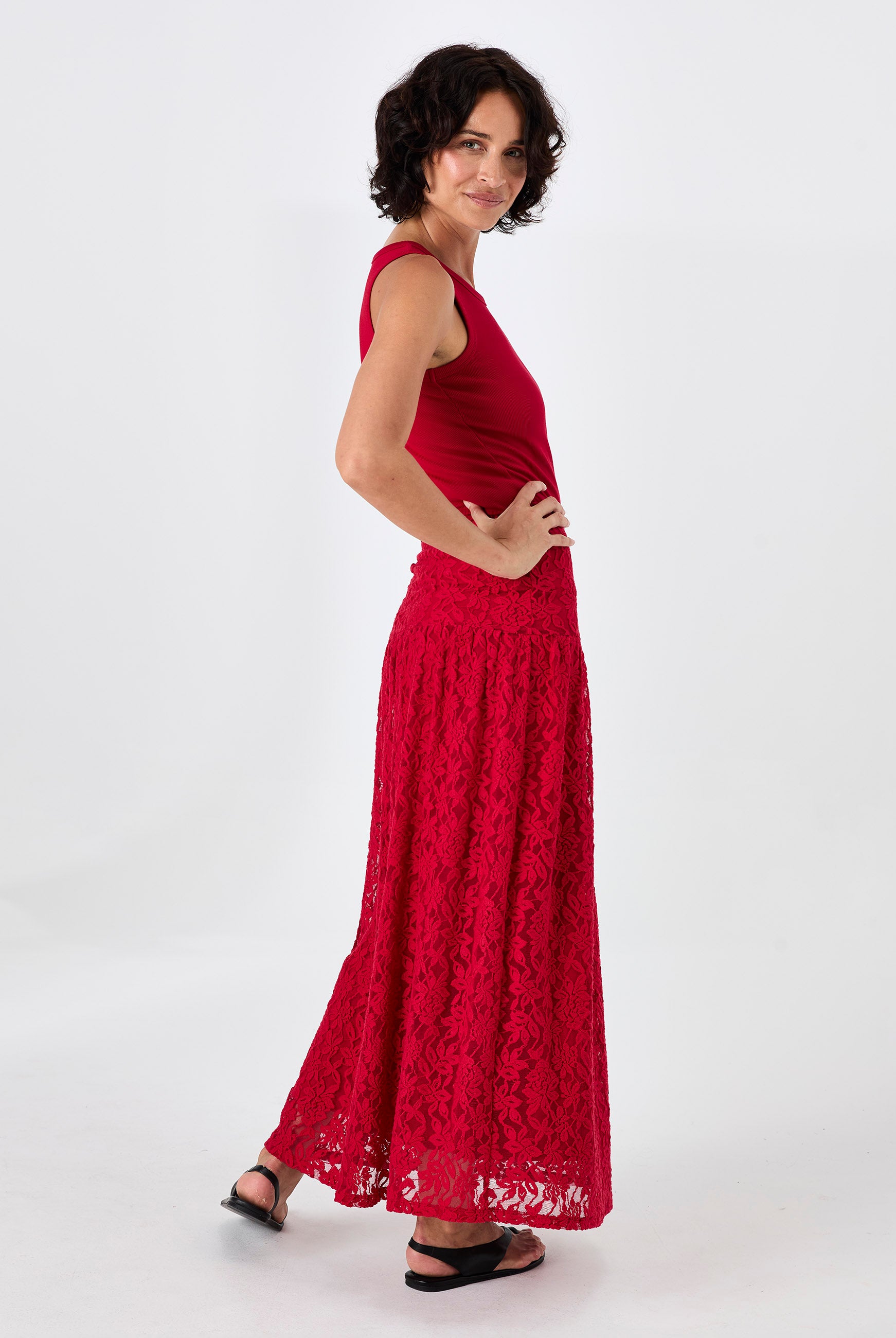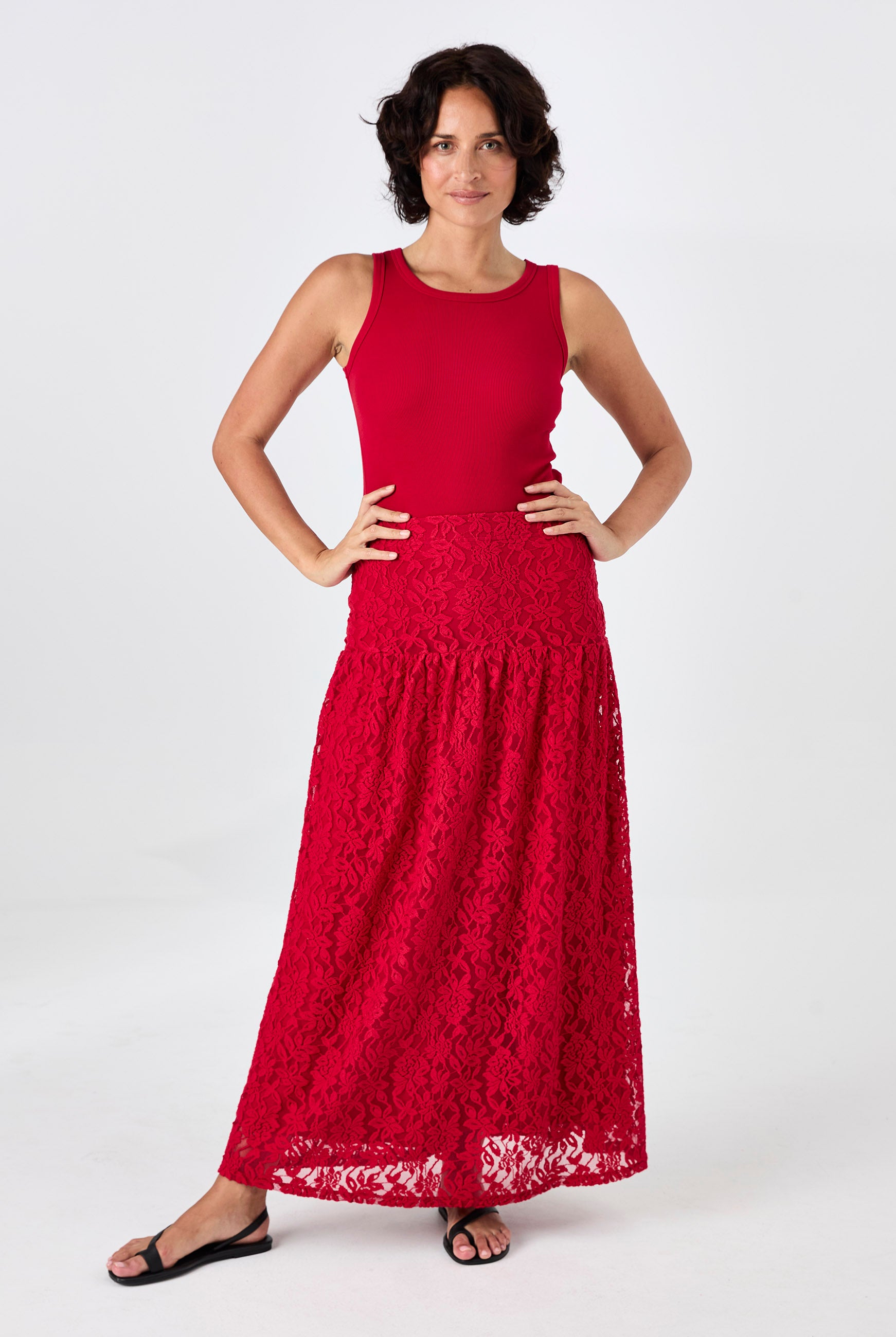 V Neck Swing Top - Cherry