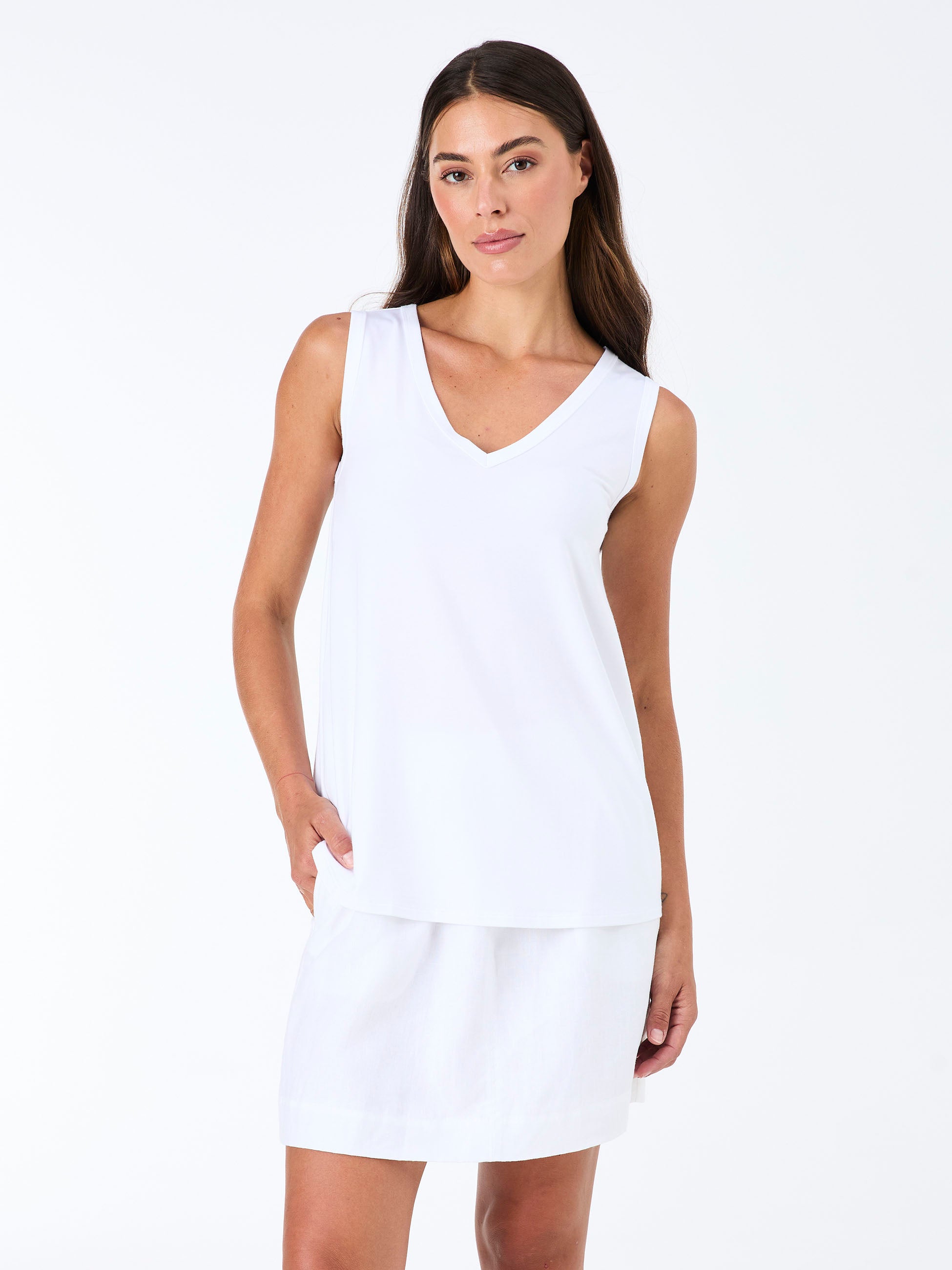 V Neck Swing Top - White