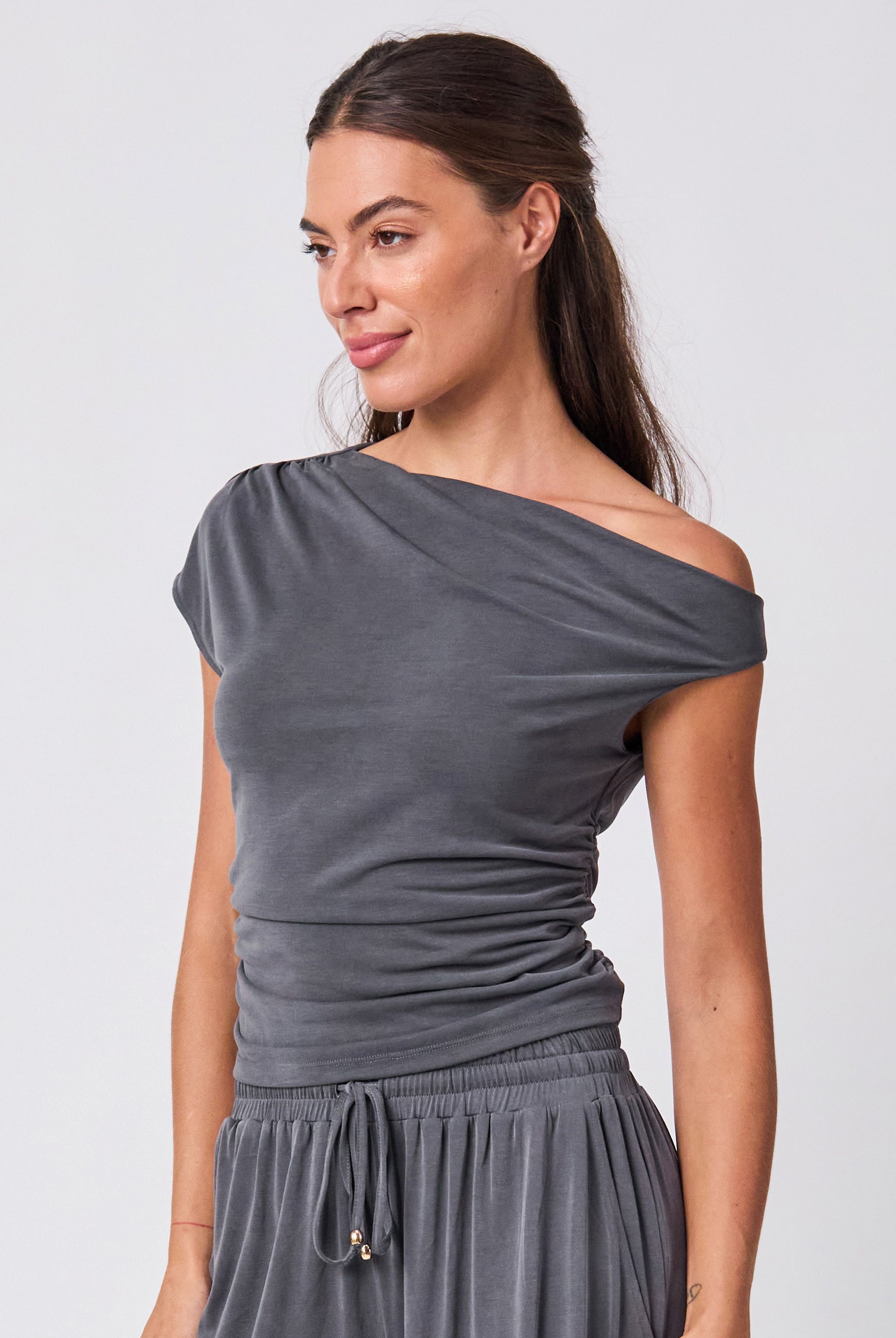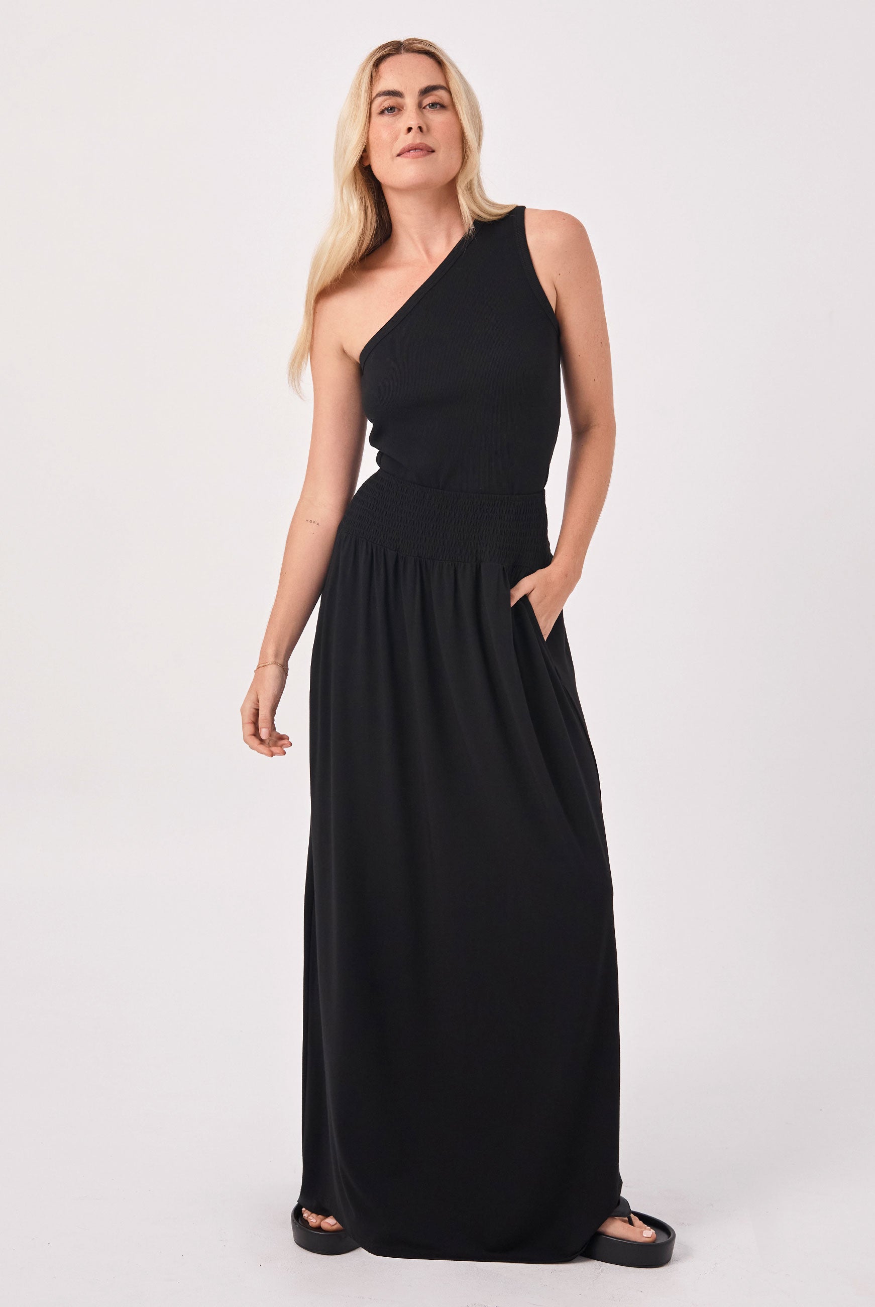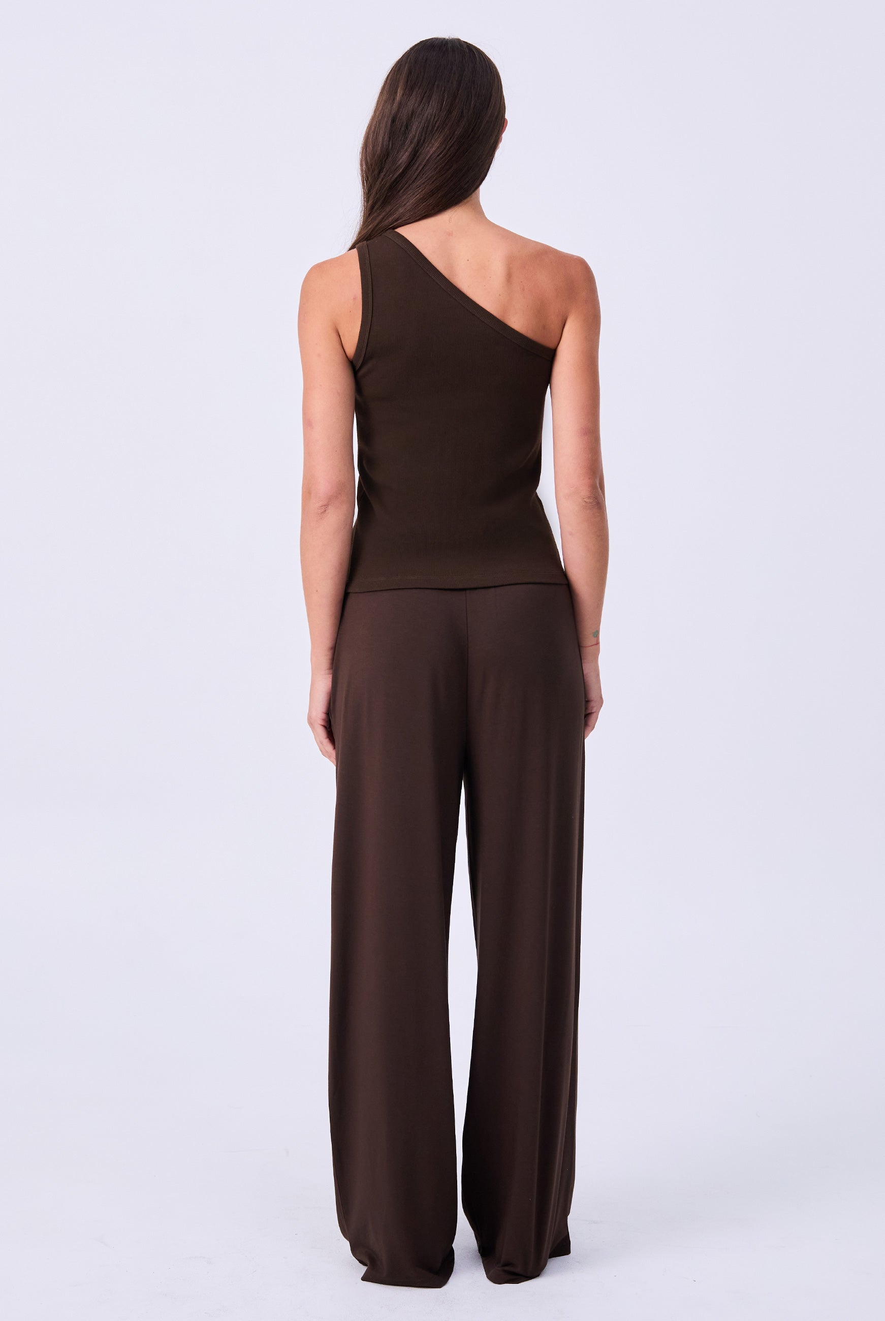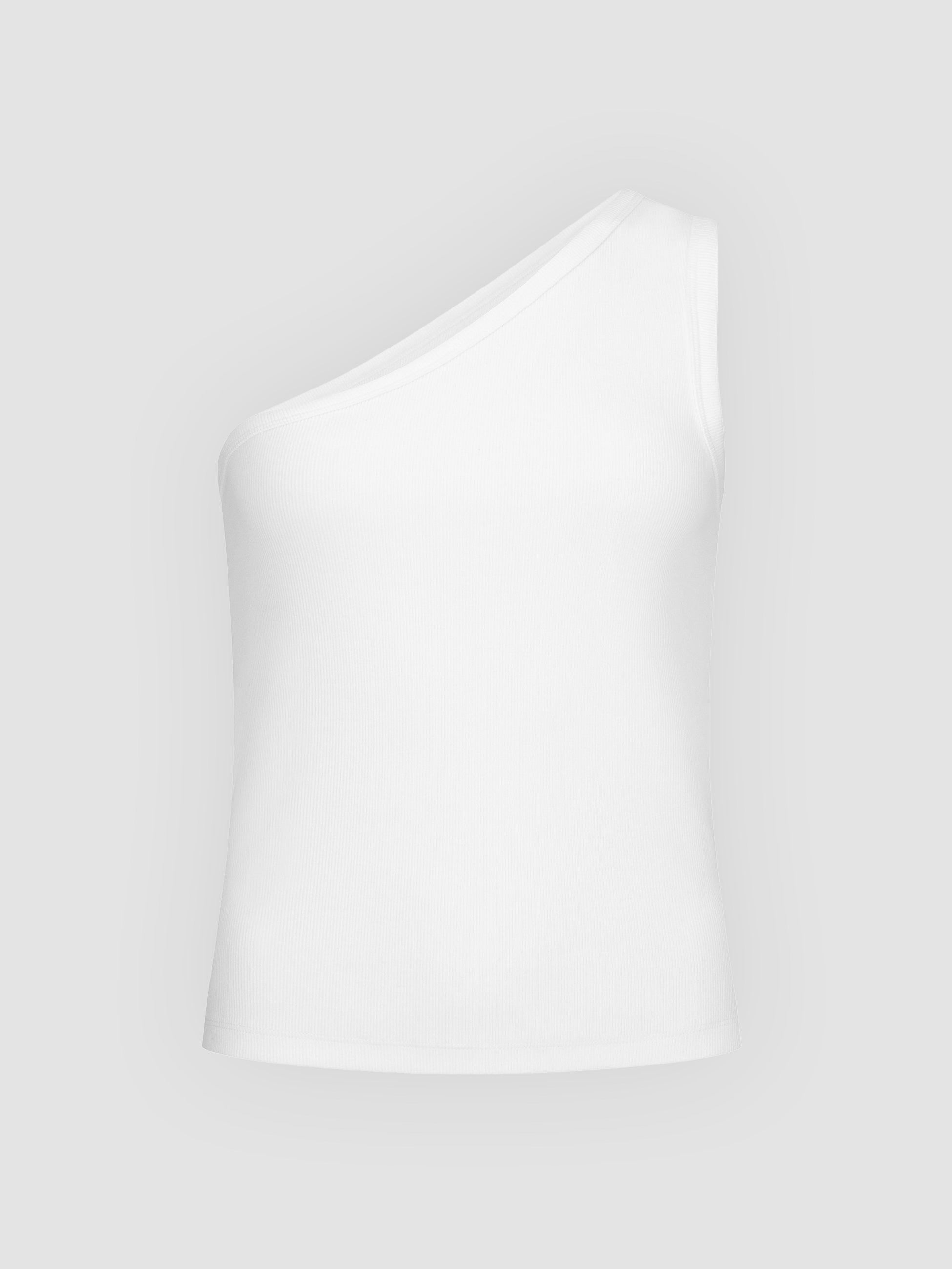 A timeless wardrobe is essential. One Shoulder Rib Tank is made from organic cotton. Designed with a flattering one shoulder, and a subtle ribbed texture. It has the perfect level of stretch. The minimalist silhouette means it looks good however you wear it.