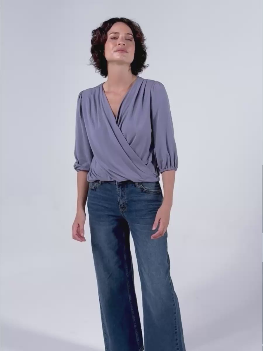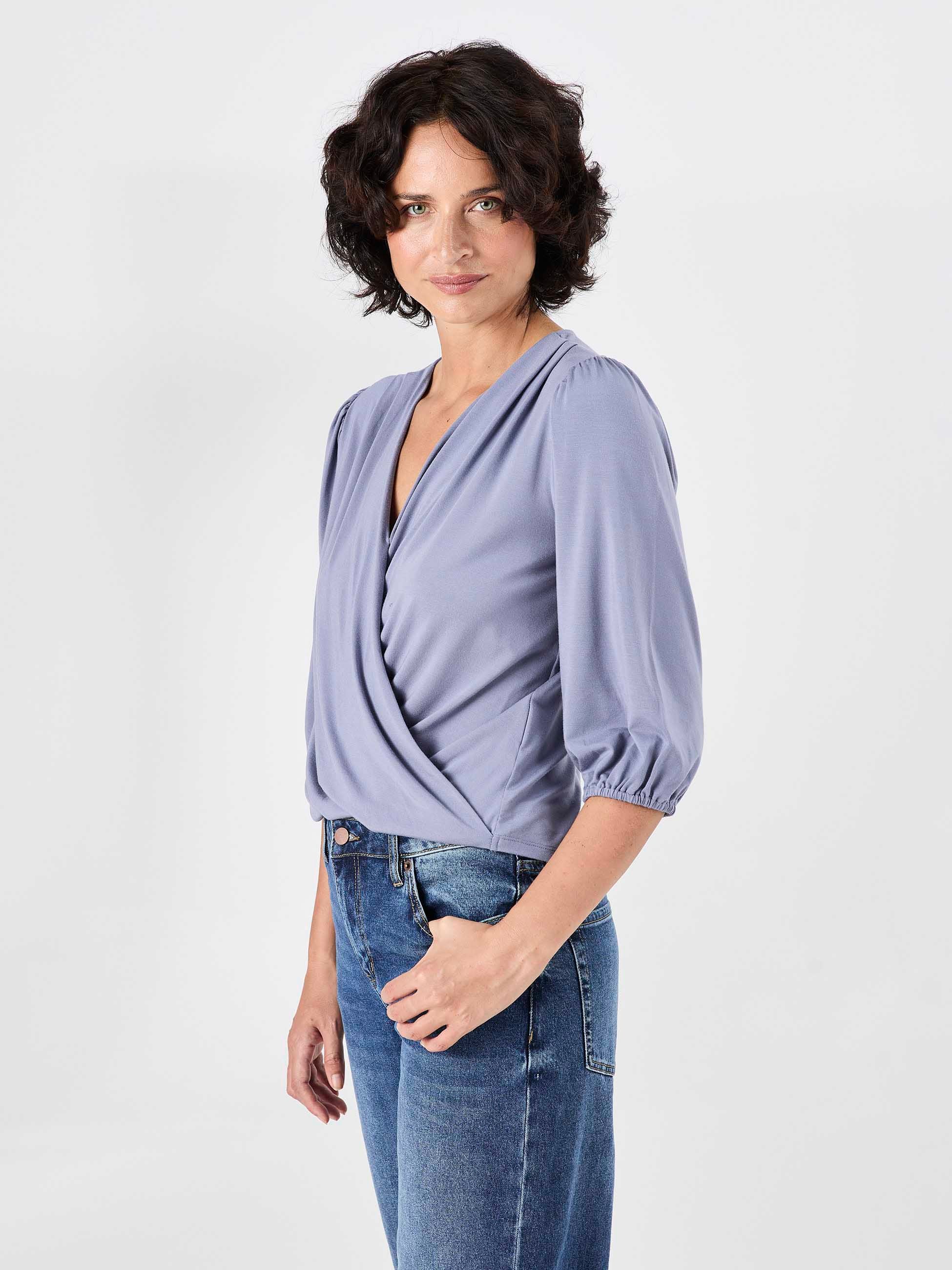 Athena 7/8 sleeve Drape Top - Quartz Blue