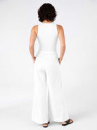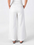 Designed with a flattering flat front and a discreet side zip, the silhouette remains clean and refined. An elasticated back waistband provides added comfort and flexibility without compromising on style. The wide-leg cut creates a long, elongating line that moves effortlessly with you.