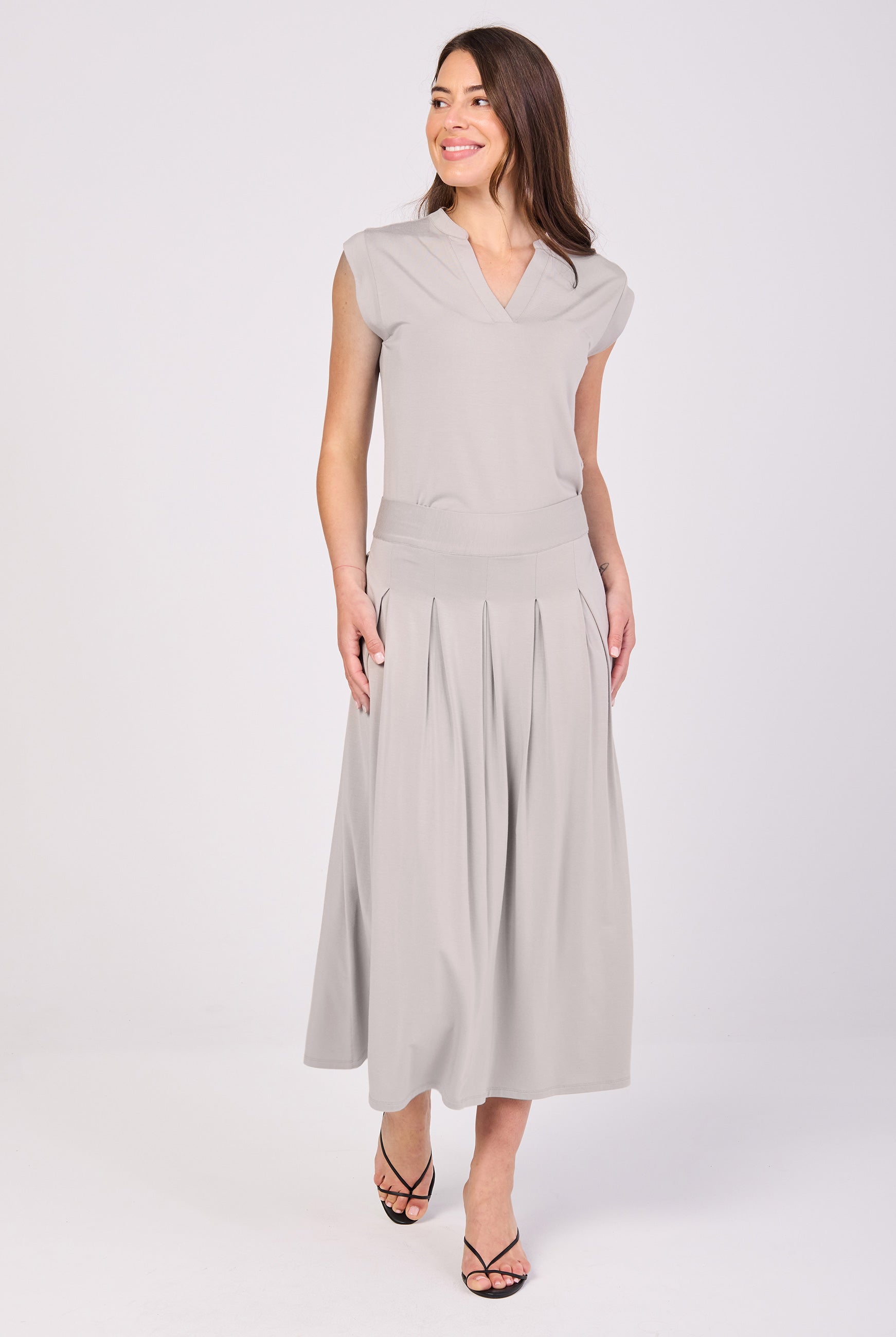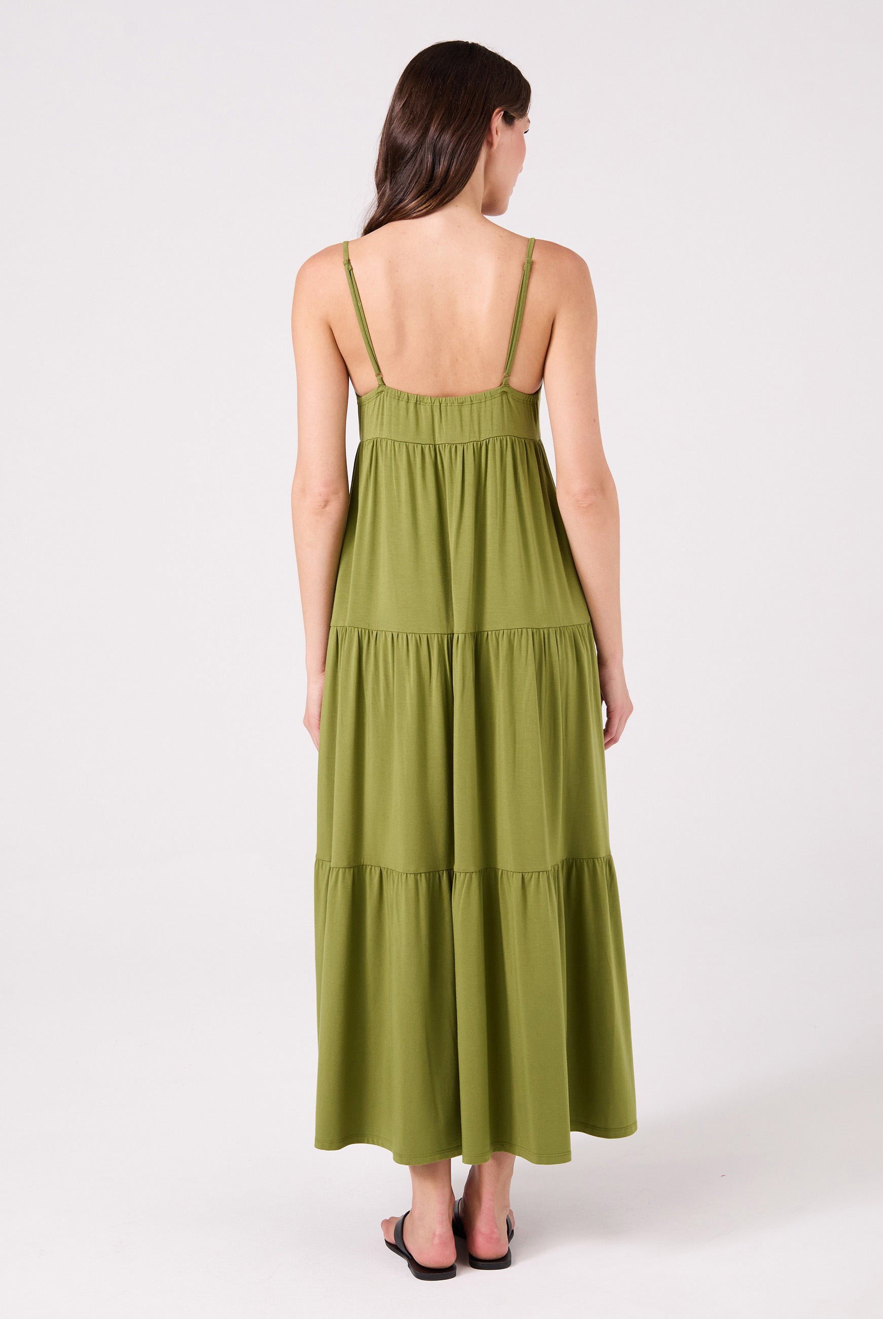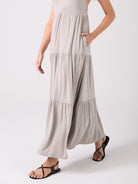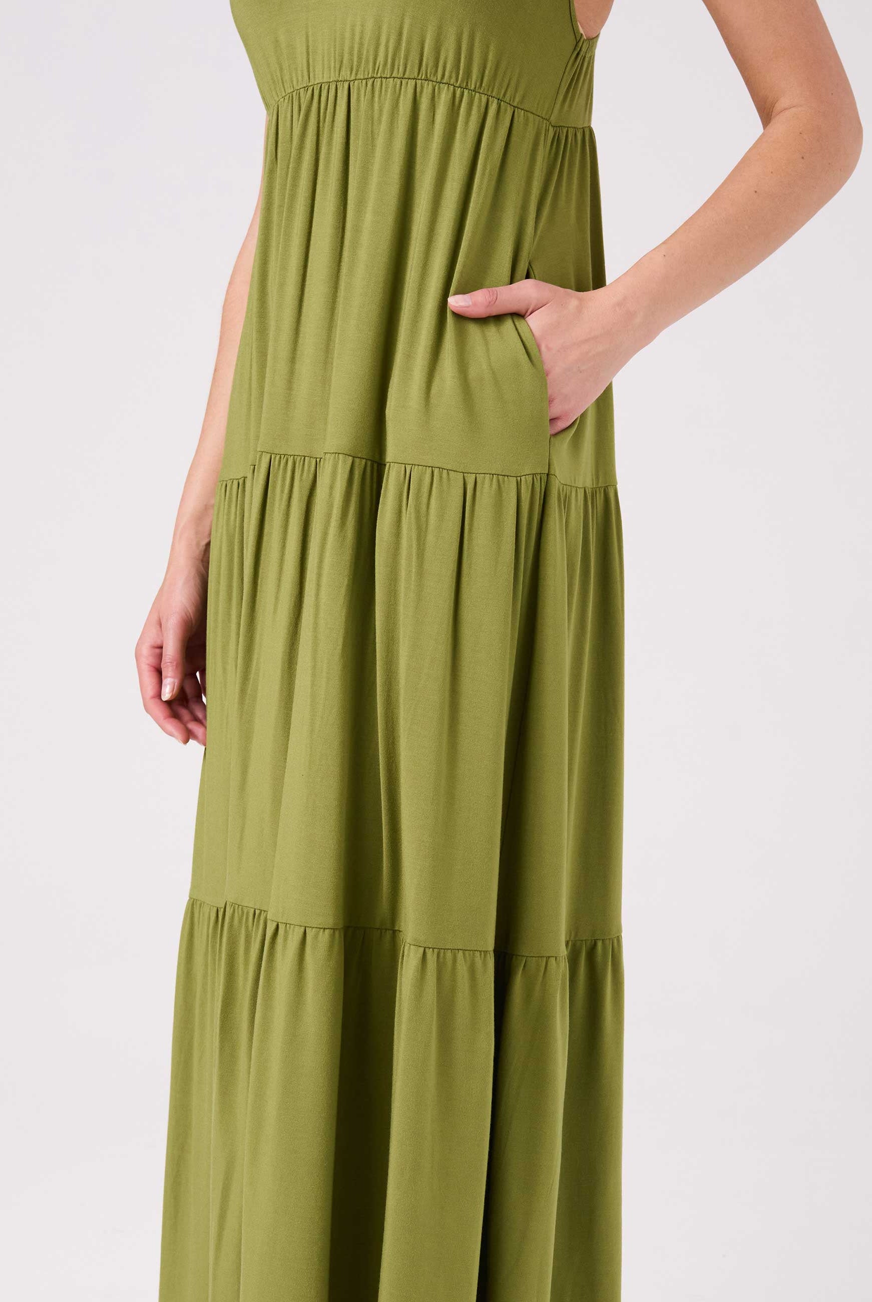 Elevate your everyday style with our V neck maxi dress. Perfectly balancing elegance and casual comfort, this clean and flowy tiered maxi offers effortless movement, a flattering silhouette, and convenient side pockets. Crafted from soft, sustainable Lenzing Modal, it's ideal for any activity. Pair it with sandals for a chic look or sneakers for a laid-back vibe. This versatile dress is your go-to for any occasion.