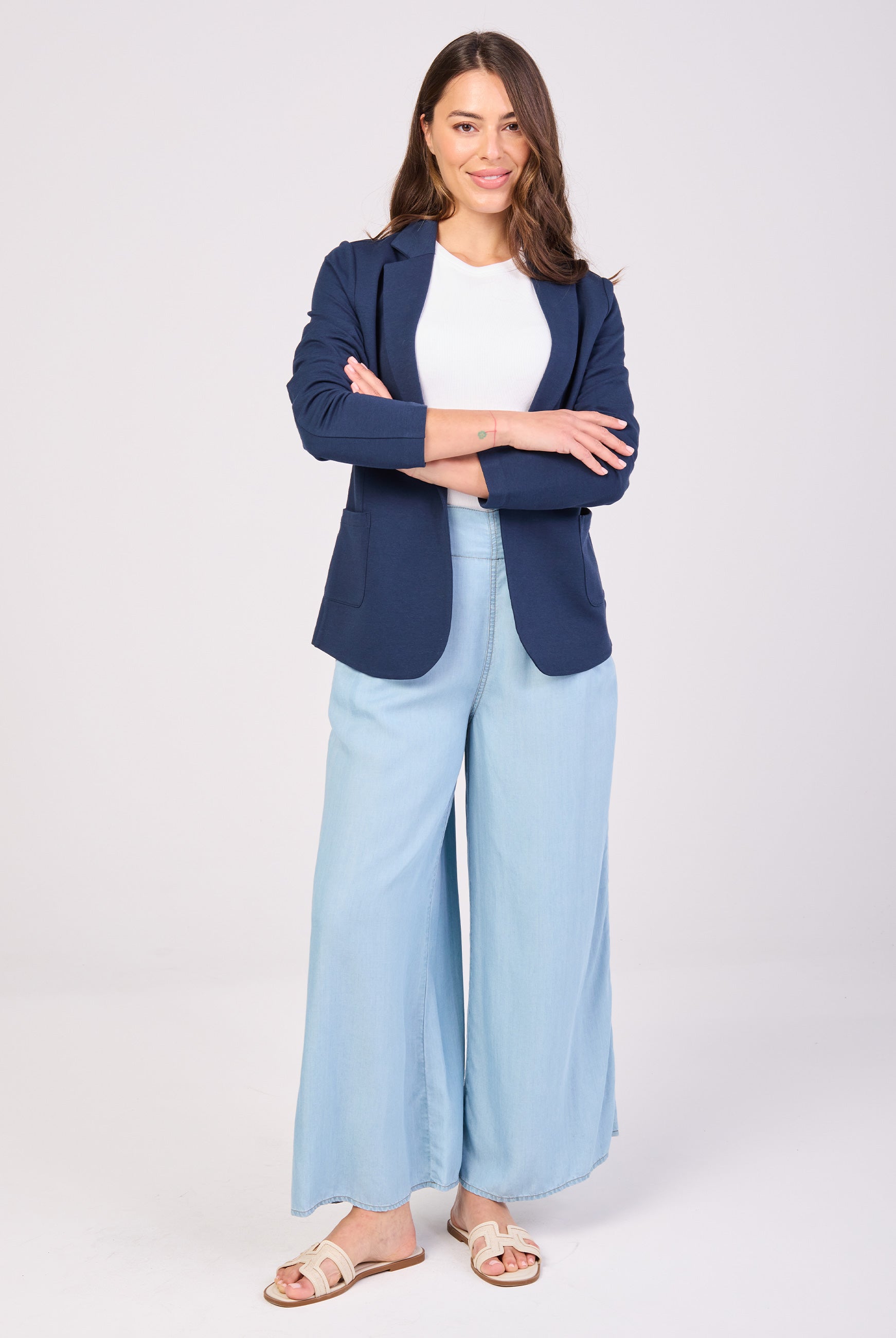 Yes—several reviewers say it “goes with anything” and mention pairing it with specific tops, including a matching navy loose-fit tank and pale grey or pale green tops. One customer also noted it works well with their drape tops, highlighting styling flexibility. It appears to be an easy mix-and-match piece for casual or more styled outfits.